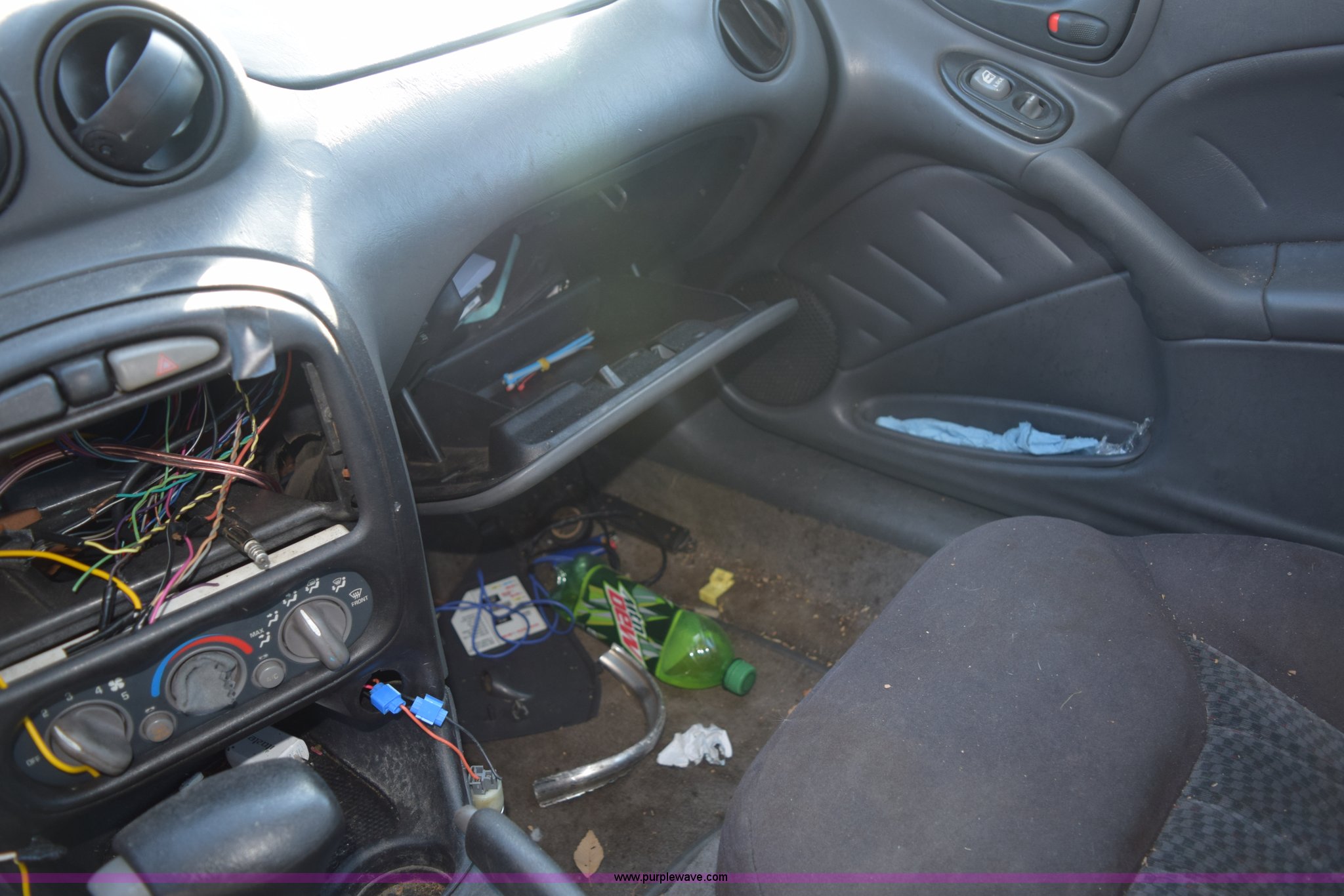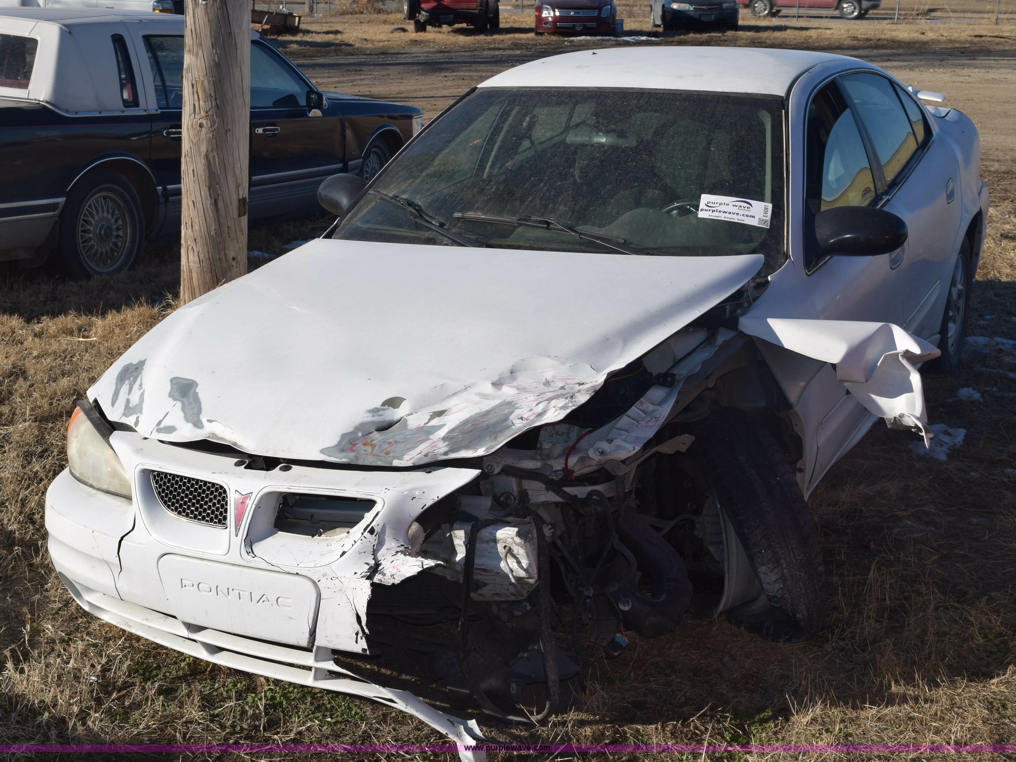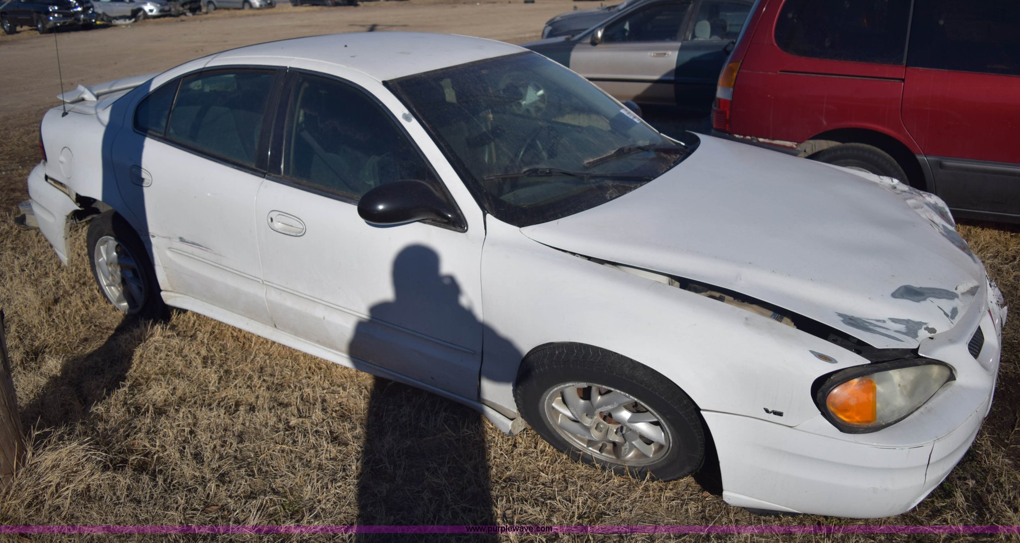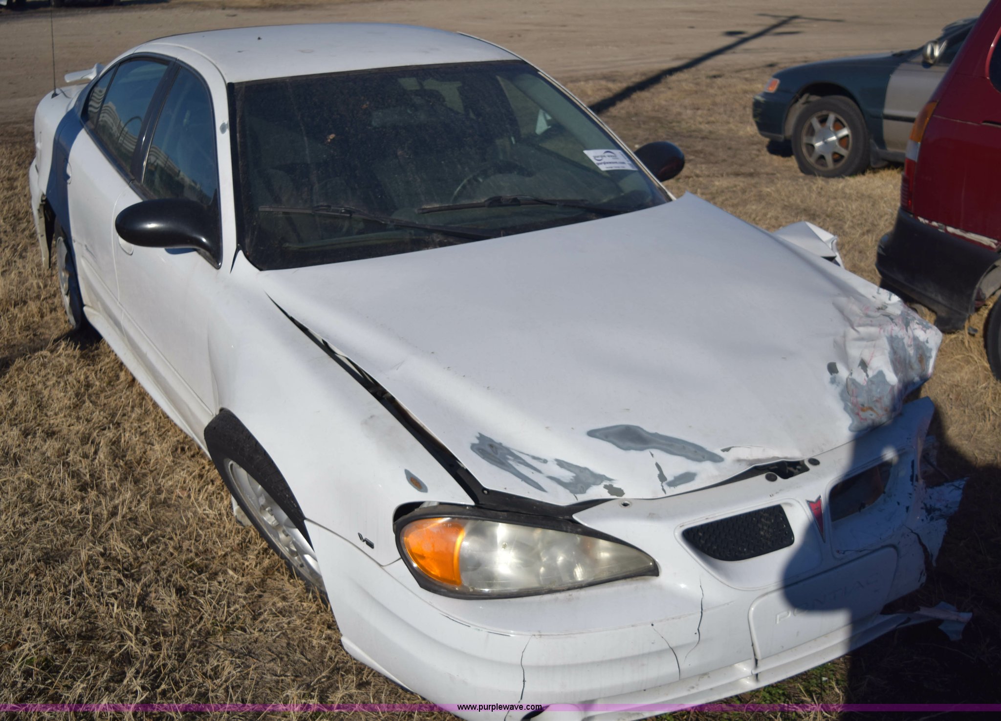 Purple Wave is selling a used Passenger Vehicle in Kansas. This item is a 2004 Pontiac Grand AM SE with the following: Unknown miles on odometer, 3.4L V6 OHV 12V gas engine, Automatic transmission, AC and heat, Tilt, Cruise, Power windows, locks, and mirrors, Cloth interior, 205/65R15 tires, Interior/exterior cosmetic damage, Major front end damage, Dents, Scratches, Stereo removed, Case# 14C75945