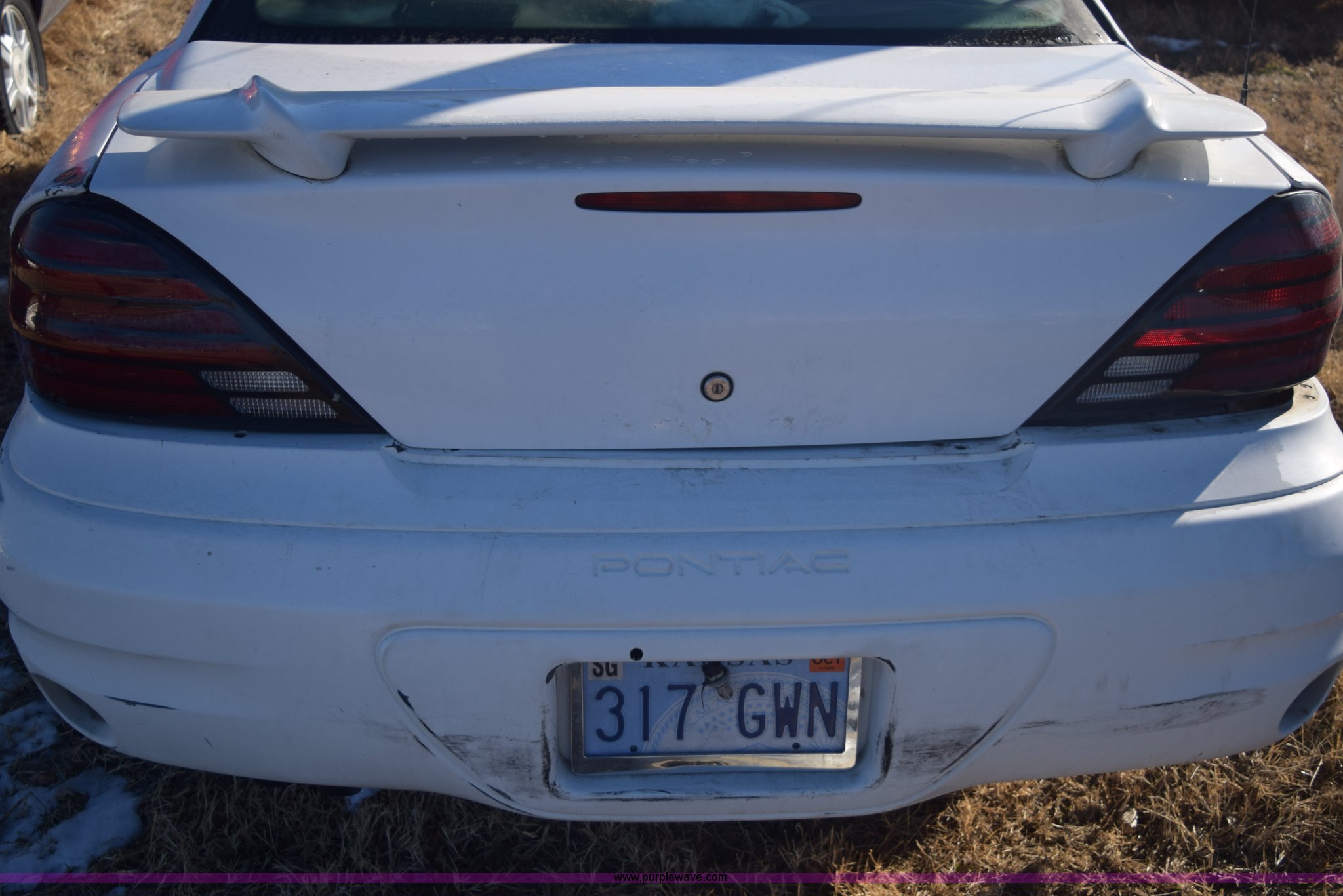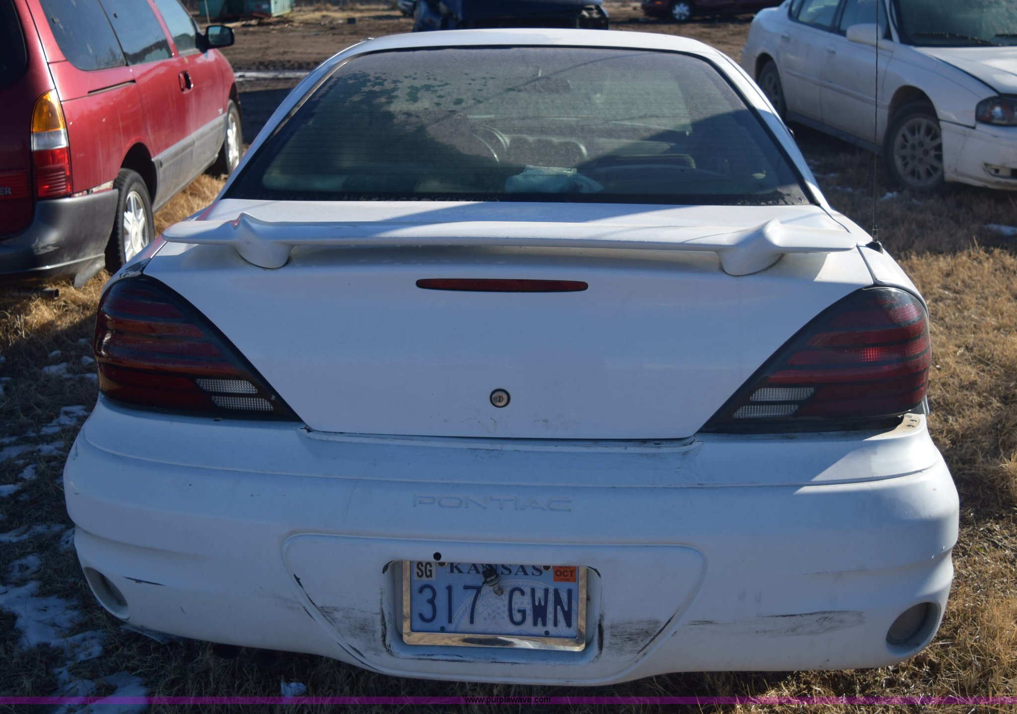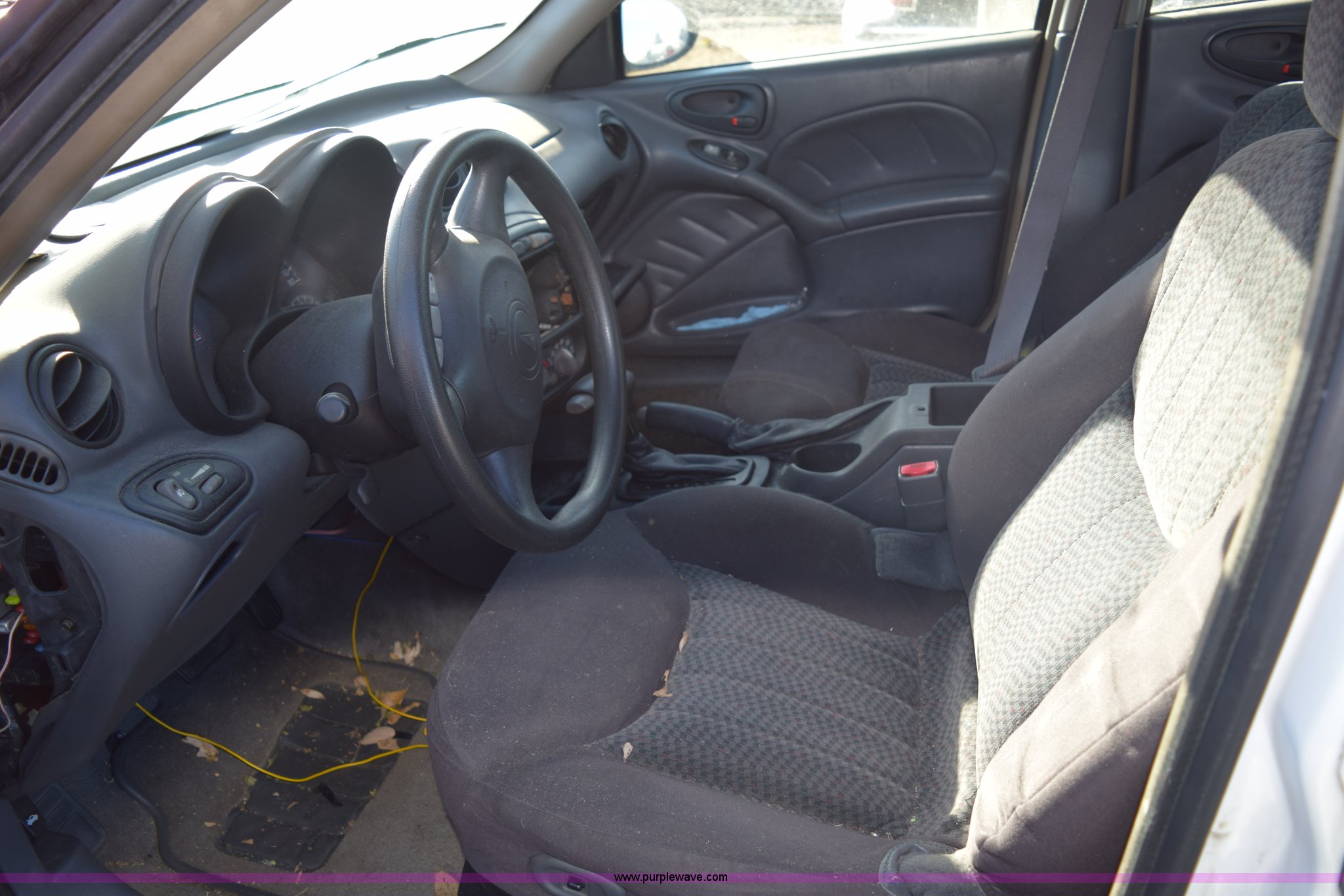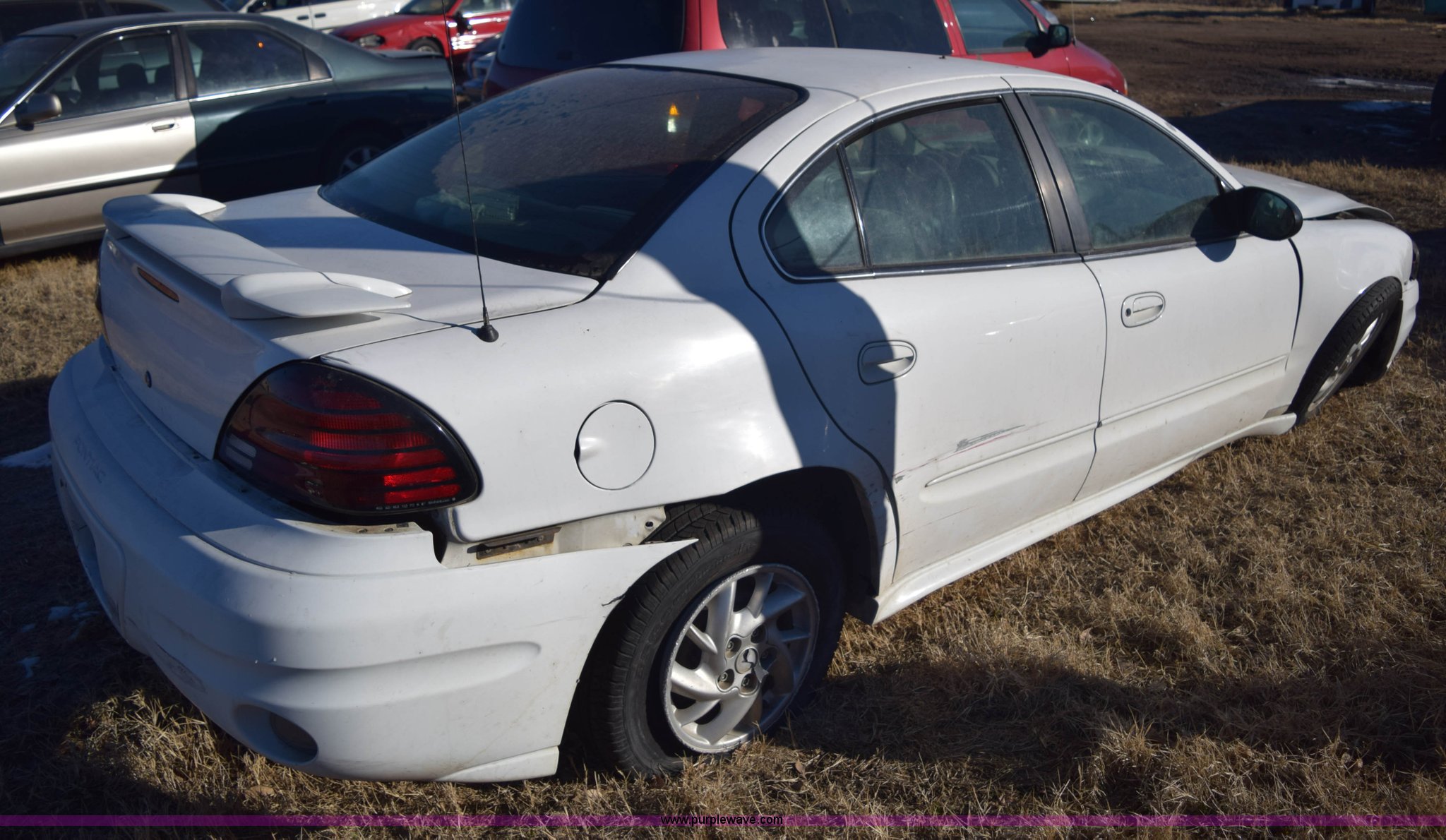 Purple Wave is selling a used Passenger Vehicle in Kansas. This item is a 2004 Pontiac Grand AM SE with the following: Unknown miles on odometer, 3.4L V6 OHV 12V gas engine, Automatic transmission, AC and heat, Tilt, Cruise, Power windows, locks, and mirrors, Cloth interior, 205/65R15 tires, Interior/exterior cosmetic damage, Major front end damage, Dents, Scratches, Stereo removed, Case# 14C75945