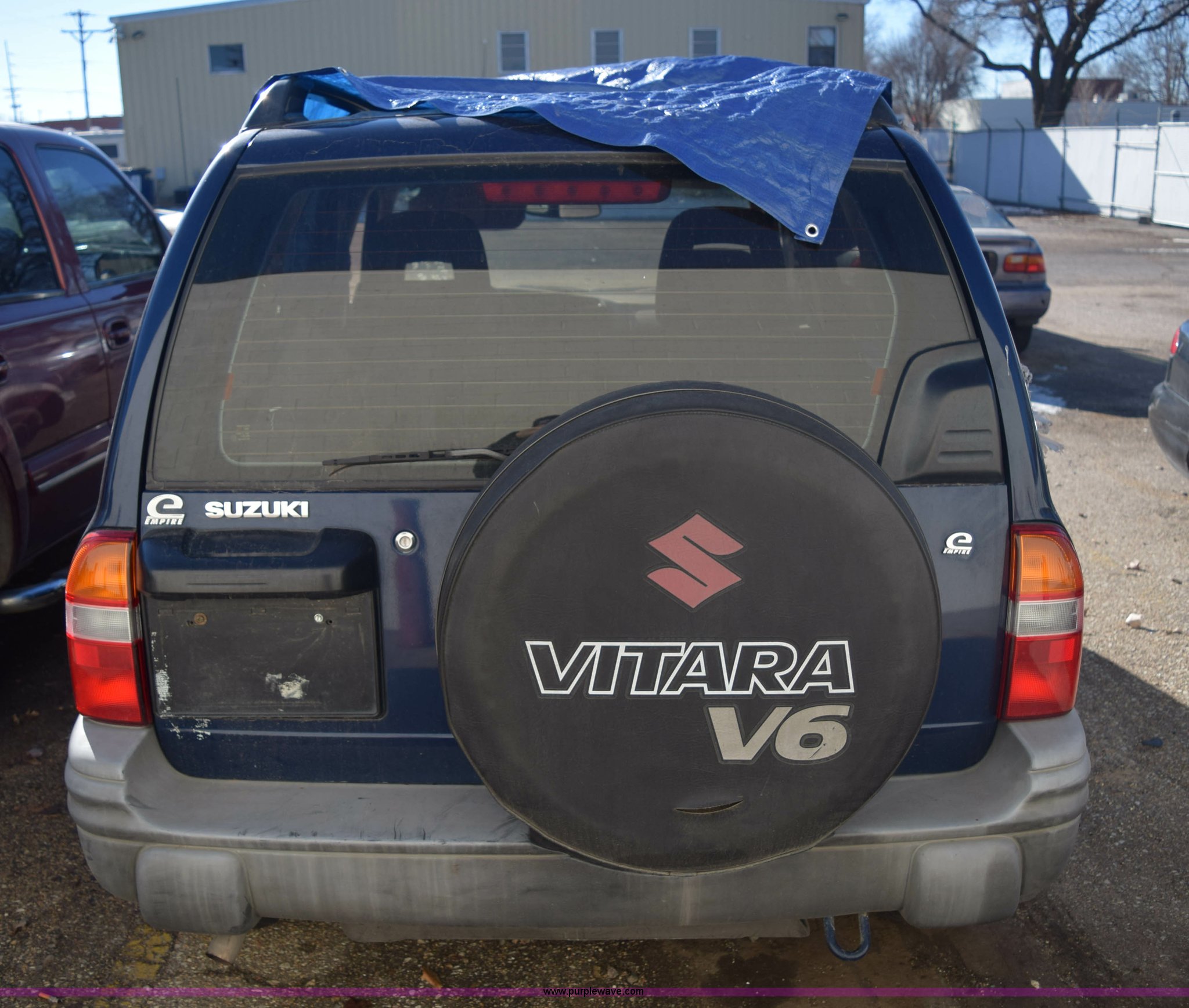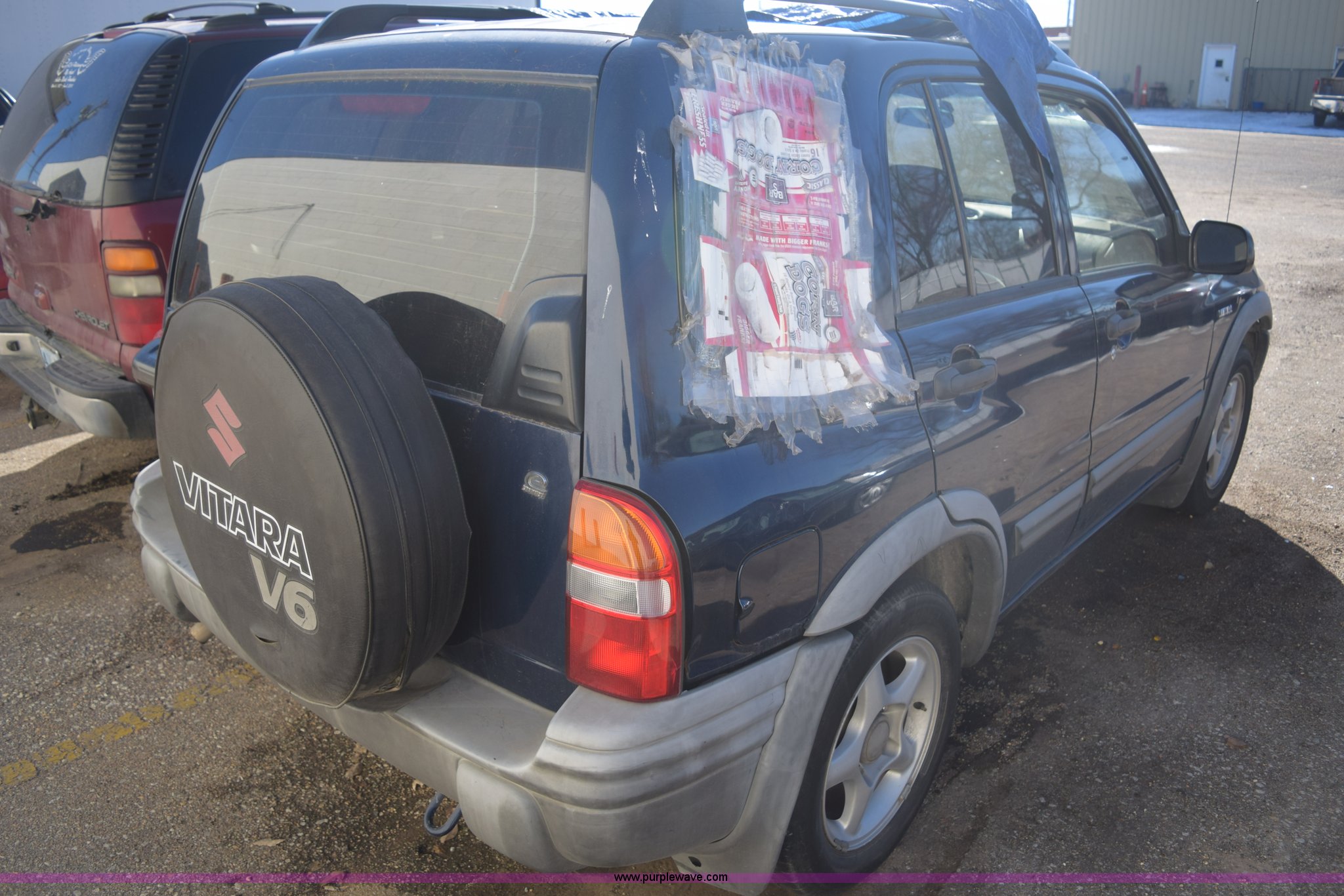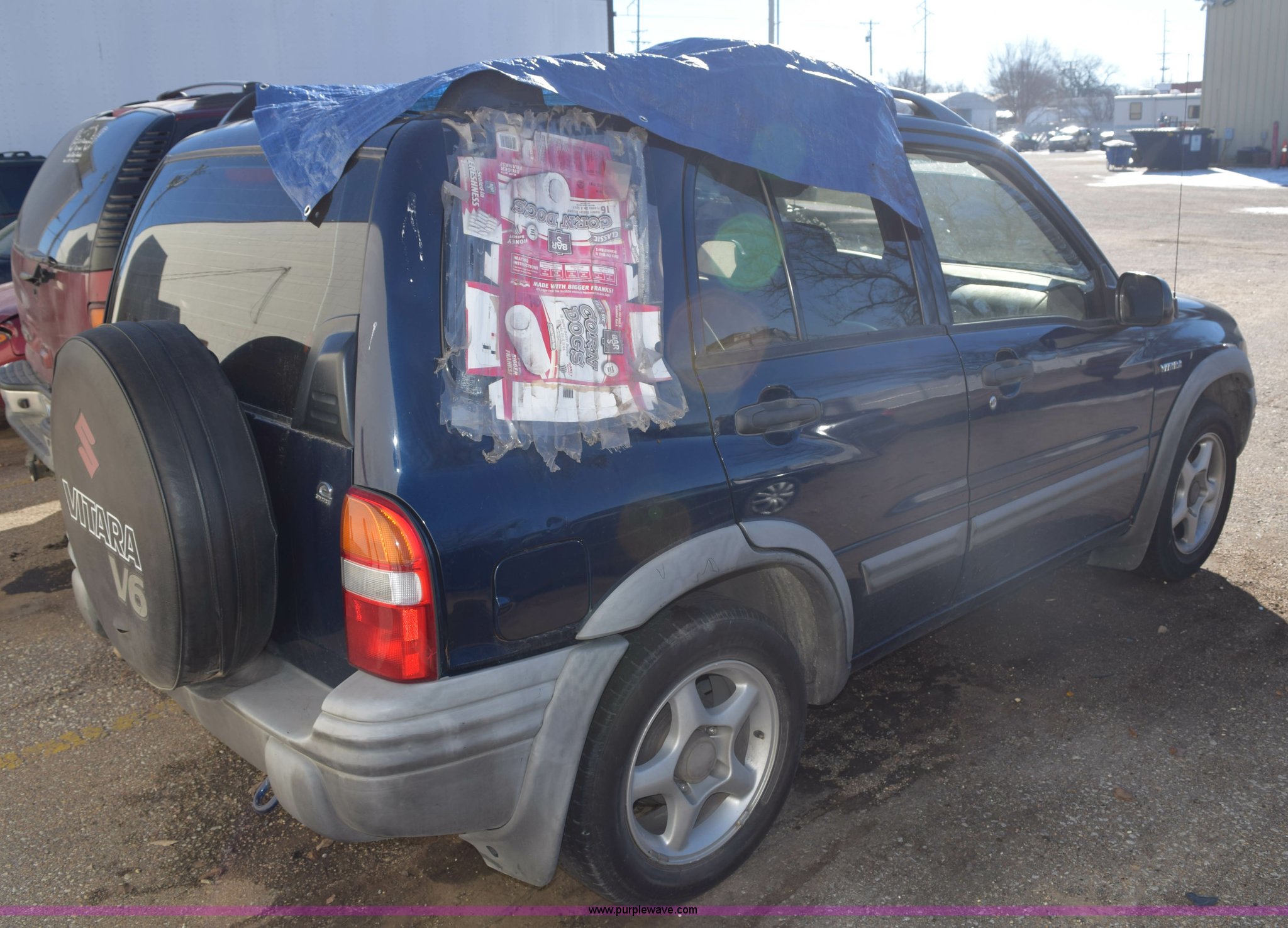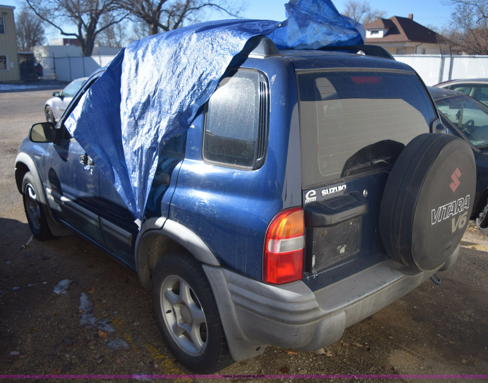 Purple Wave is selling a used Passenger Vehicle in Kansas. This item is a 2004 Suzuki Vitara LX with the following: Unknown miles on odometer, 2.5L V6 DOHC 24V gas engine, Automatic transmission, AC and heat, Tilt, Cruise, AM/FM/CD, Power windows, locks, and mirrors, Cloth interior, Keys, 215/65R16 tires, Interior/exterior cosmetic damage, Interior door handle missing, Scratches, Dents, Broken rear window, Contents included, Case# 14C74557