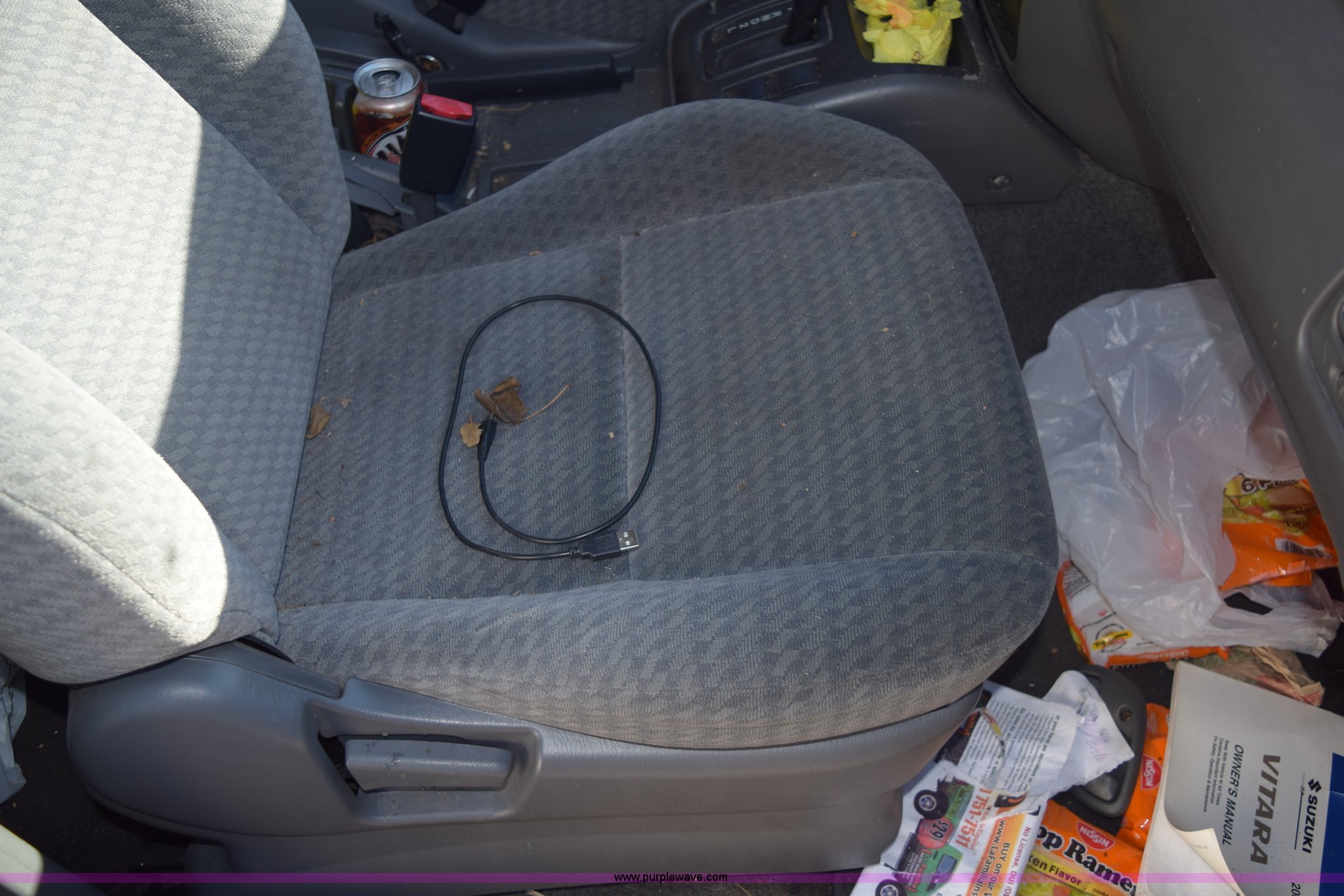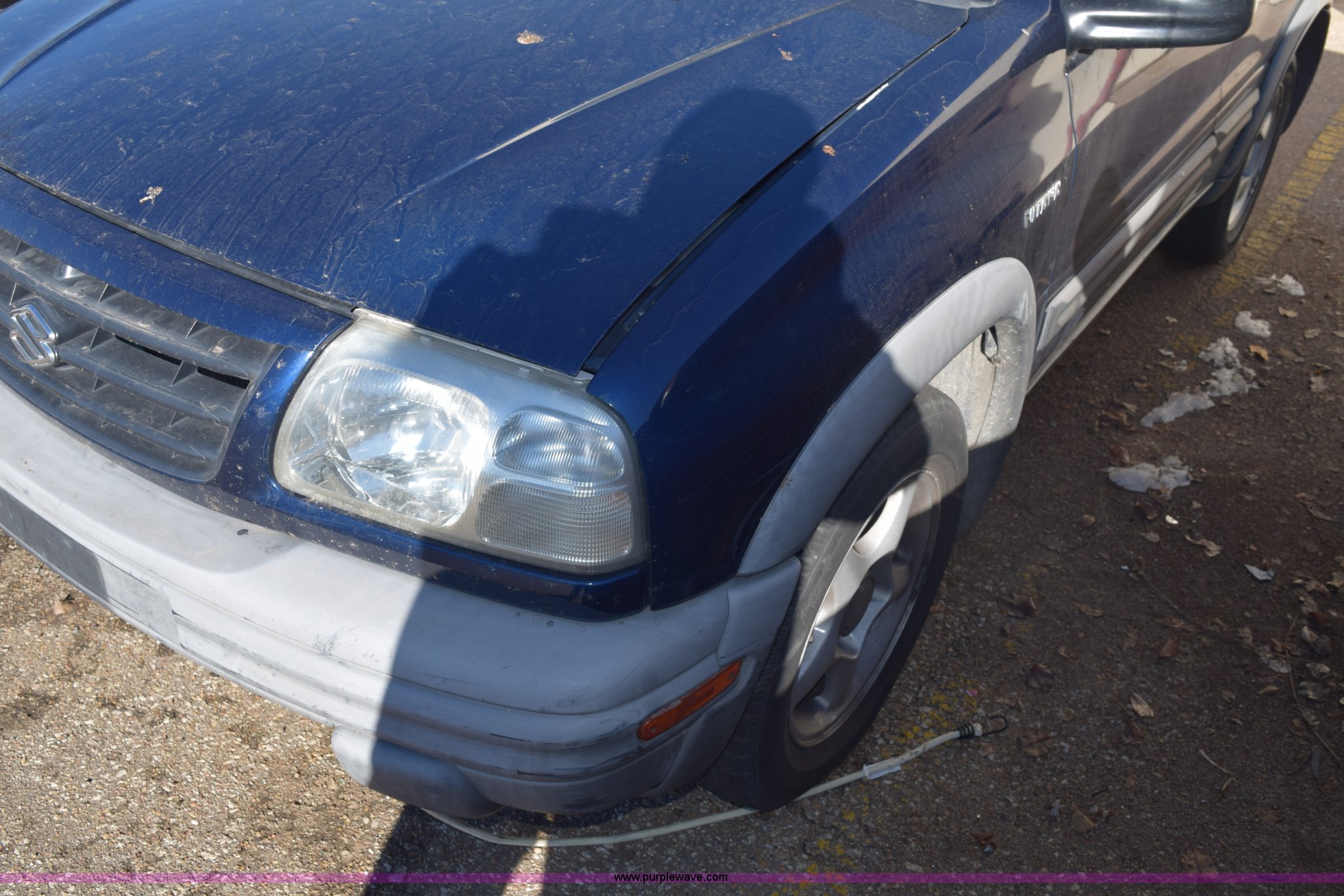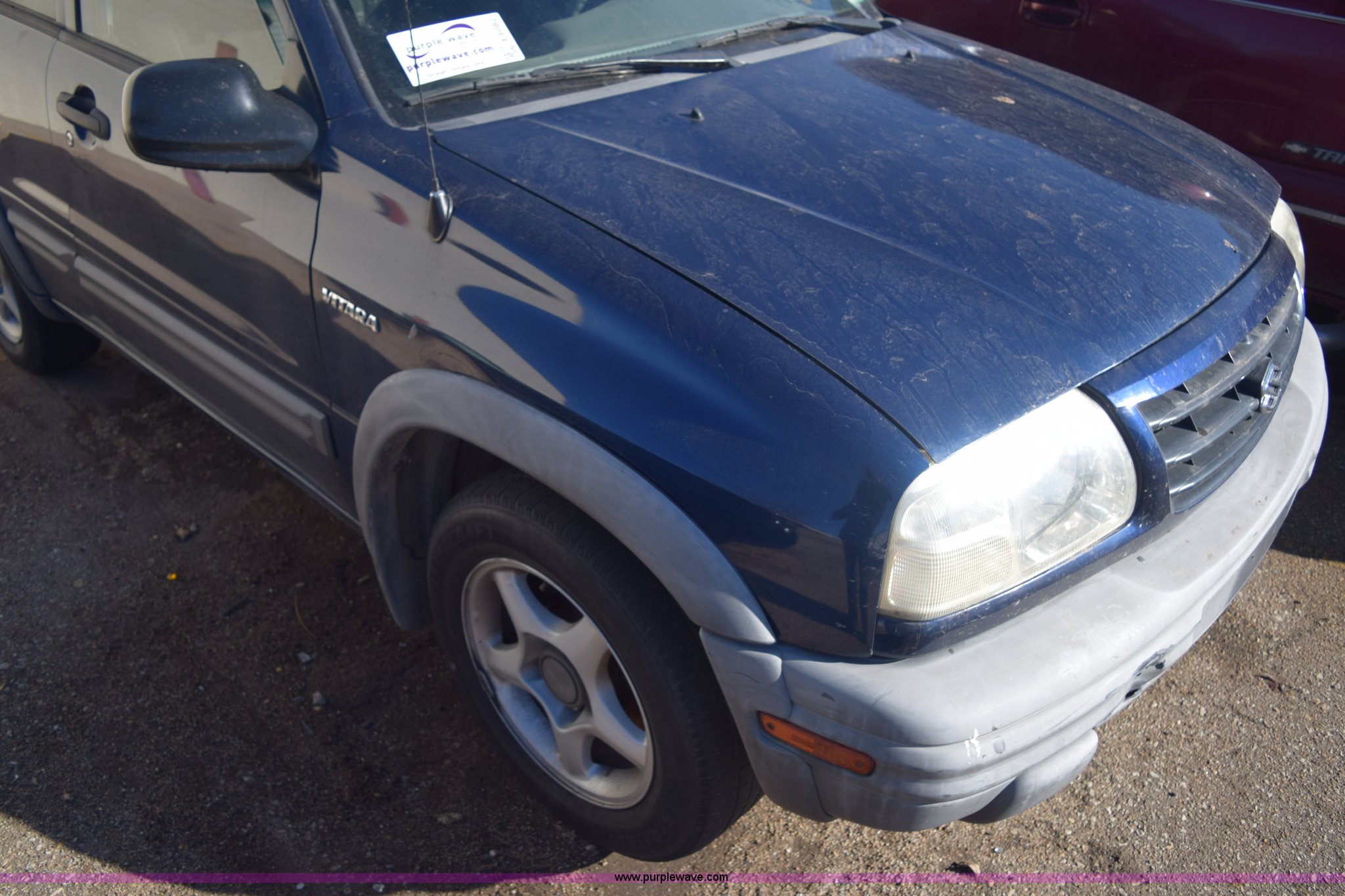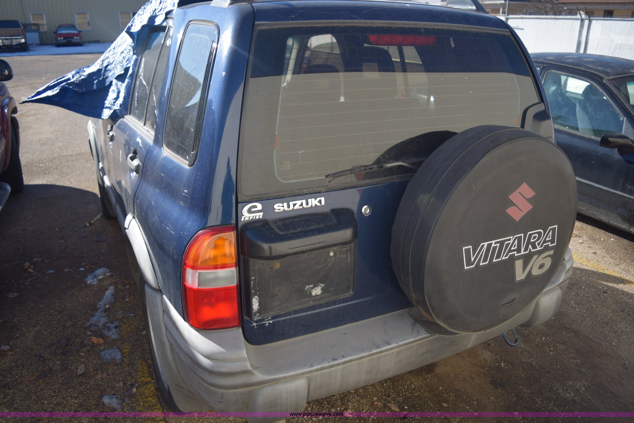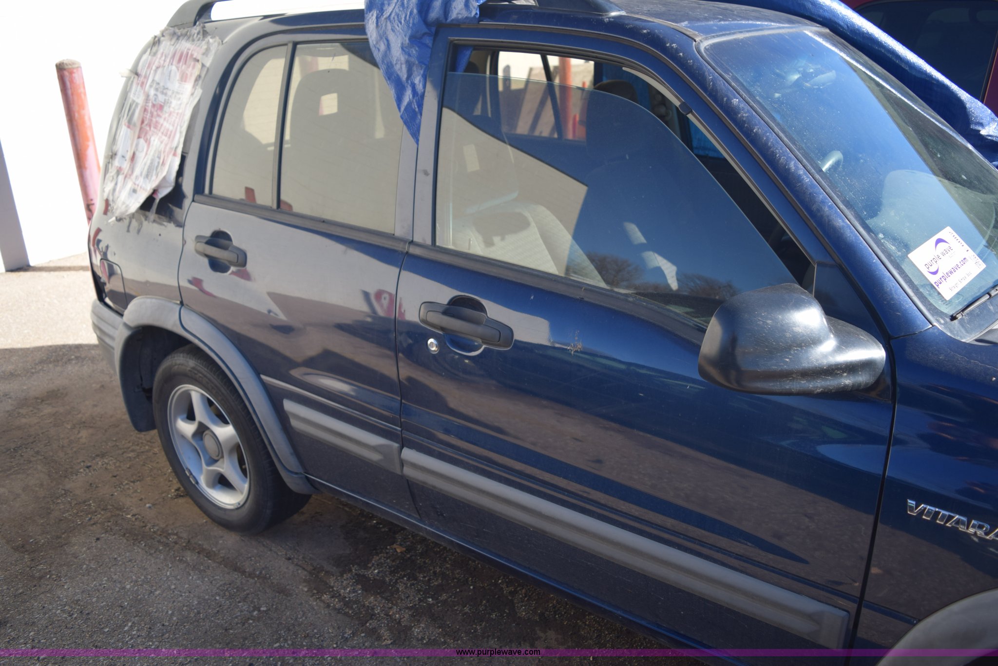 Purple Wave is selling a used Passenger Vehicle in Kansas. This item is a 2004 Suzuki Vitara LX with the following: Unknown miles on odometer, 2.5L V6 DOHC 24V gas engine, Automatic transmission, AC and heat, Tilt, Cruise, AM/FM/CD, Power windows, locks, and mirrors, Cloth interior, Keys, 215/65R16 tires, Interior/exterior cosmetic damage, Interior door handle missing, Scratches, Dents, Broken rear window, Contents included, Case# 14C74557