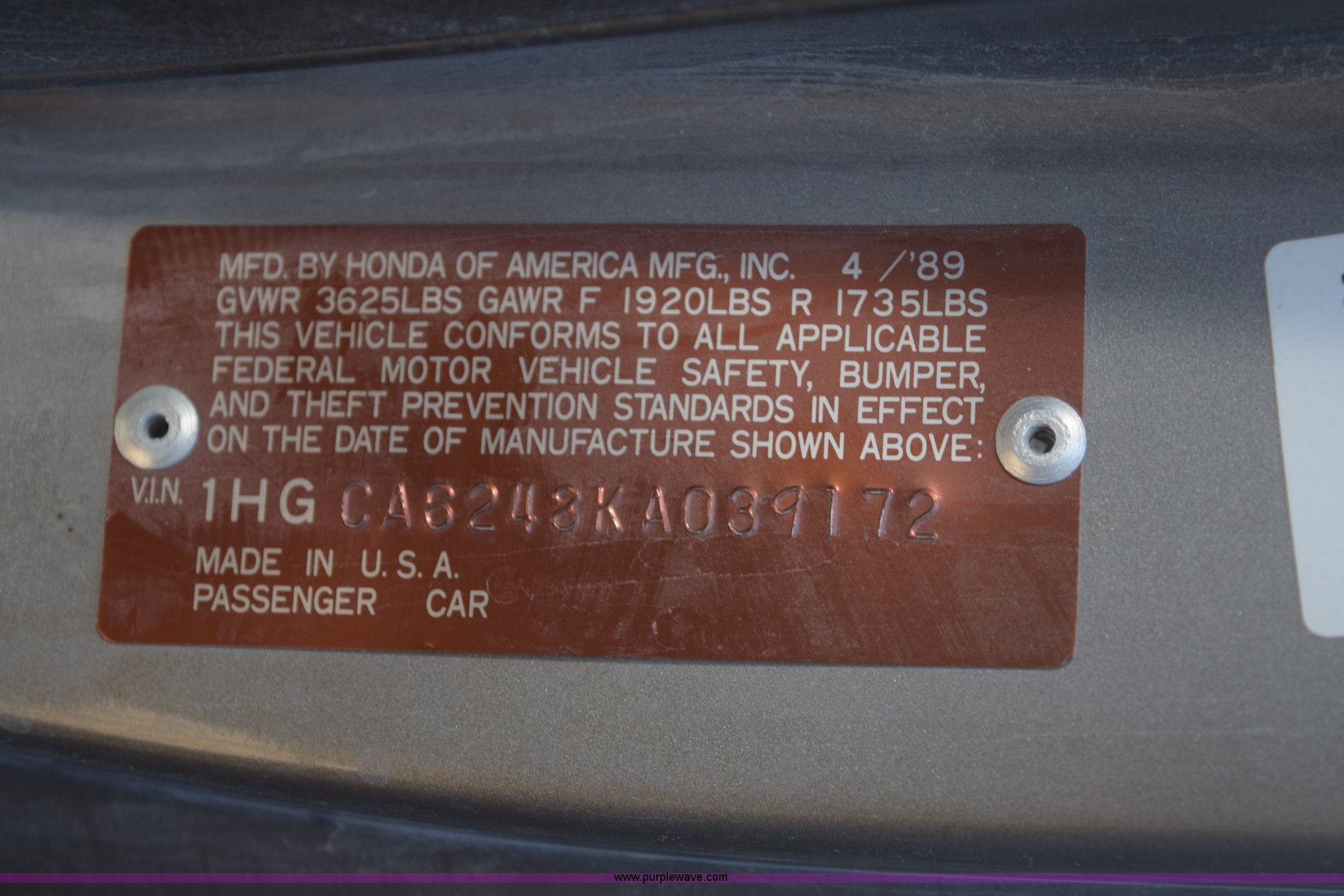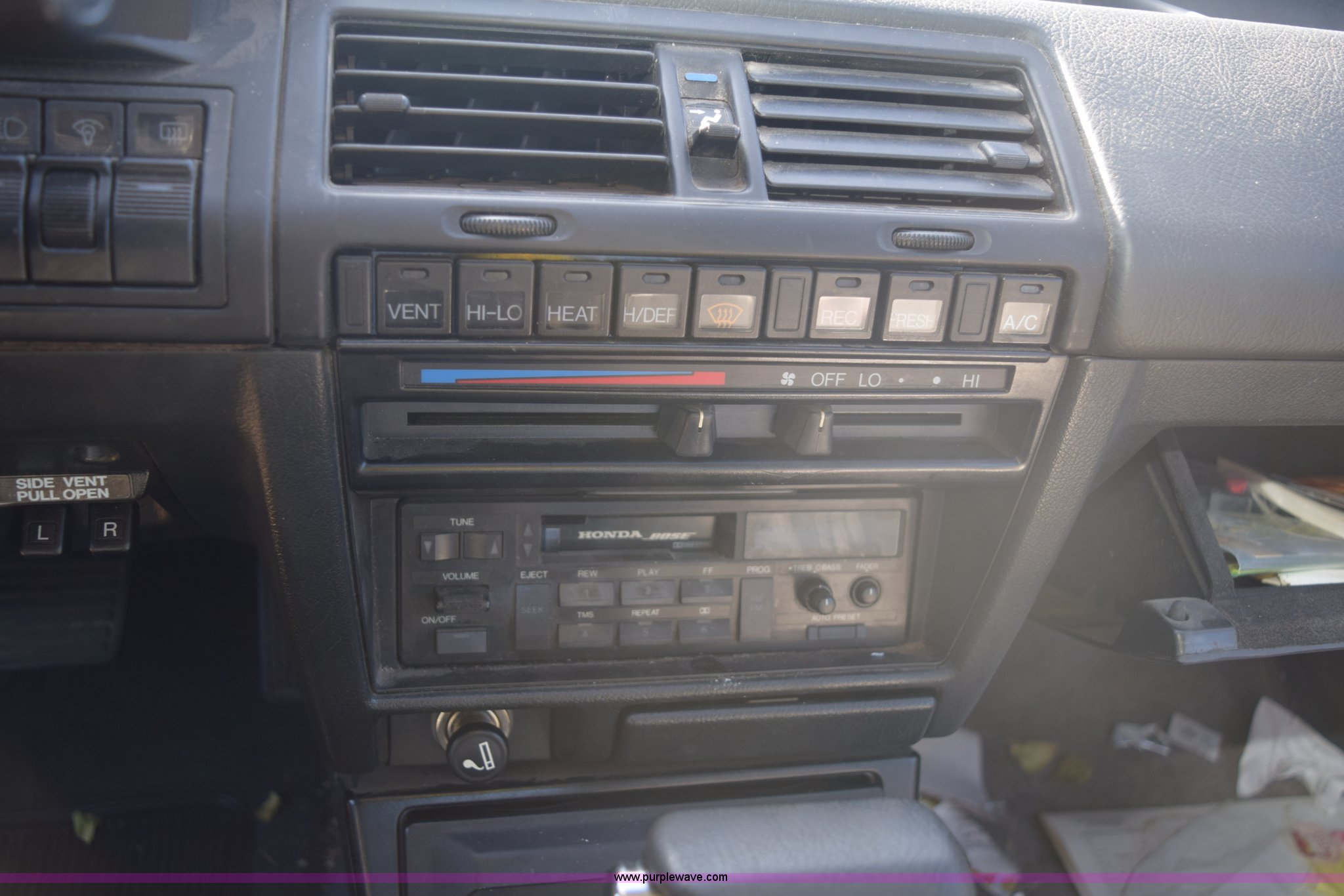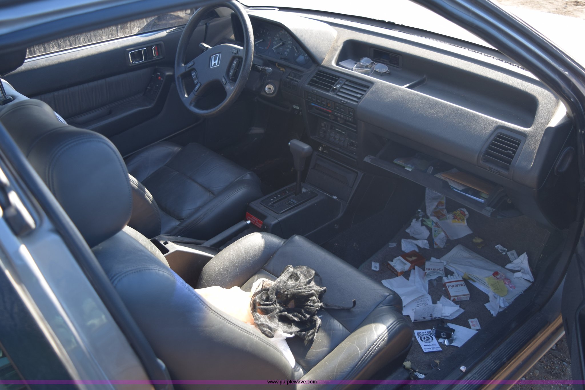 Purple Wave is selling a used Passenger Vehicle in Kansas. This item is a 1989 Honda Accord SEi with the following: 48,069 miles on odometer, Actual mileage unknown, 2.0L L4 SOHC 16V gas engine, Automatic transmission, AC and heat, Cruise, AM/FM/cassette, Power windows, locks, and mirrors, Leather interior, Keys, 195/60R14 tires, Interior/exterior cosmetic damage, Dents, Scratches, Contents included, Case# 14C075817