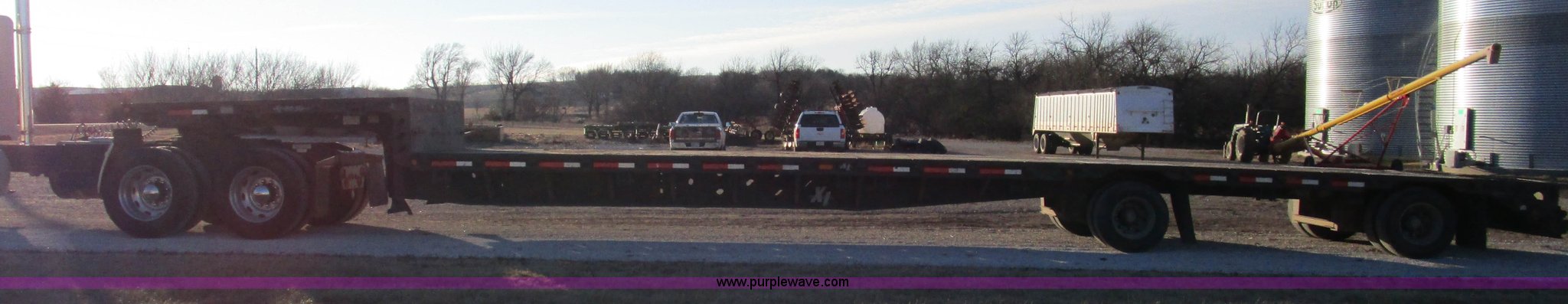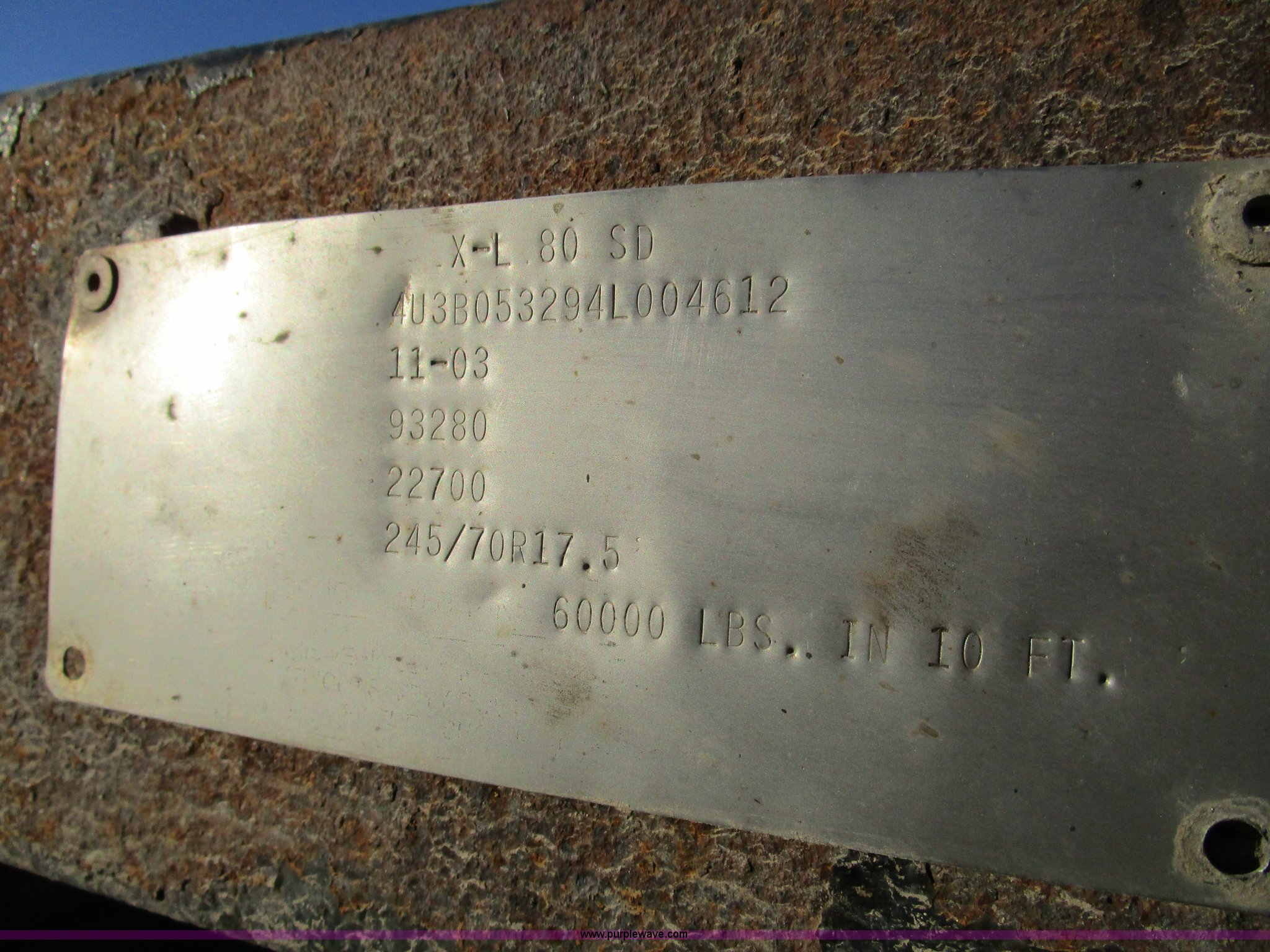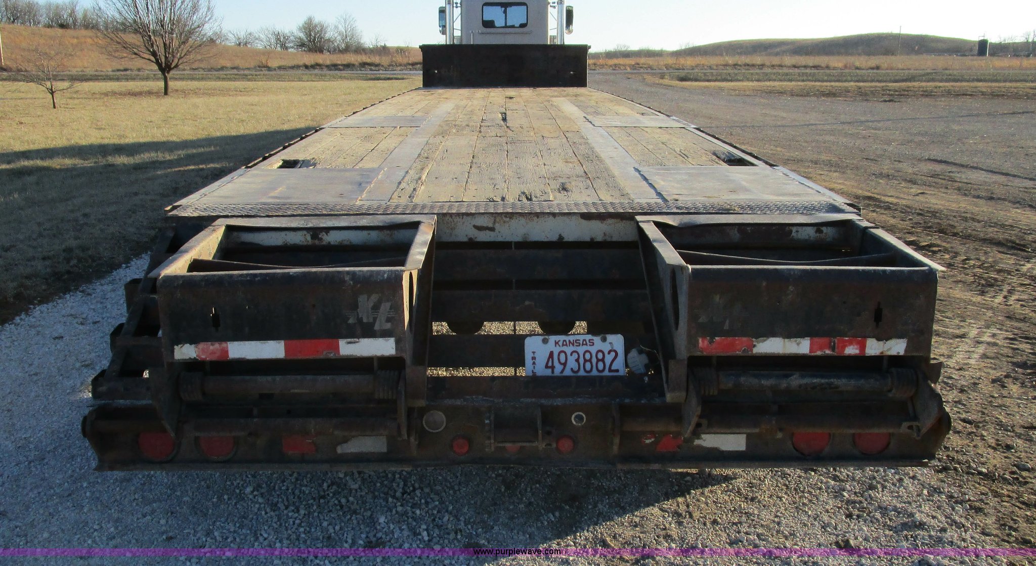 Purple Wave is selling a used Equip. Trailer in Kansas. This item is a 2004 XL Specialized 80SD spread axle semi trailer with the following: 53'L x 102"W, 11'L upper deck, 39'L main deck, 3'L dovetail, Wood floor, Rub rail, Twin loading ramps, (16) winches with rail, Air suspension, Air brakes, Inner and outer aluminum wheels, 245/70R17.5 tires