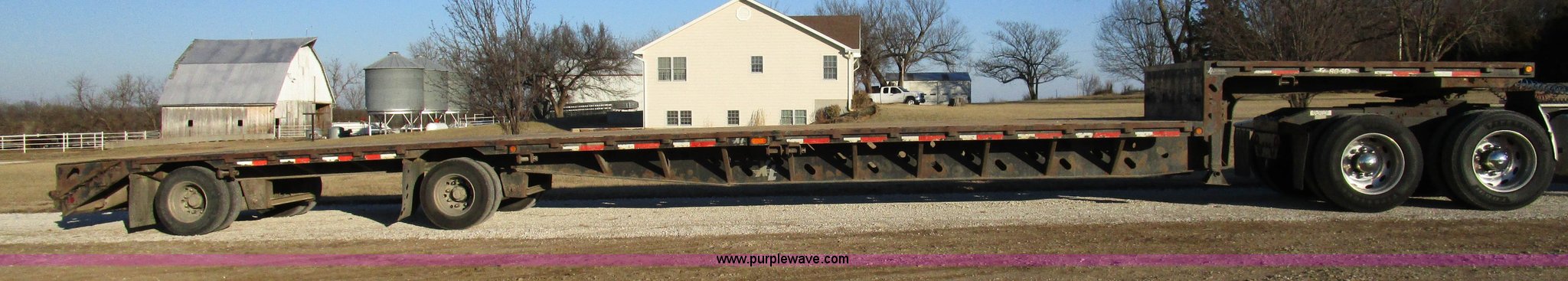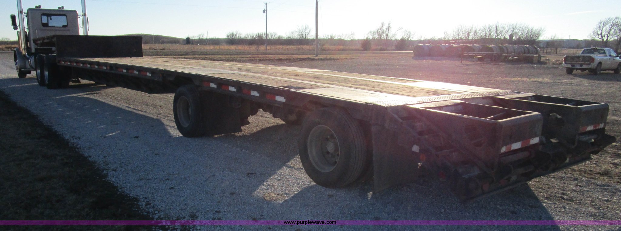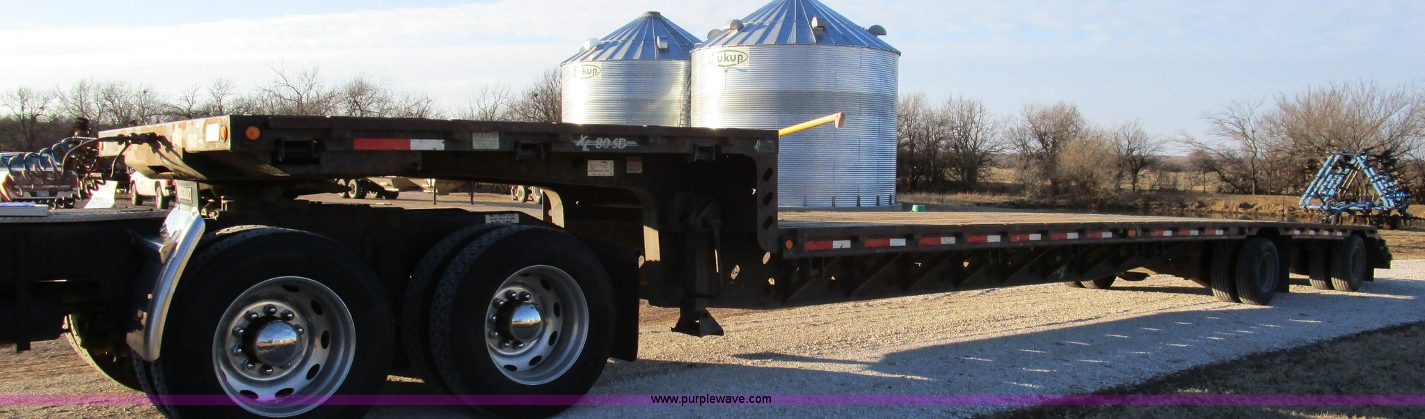 Purple Wave is selling a used Equip. Trailer in Kansas. This item is a 2004 XL Specialized 80SD spread axle semi trailer with the following: 53'L x 102"W, 11'L upper deck, 39'L main deck, 3'L dovetail, Wood floor, Rub rail, Twin loading ramps, (16) winches with rail, Air suspension, Air brakes, Inner and outer aluminum wheels, 245/70R17.5 tires