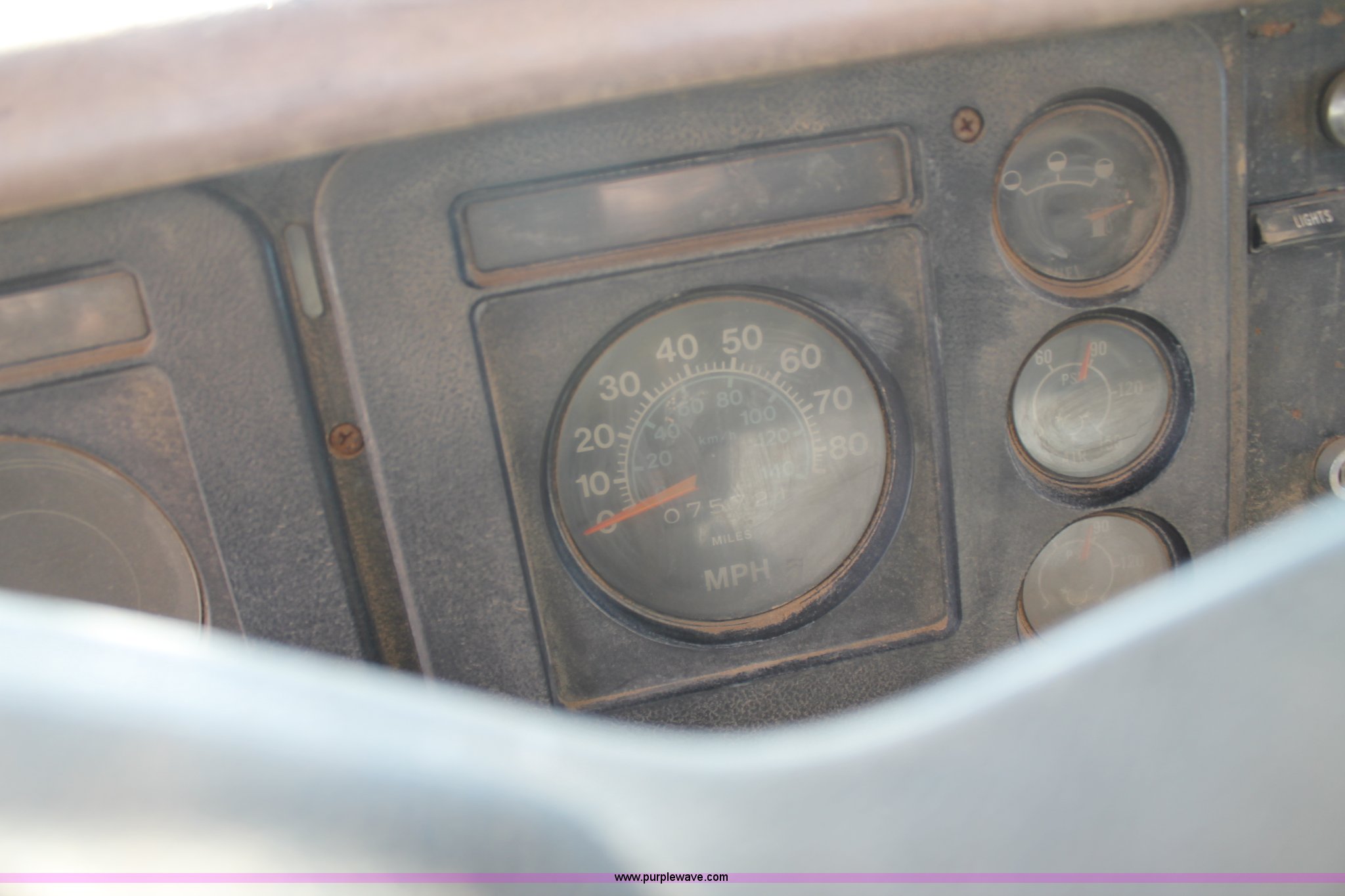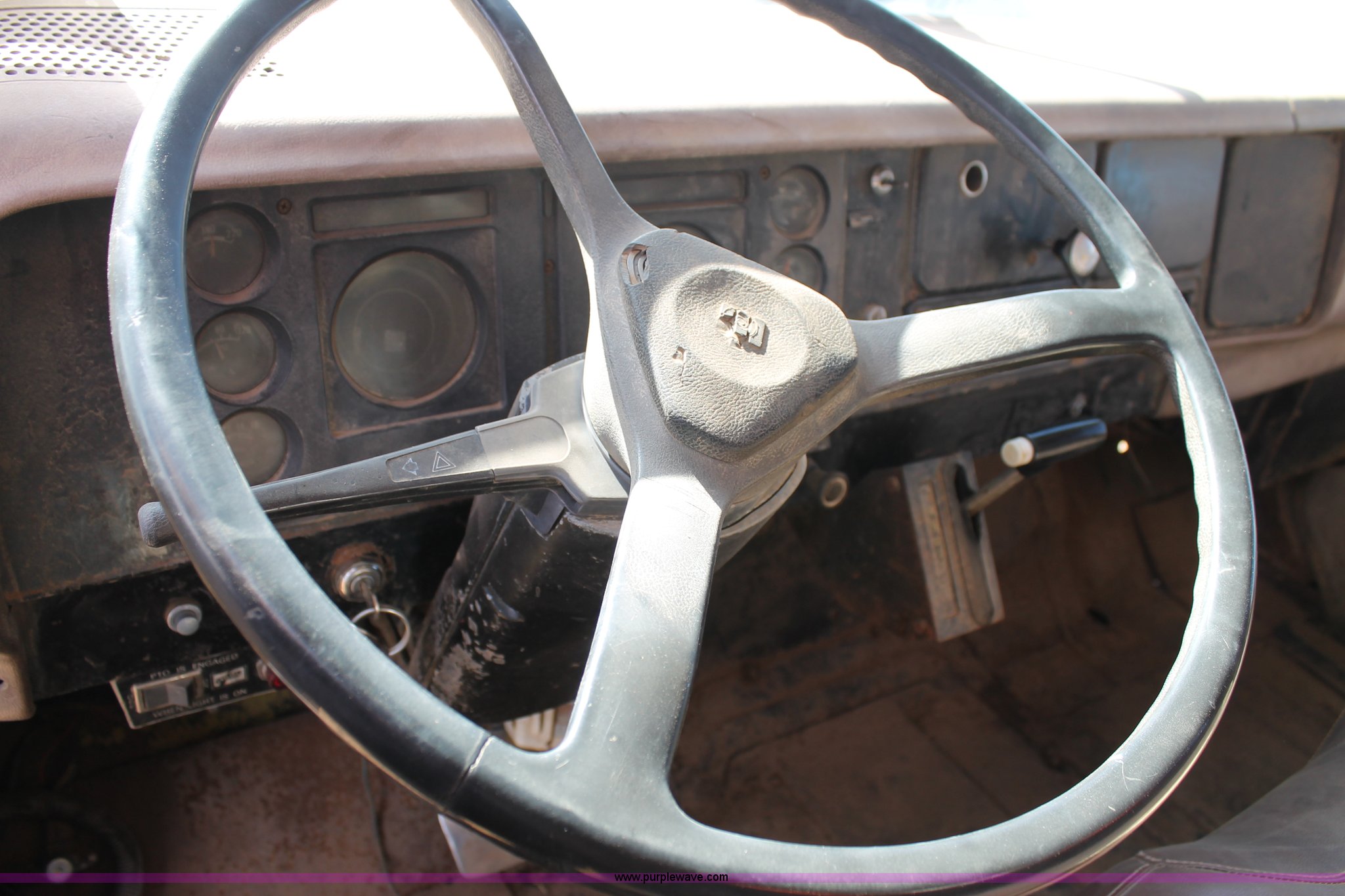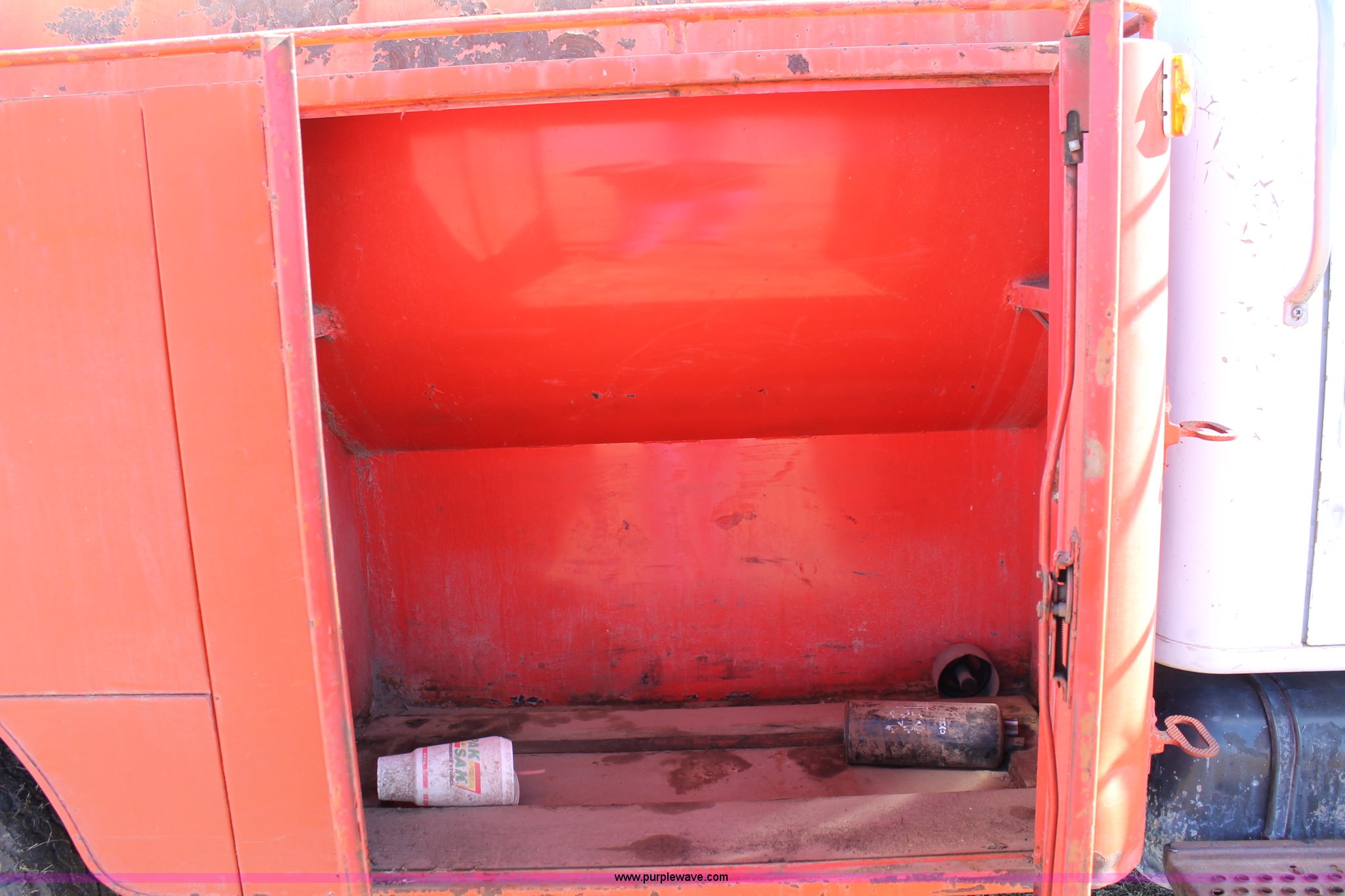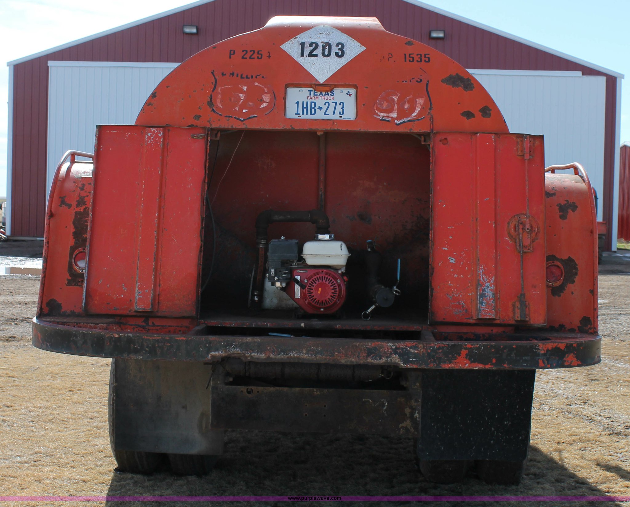 Purple Wave is selling a used Fuel Truck in Texas. This item is a 1979 International fuel truck with the following: 75,721 miles on odometer, International eight cylinder gas engine, Automatic transmission, (3) 1,535 gallon compartment fuel tank, 525 gallon compartment, (2) 505 gallon compartment, (2) side and one rear storage compartments, Honda transfer pump, Fueling hose, meter, and PTO pump, 9.00-20 tires