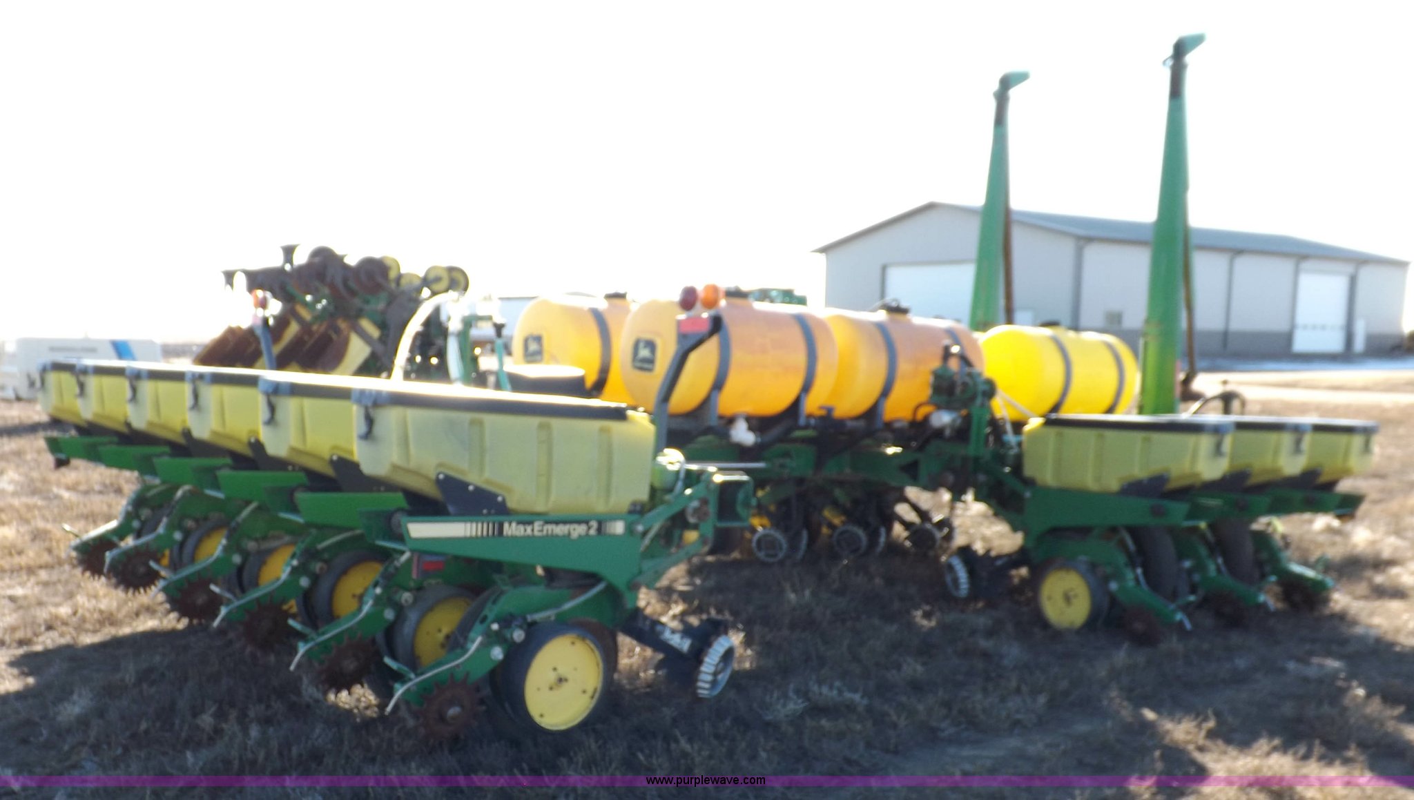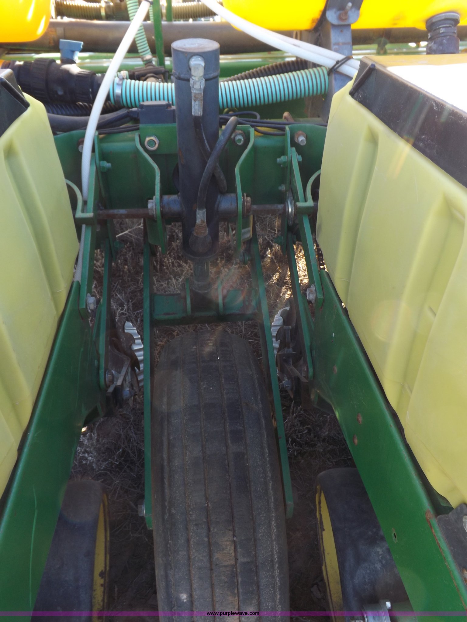Purple Wave is selling a used Planter in Kansas. This item is a John Deere 7200 Conservation planter with the following: 12 rows, 30" spacing, Mechanical delivery, Mechanical meters, Hydraulic meter drive system, Row markers, Computer Trak 250 monitor, Manual, Corn meters, Extra down pressure springs, Martin row cleaners, Martin spading closing system, Liquid fertilizer applicator, (6) 70 gallon tanks, (2) John Blue hydraulic driven, 7.60-15 transport tires, Missing closing wheel will be replaced, Serial H0720061660313