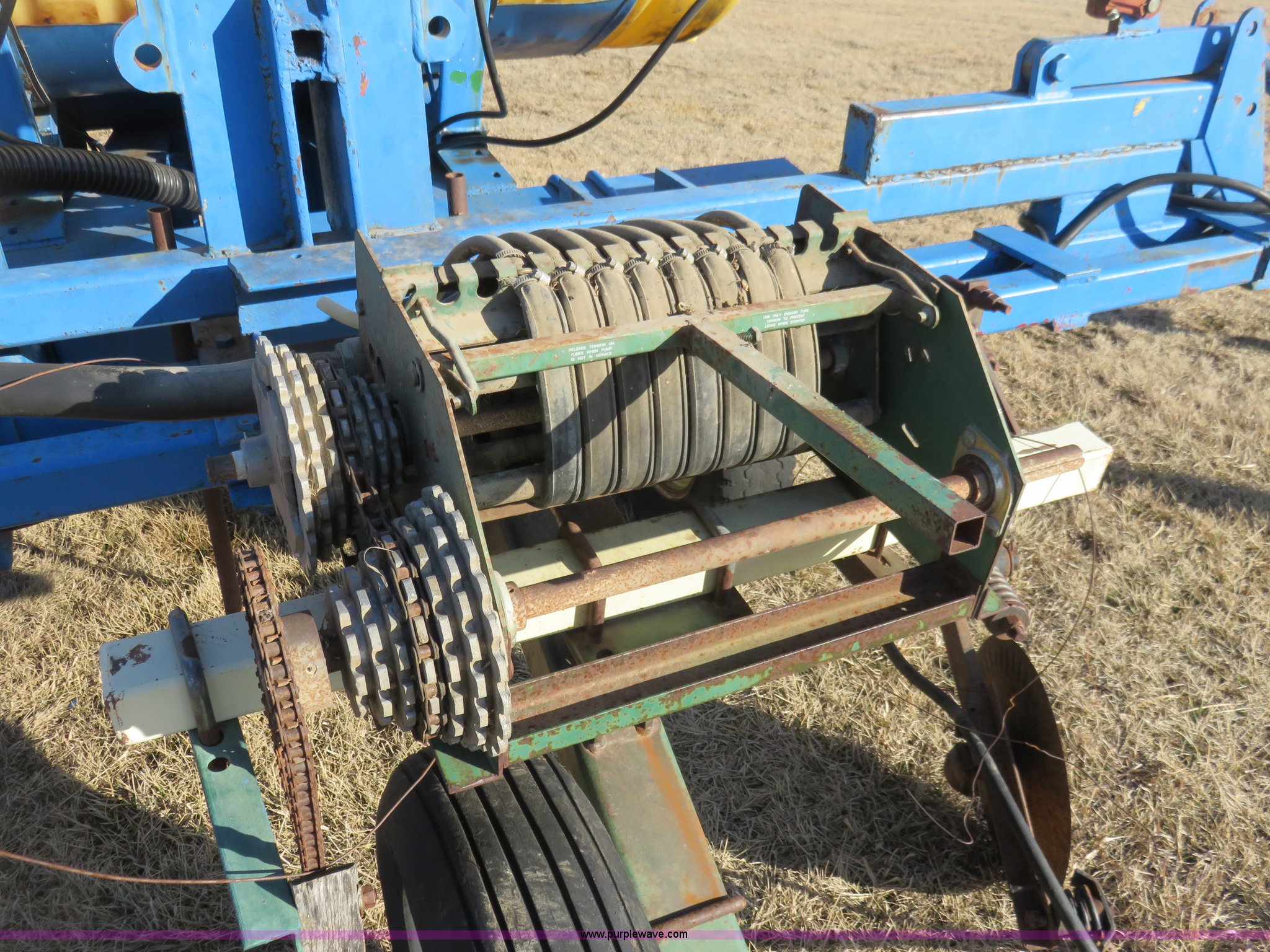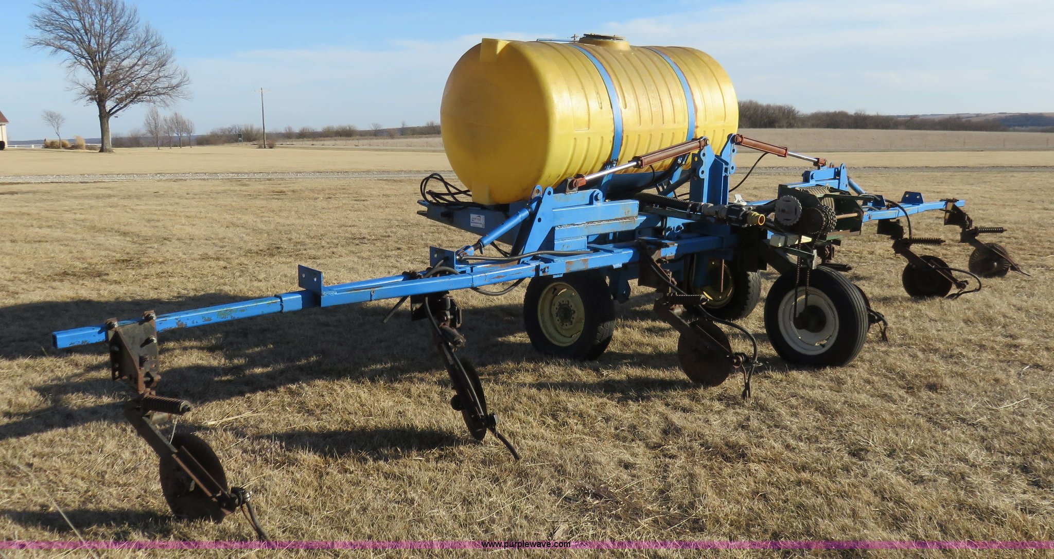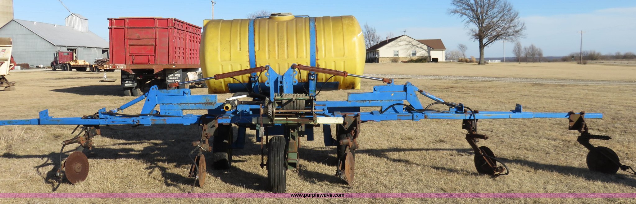 Purple Wave is selling a used Applicator Attach. in Kansas. This item is a Liquid fertilizer applicator with the following: 500 gallon tank, (6) applicator coulters, 60" centers, Ground driven squeeze pump, Has not been used in six years, Some hoses need replaced