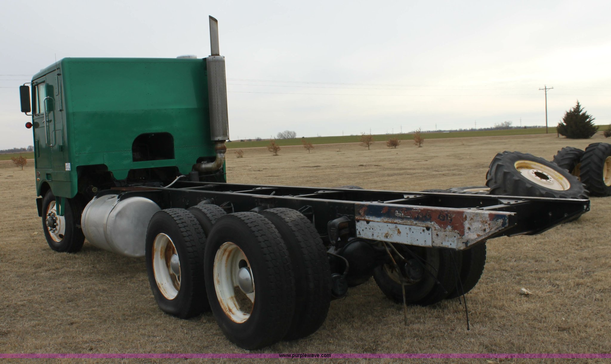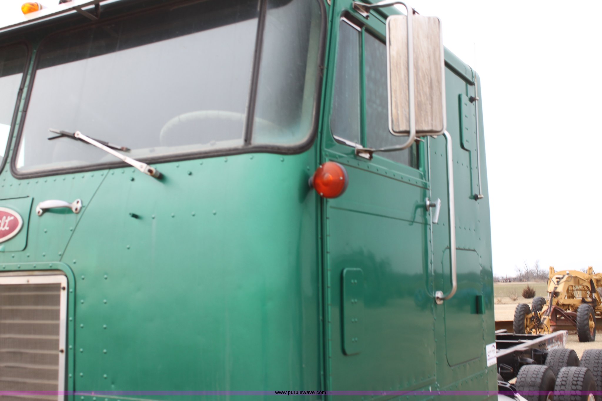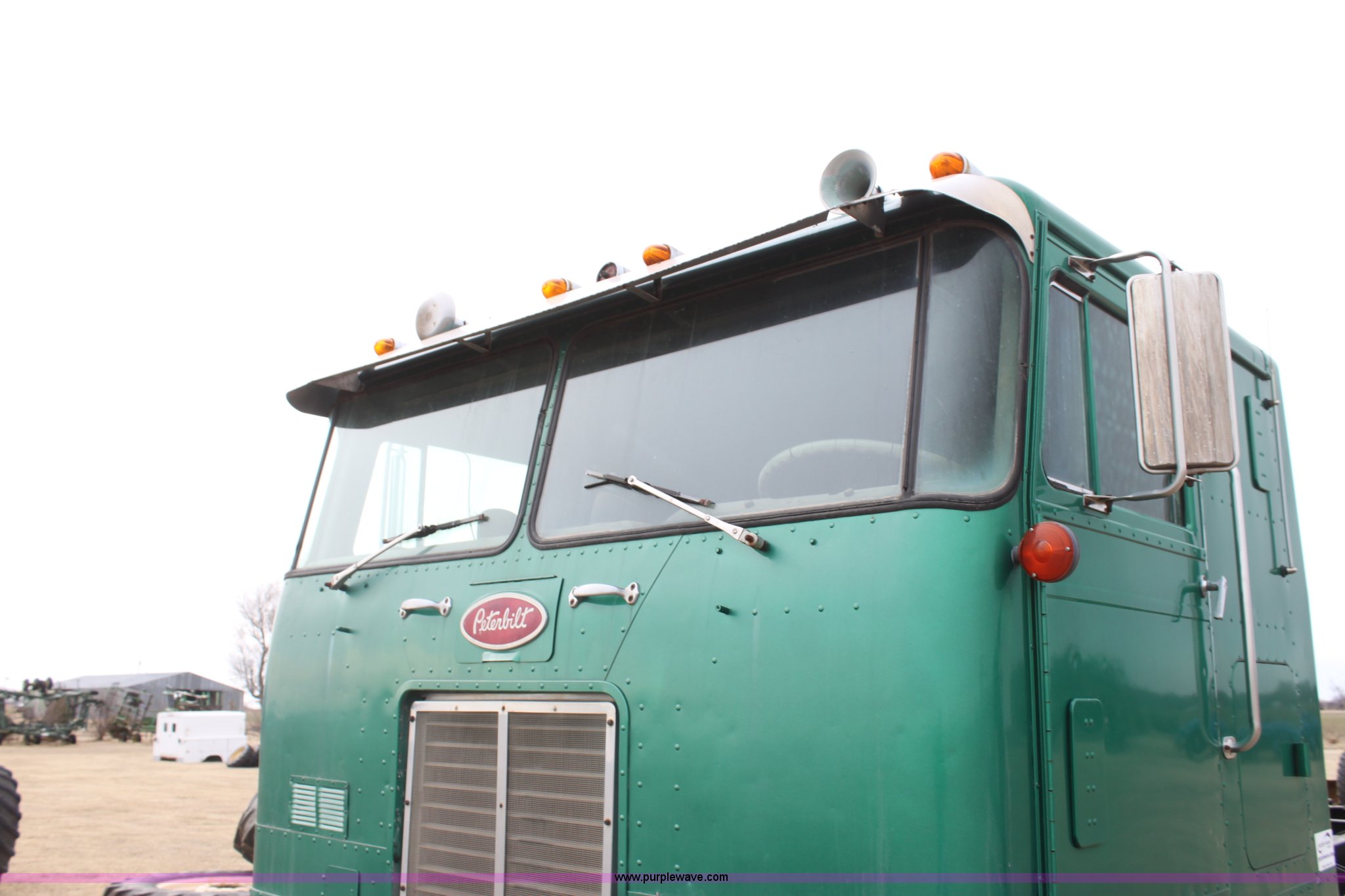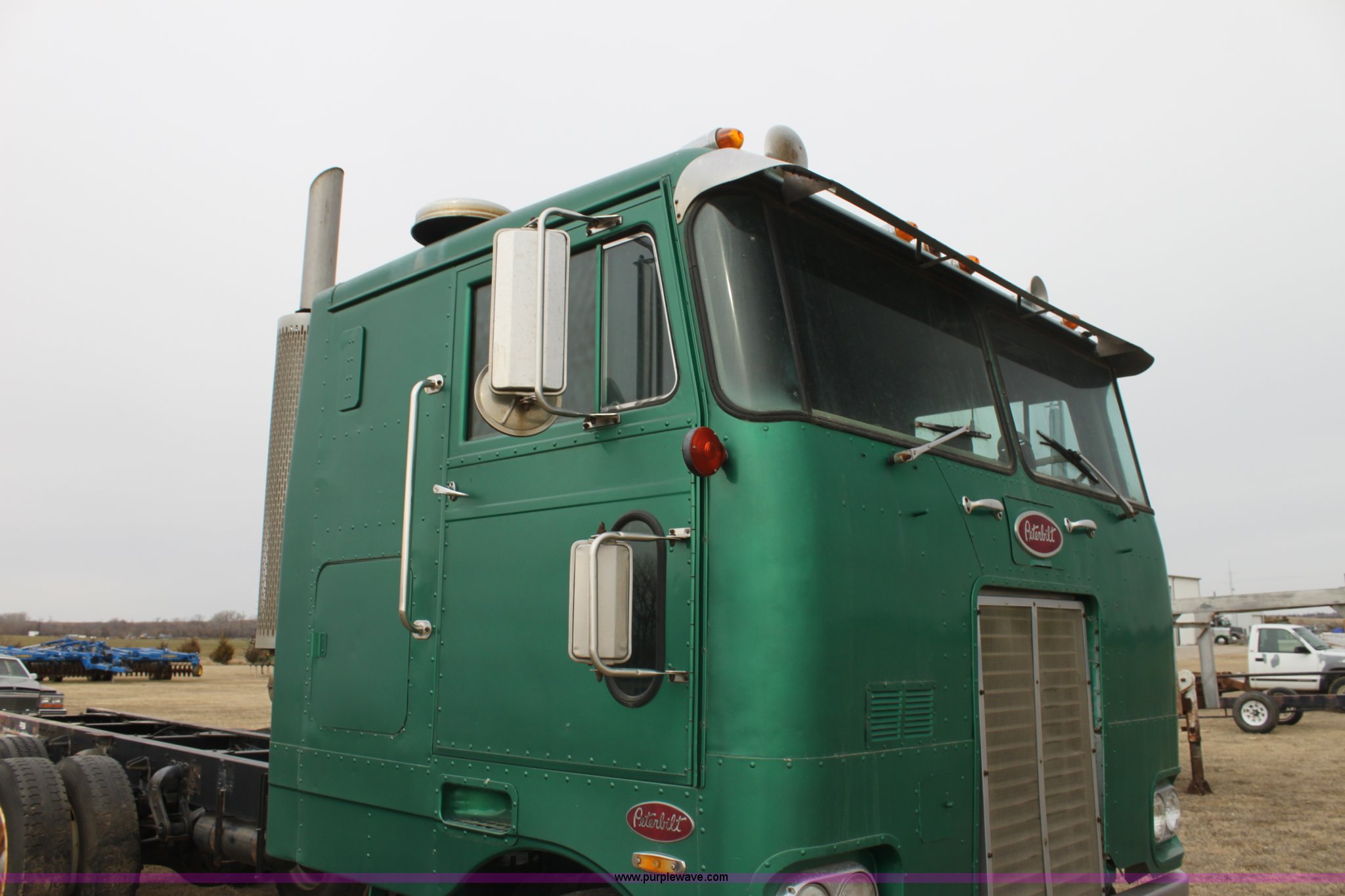 Purple Wave is selling a used Truck Tractor in Kansas. This item is a 1974 Peterbilt 352-A semi truck with the following: 700,800 miles on odometer, 92,716 miles on replacement engine, Cummins 450 diesel engine, 13 speed manual transmission, Twin screw, Heat, Air suspension seat, Visor, Chrome bumper, Single rear exhaust stack, Aluminum frame, Spring suspension, Air brakes, 11R24.5 tires, Interior/exterior cosmetic damage, No batteries, Air lines need to be replaced in frame, Lines must be replaced before unit may be driven