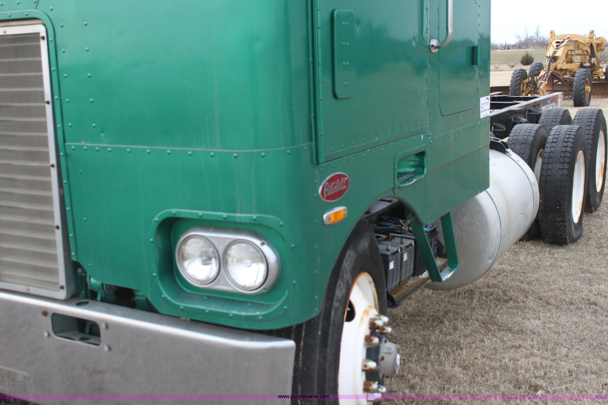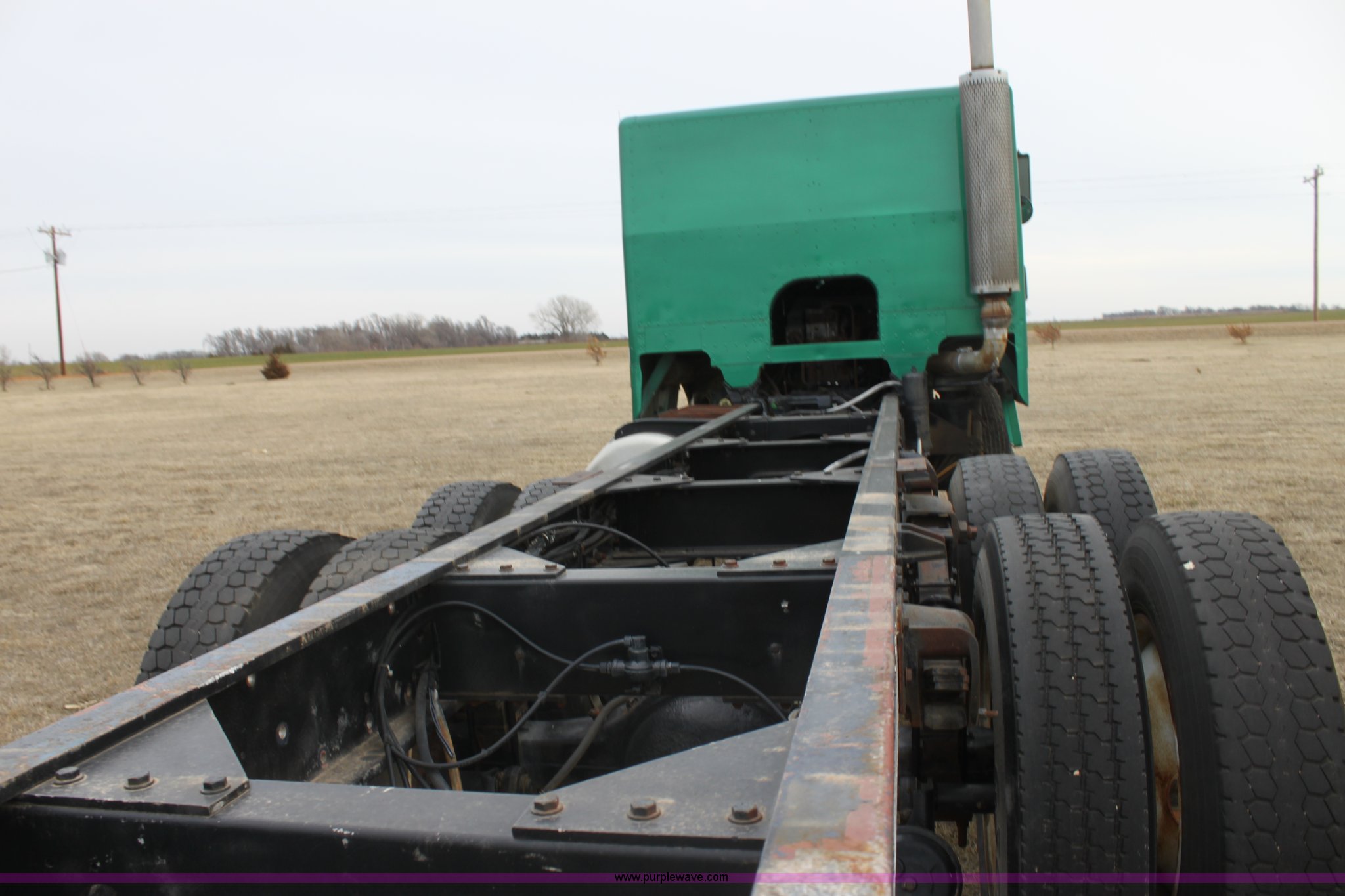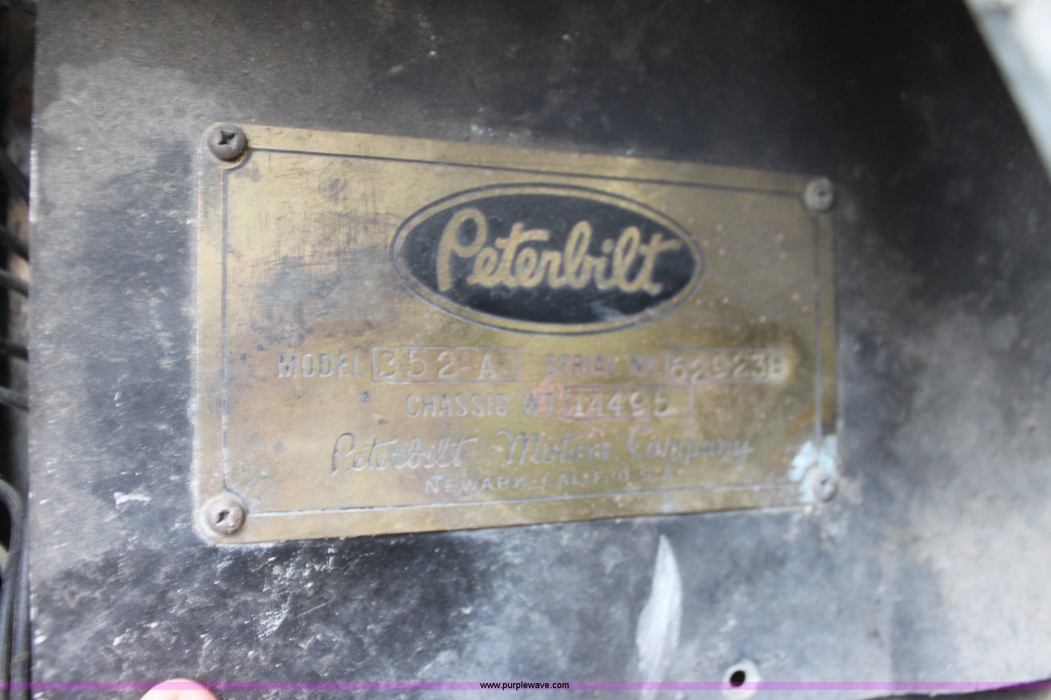 Purple Wave is selling a used Truck Tractor in Kansas. This item is a 1974 Peterbilt 352-A semi truck with the following: 700,800 miles on odometer, 92,716 miles on replacement engine, Cummins 450 diesel engine, 13 speed manual transmission, Twin screw, Heat, Air suspension seat, Visor, Chrome bumper, Single rear exhaust stack, Aluminum frame, Spring suspension, Air brakes, 11R24.5 tires, Interior/exterior cosmetic damage, No batteries, Air lines need to be replaced in frame, Lines must be replaced before unit may be driven