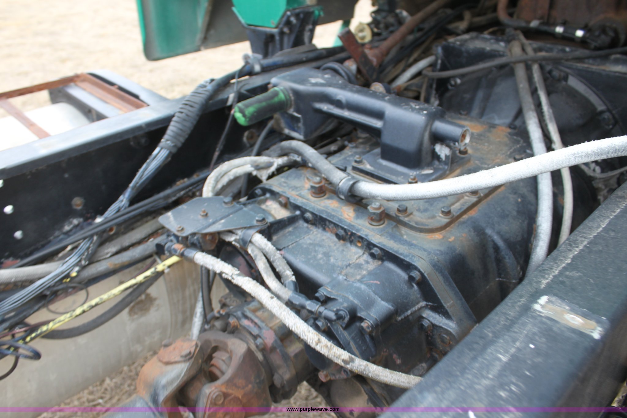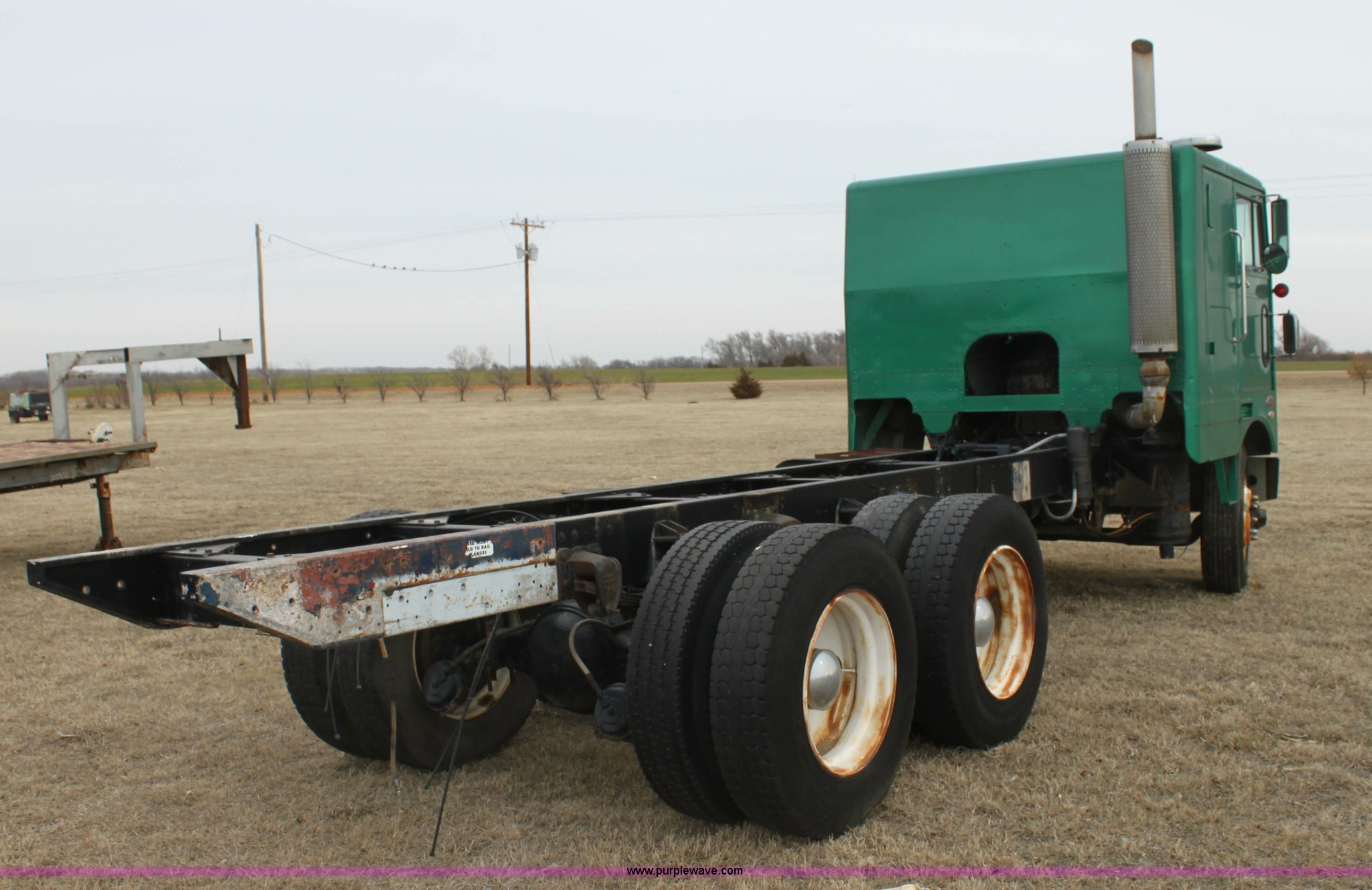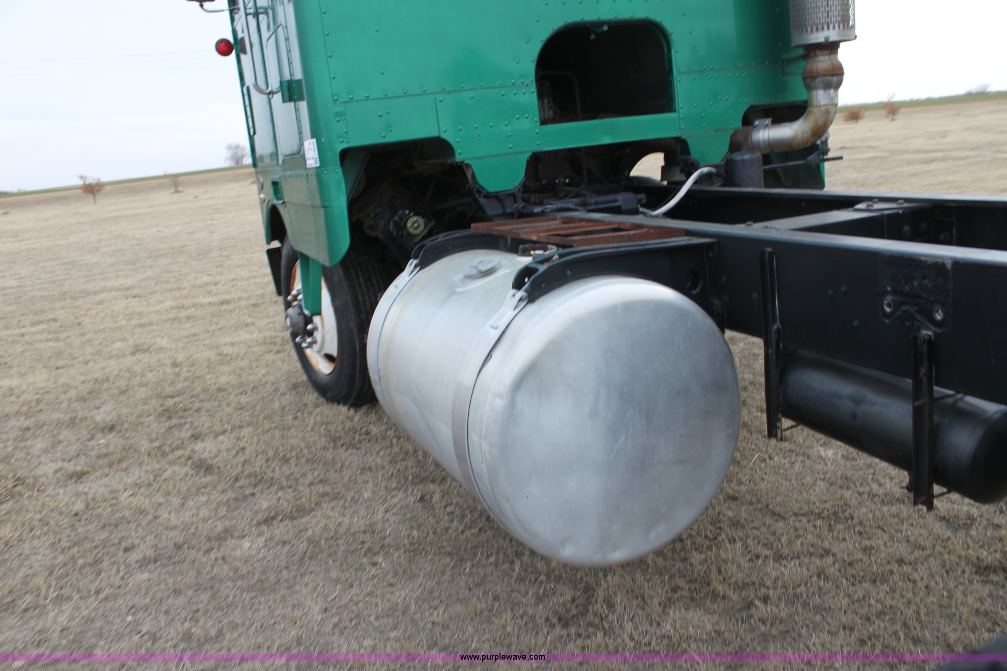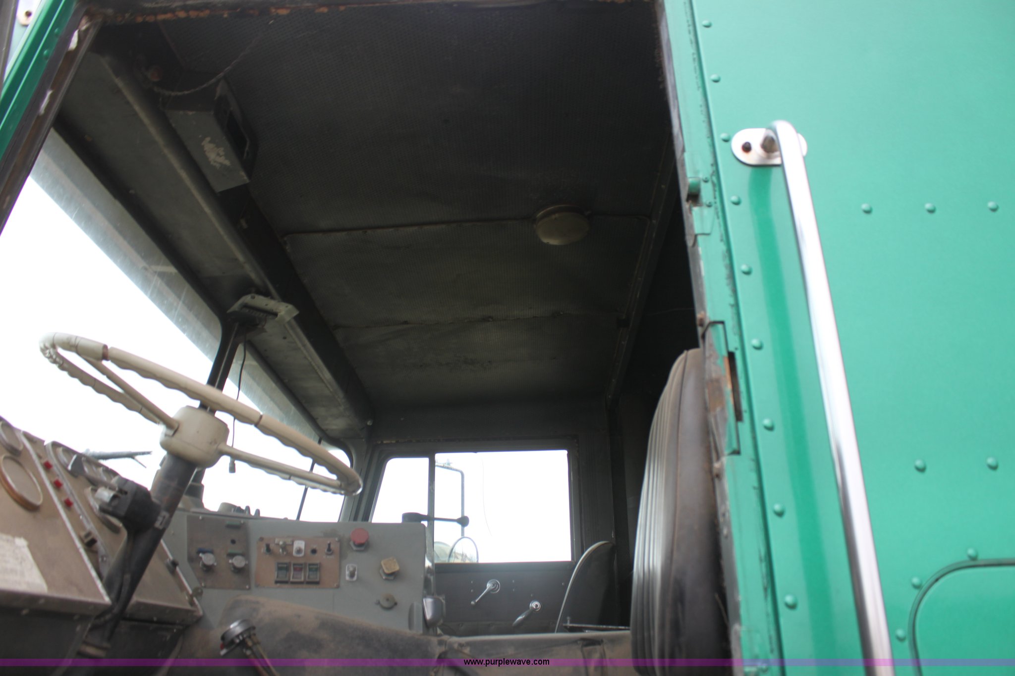 Purple Wave is selling a used Truck Tractor in Kansas. This item is a 1974 Peterbilt 352-A semi truck with the following: 700,800 miles on odometer, 92,716 miles on replacement engine, Cummins 450 diesel engine, 13 speed manual transmission, Twin screw, Heat, Air suspension seat, Visor, Chrome bumper, Single rear exhaust stack, Aluminum frame, Spring suspension, Air brakes, 11R24.5 tires, Interior/exterior cosmetic damage, No batteries, Air lines need to be replaced in frame, Lines must be replaced before unit may be driven
