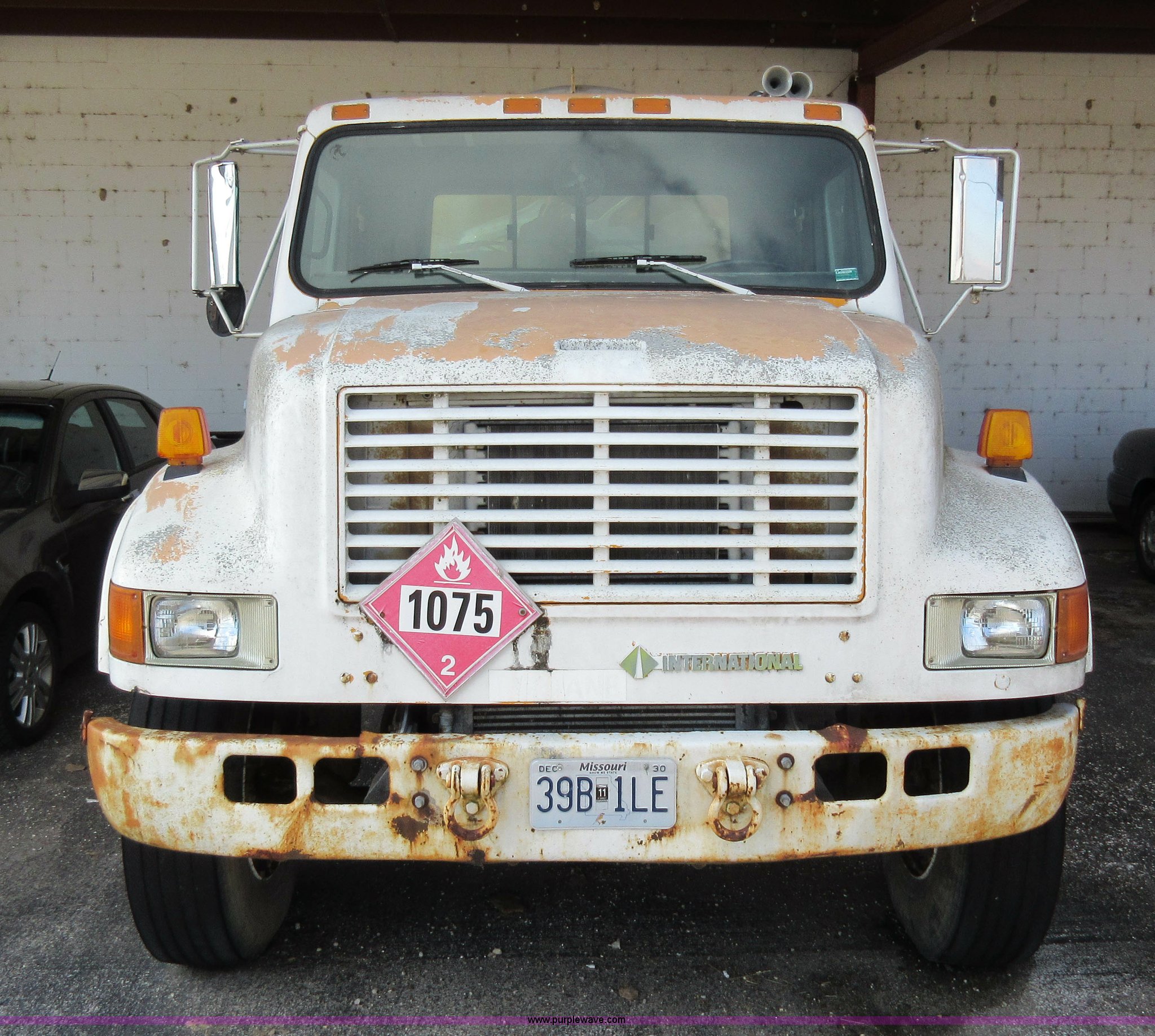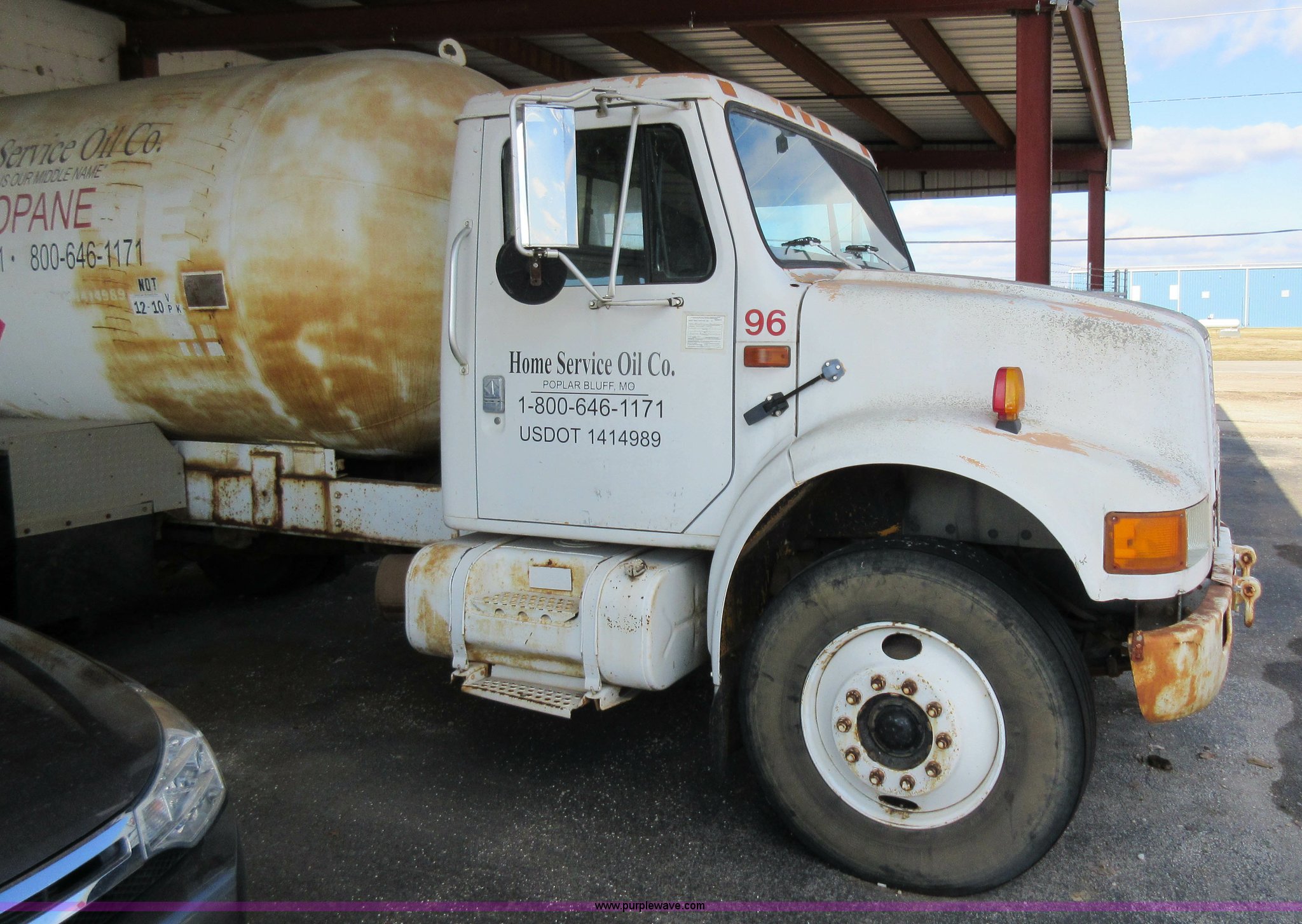 Purple Wave is selling a used Fuel Truck in Missouri. This item is a 1993 International 4900 propane delivery truck with the following: 351,273 miles on odometer, 12,428 hours on meter, International DT466 7.6L L6 diesel engine, Automatic transmission, Heat, Manual windows and locks, Vinyl interior, Trinity propane tank, 2,000 gallon capacity, Serial 368795, Hose reel, Neptune meter, 224" wheelbase, 11R22.5 tires, Unknown operating condition