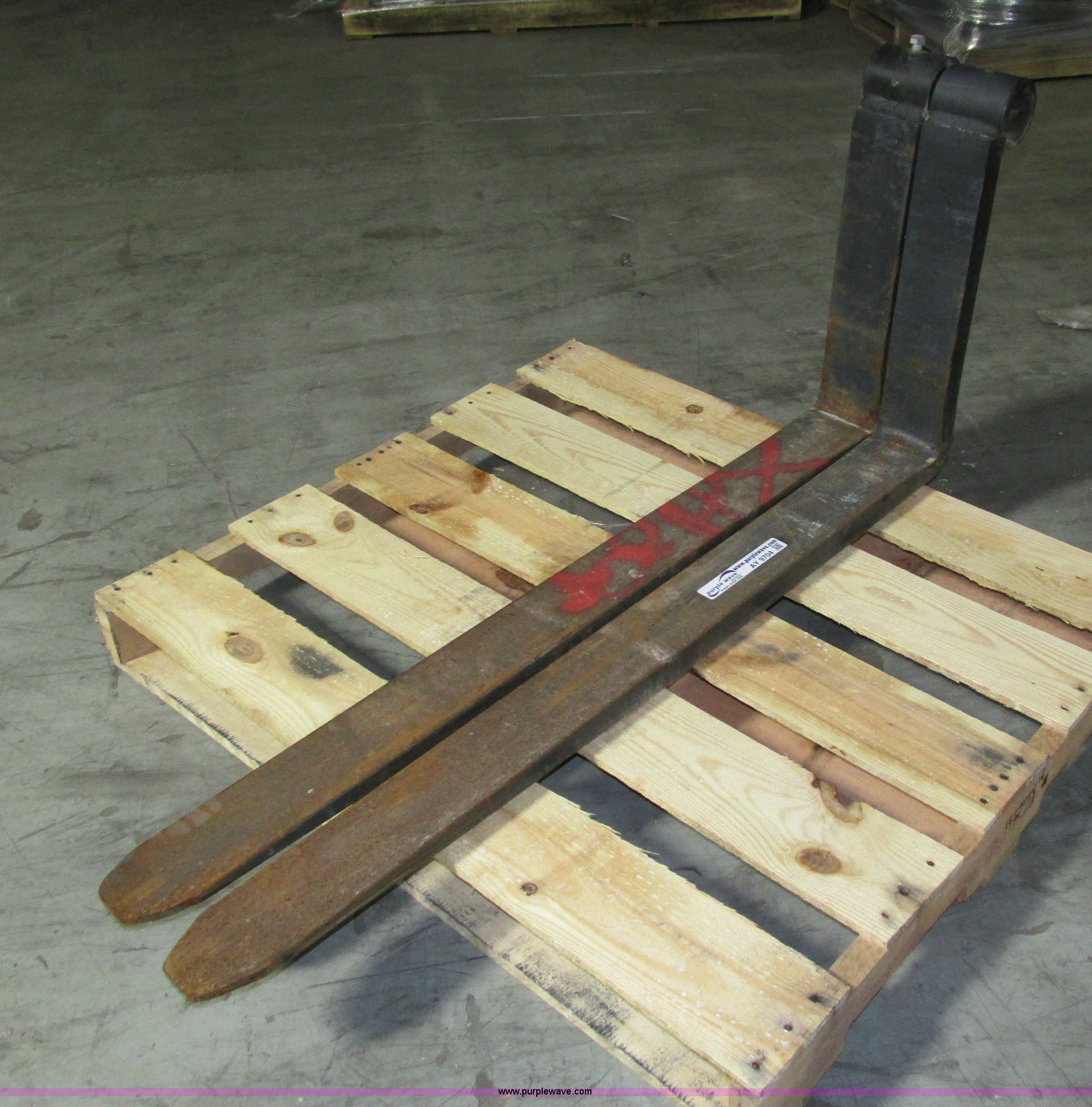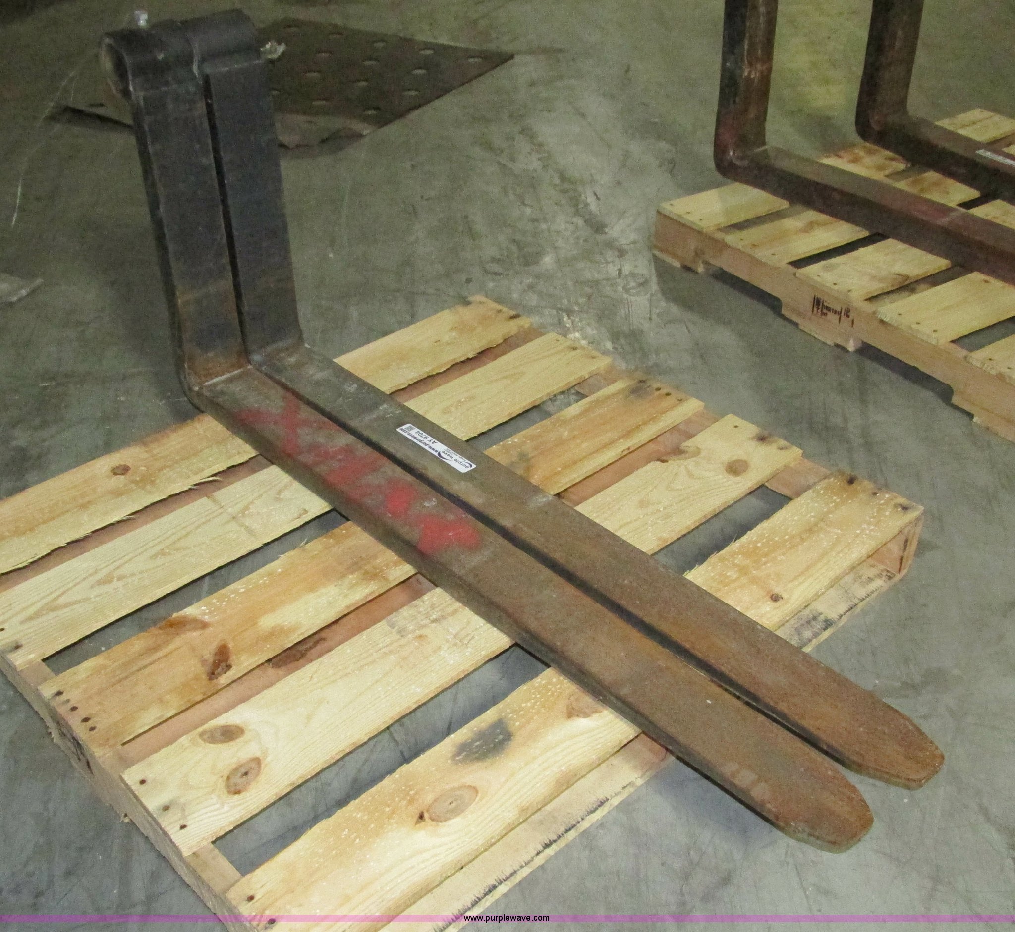 Purple Wave is selling a used Forklift Attach. in Iowa. This item is a Pallet forks with the following: 47"L x 4"W x 1.5" thick, 22"H carriage