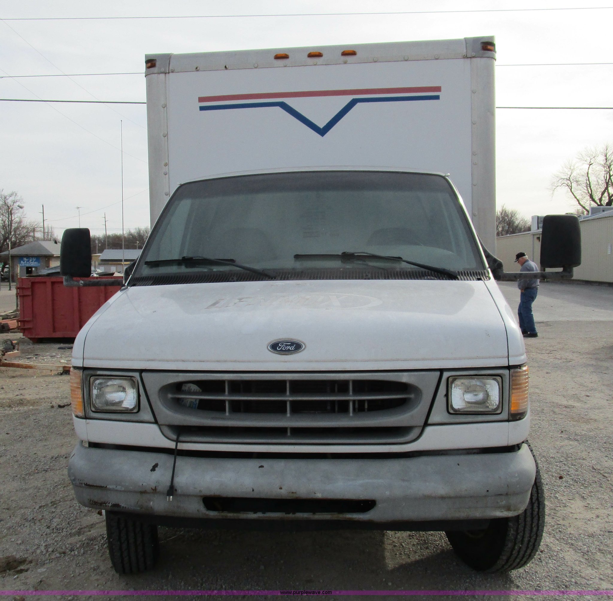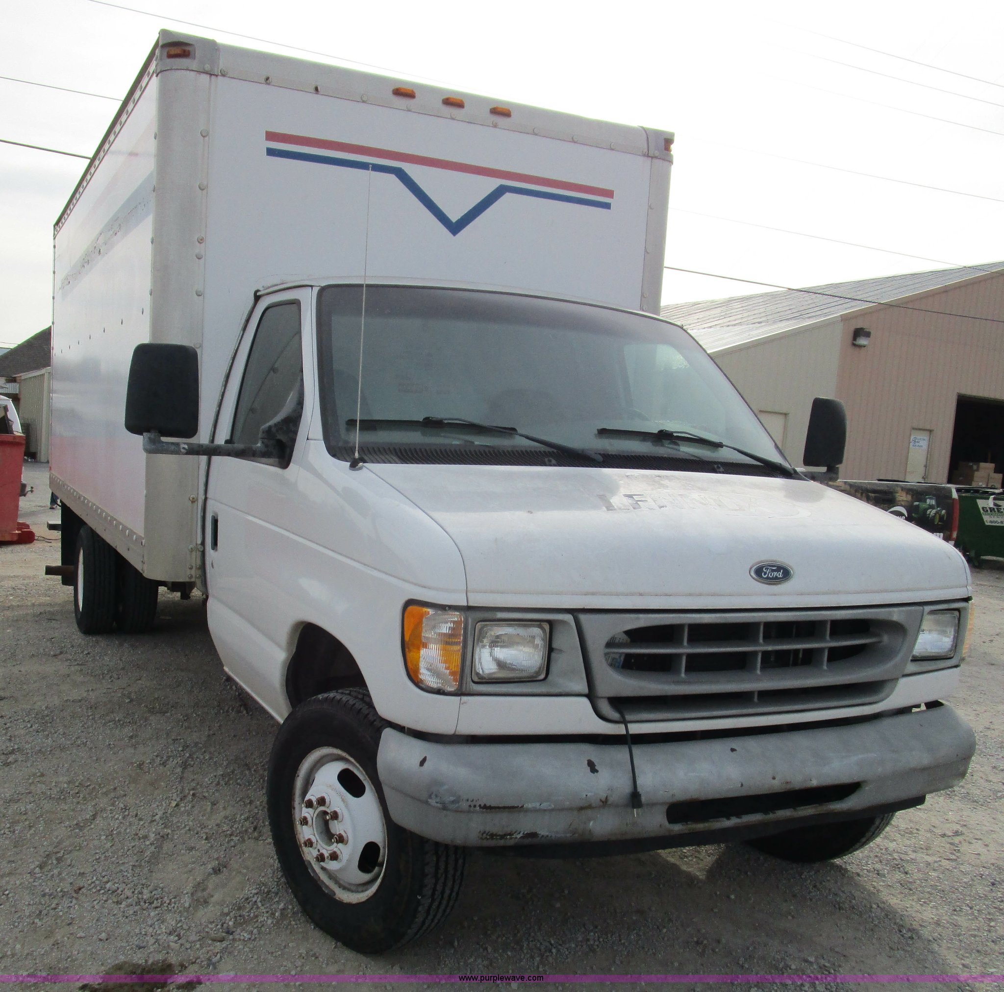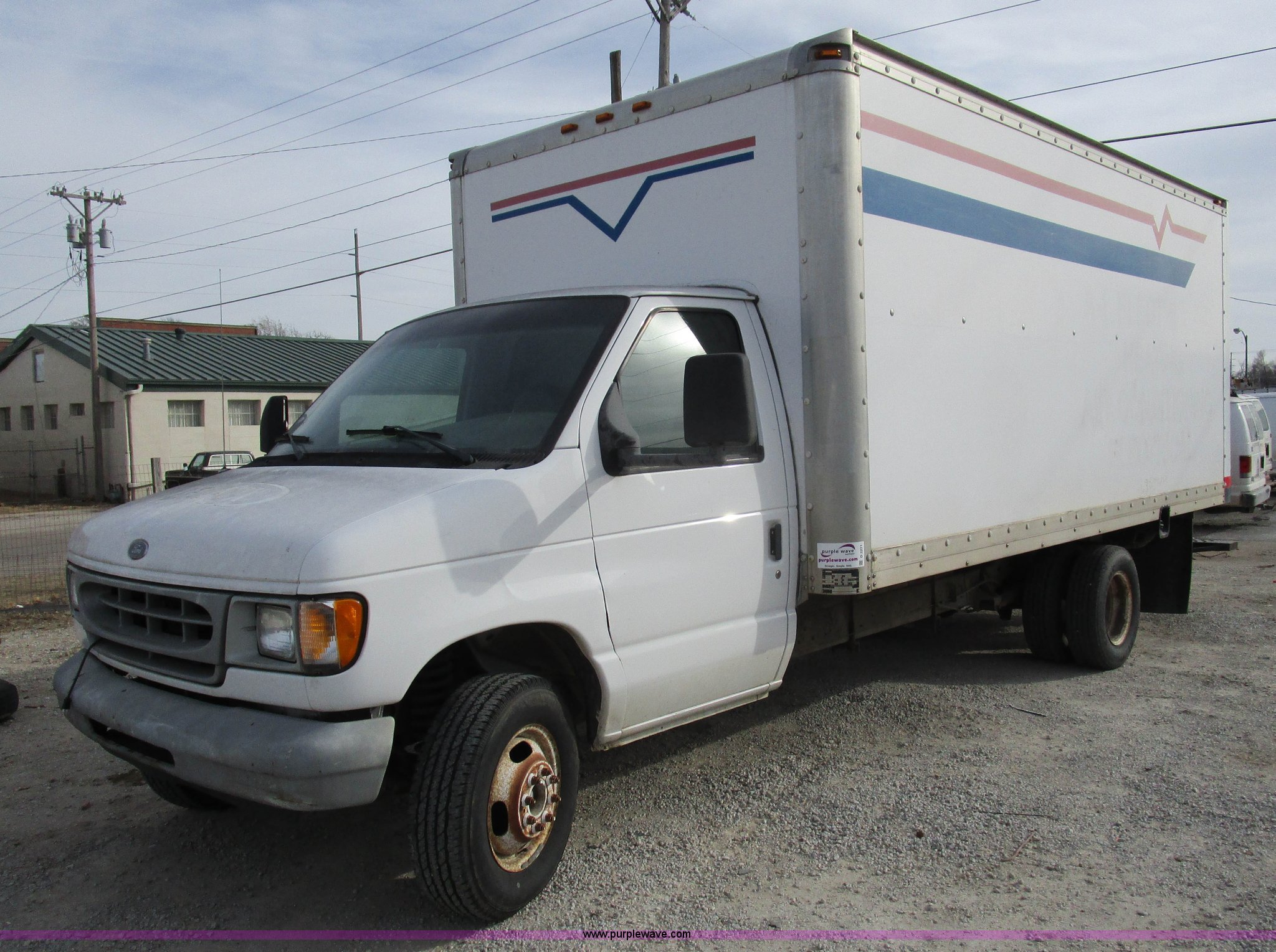 Purple Wave is selling a used Box Truck in Kansas. This item is a 2000 Ford Econoline E350 box van with the following: 160,757 miles on odometer, 5.4L V8 SOHC 16V gas engine, Automatic transmission, AC and heat, AM/FM, Manual windows and locks, Vinyl interior, Grumman Olsen 16'L bed, Aluminum loading ramp, LT225/75R16 tires, GVWR 11,500 lbs, FAWR 4,600 lbs, RAWR 7,800 lbs, Windshield cracked