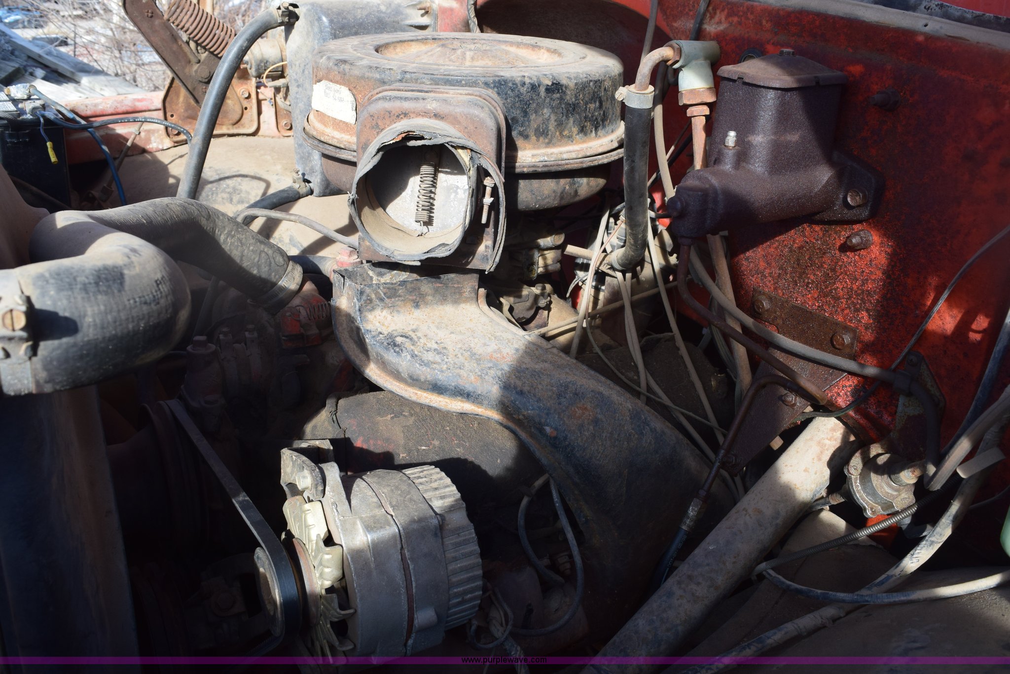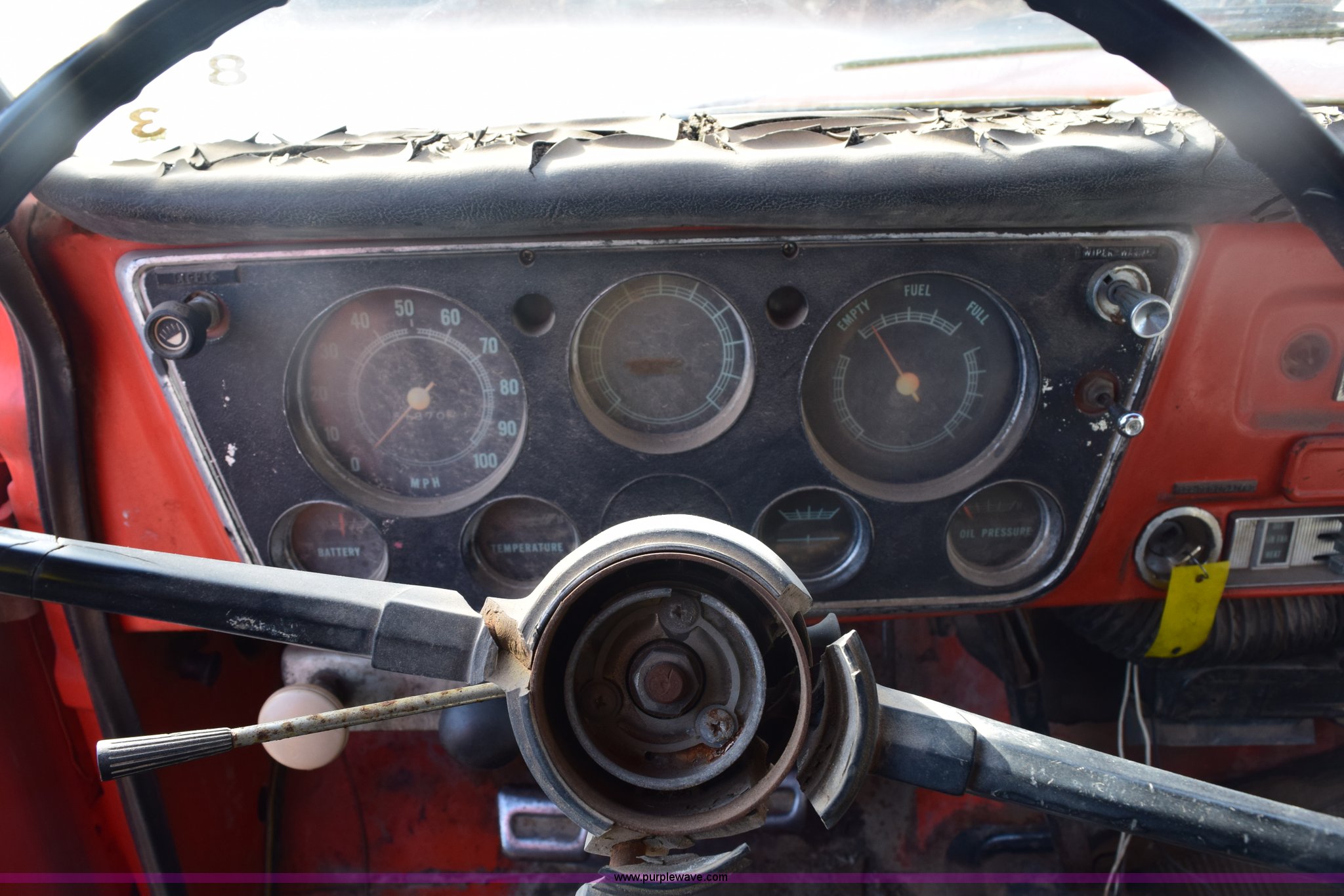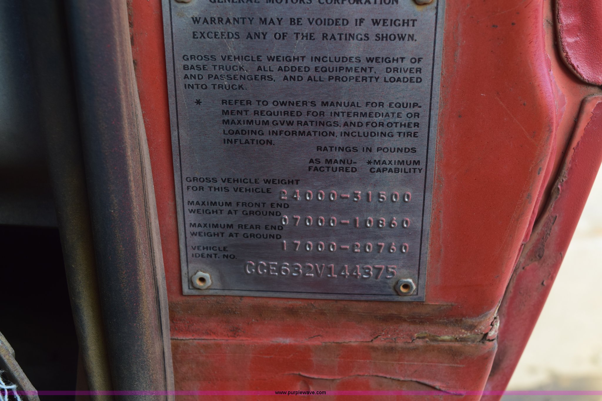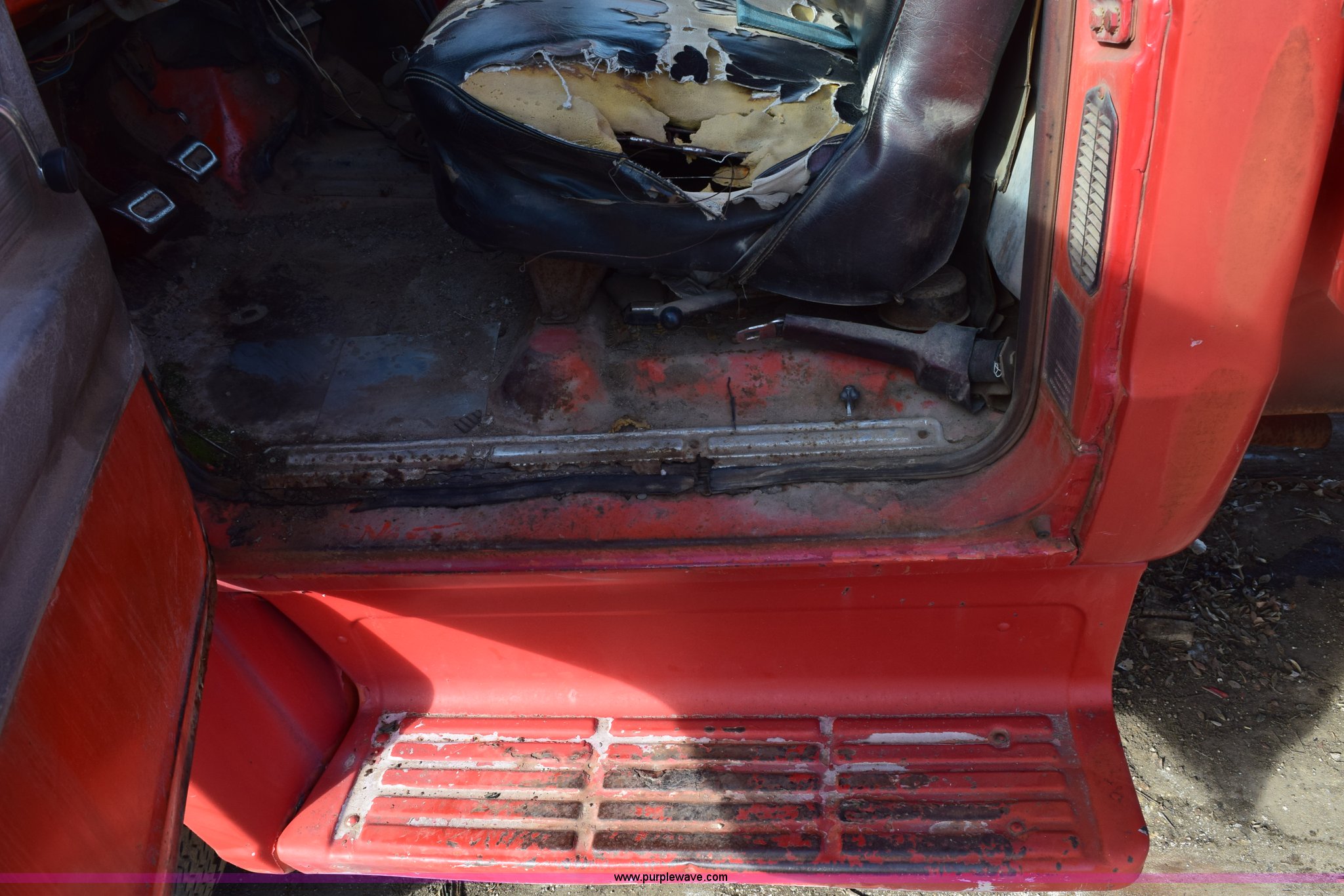 Purple Wave is selling a used Flat Bed Truck in Kansas. This item is a 1972 Chevrolet C60 flatbed dump truck with the following: 51,870 miles on odometer, V8 gas engine, Five speed manual transmission, Two speed rear end, Heat, AM, Manual windows and locks, Vinyl interior, PTO, 16'L x 8'W flatbed, Headache rack, Stake side pockets, Single ram hoist, Under mount toolbox, Door damaged, Side boards damaged, Spring suspension, 9.00-20 tires, GVWR 31,500 lbs, FAWR 10,860 lbs, RAWR 20,760 lbs, Interior/exterior cosmetic damage, Right rear brake locked up, Non-operational fuel pump