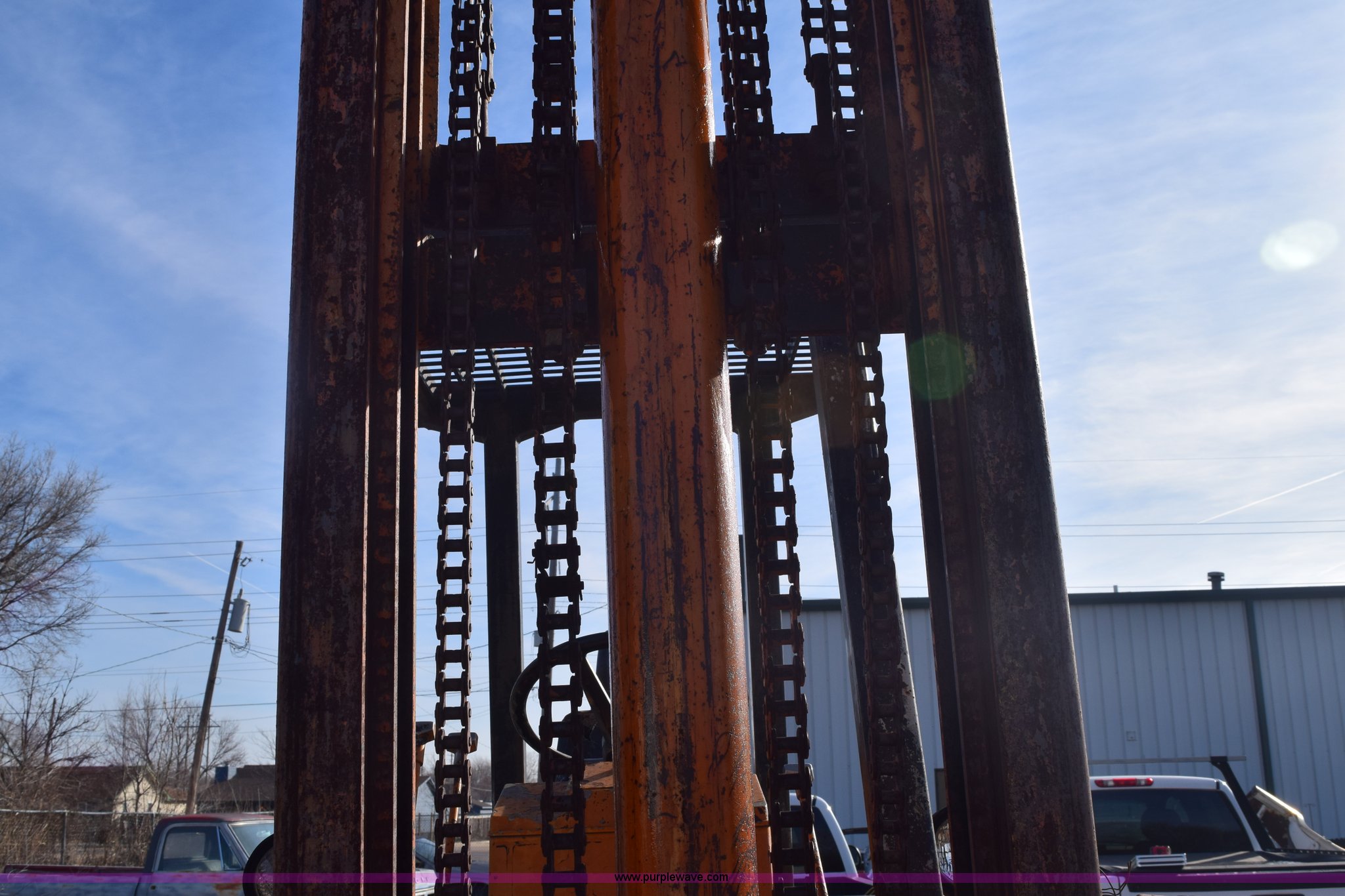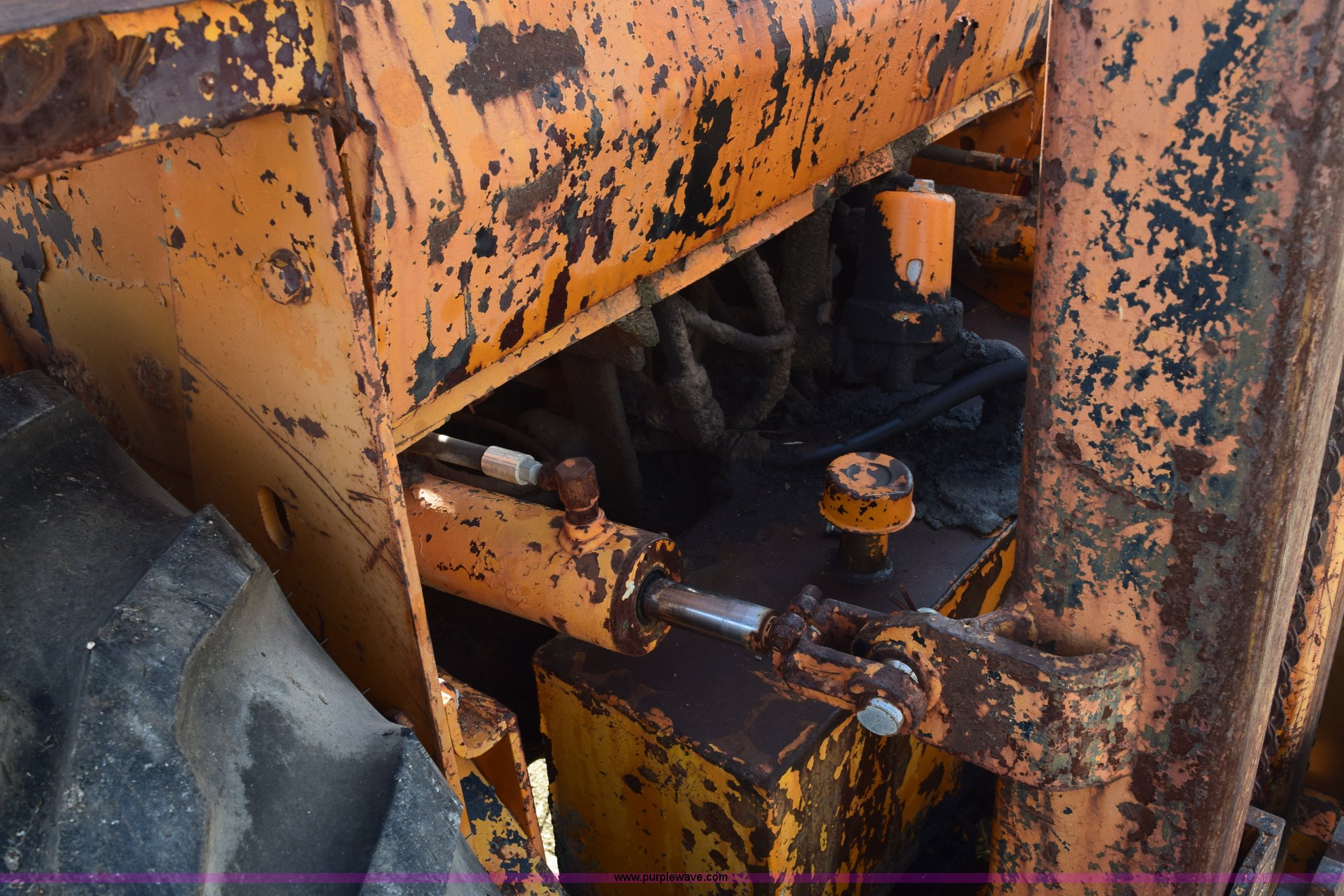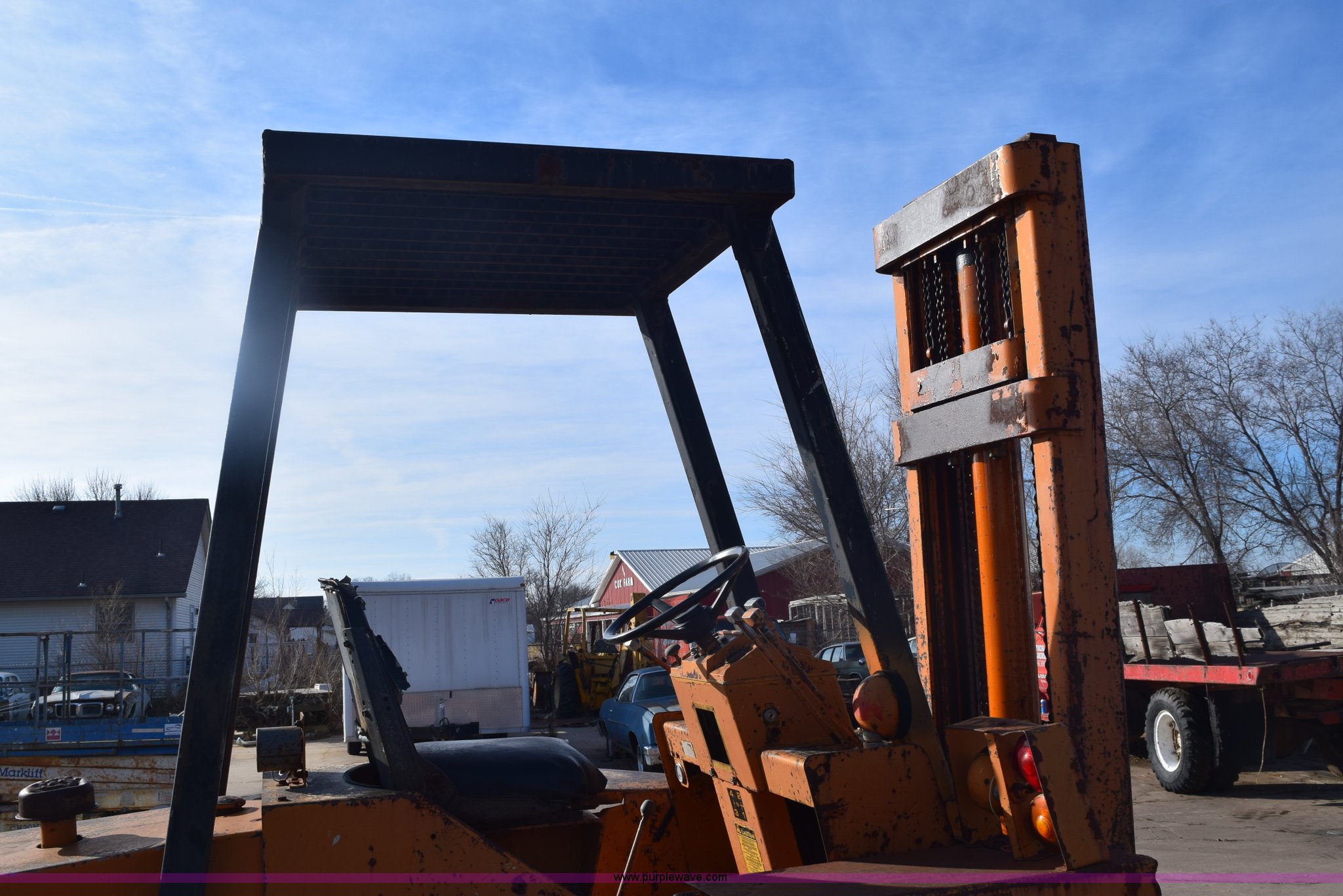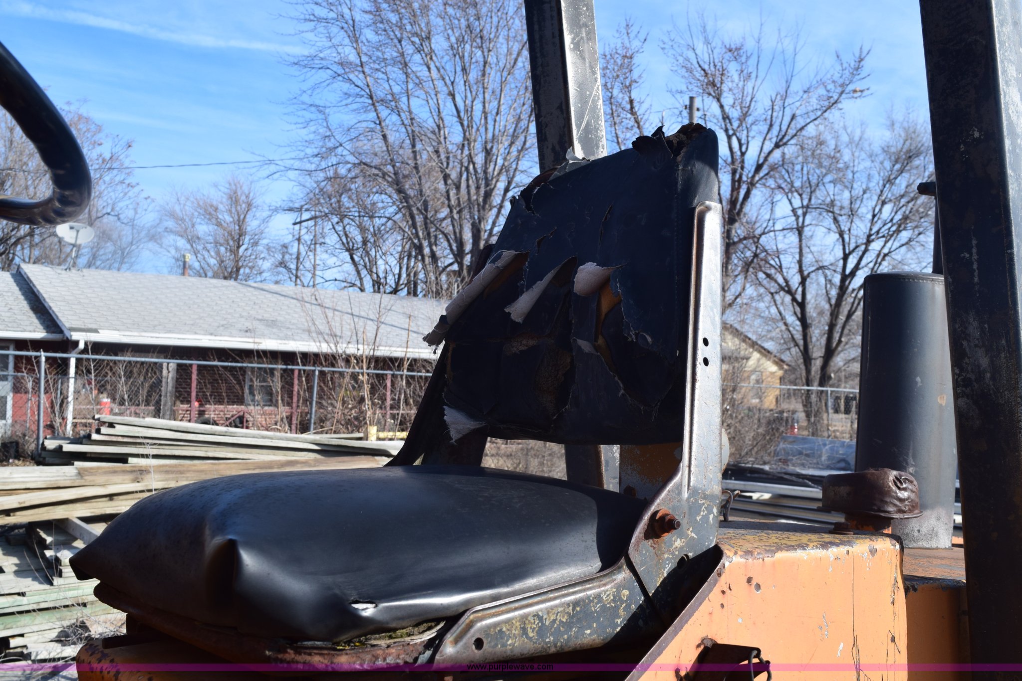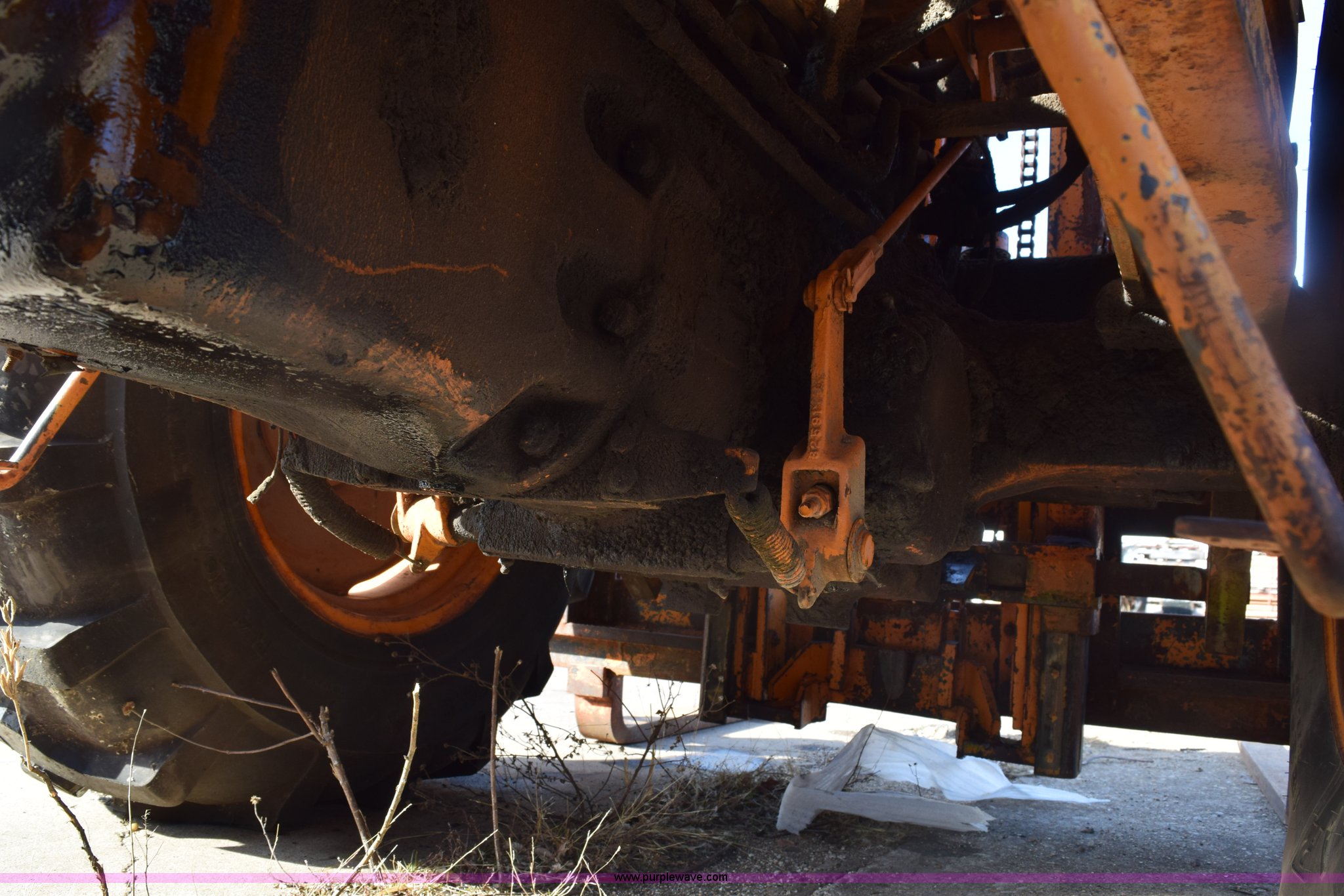 Purple Wave is selling a used Strt. Mast Rough Terr. Forklift in Kansas. This item is a Case 584 rough terrain forklift with the following: 4,419 hours on meter, Four cylinder diesel engine, Shuttle shift transmission, 4F-4R gears, OROPS, Three lever control, Approximately 21' maximum lift height, Side shift, 48"L x 4"W forks, 78"W carriage, Rear bolt-on counter weights, 16.9-24 front tires, 11L-16SL rear tires, Hydraulic leaks, Fuel leak, Body damage, Serial 5311479