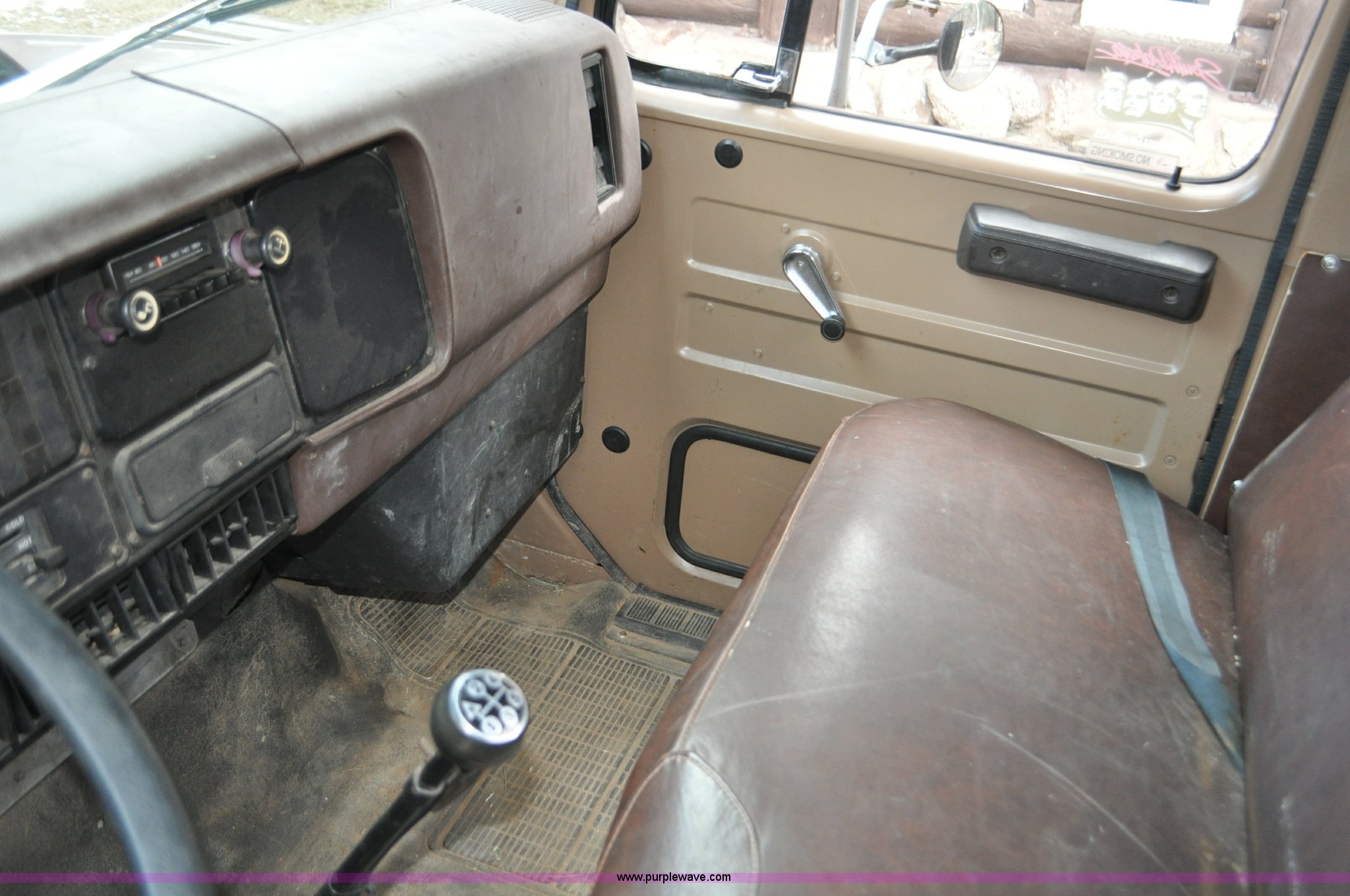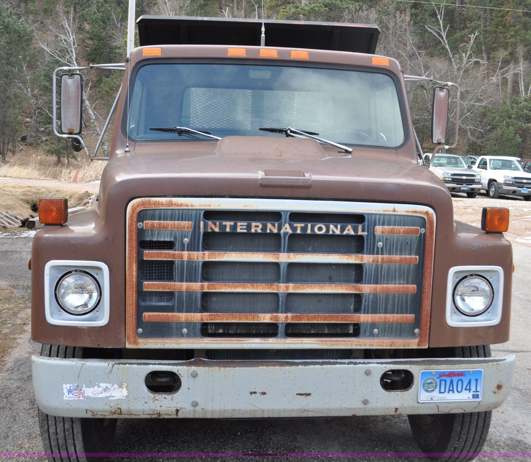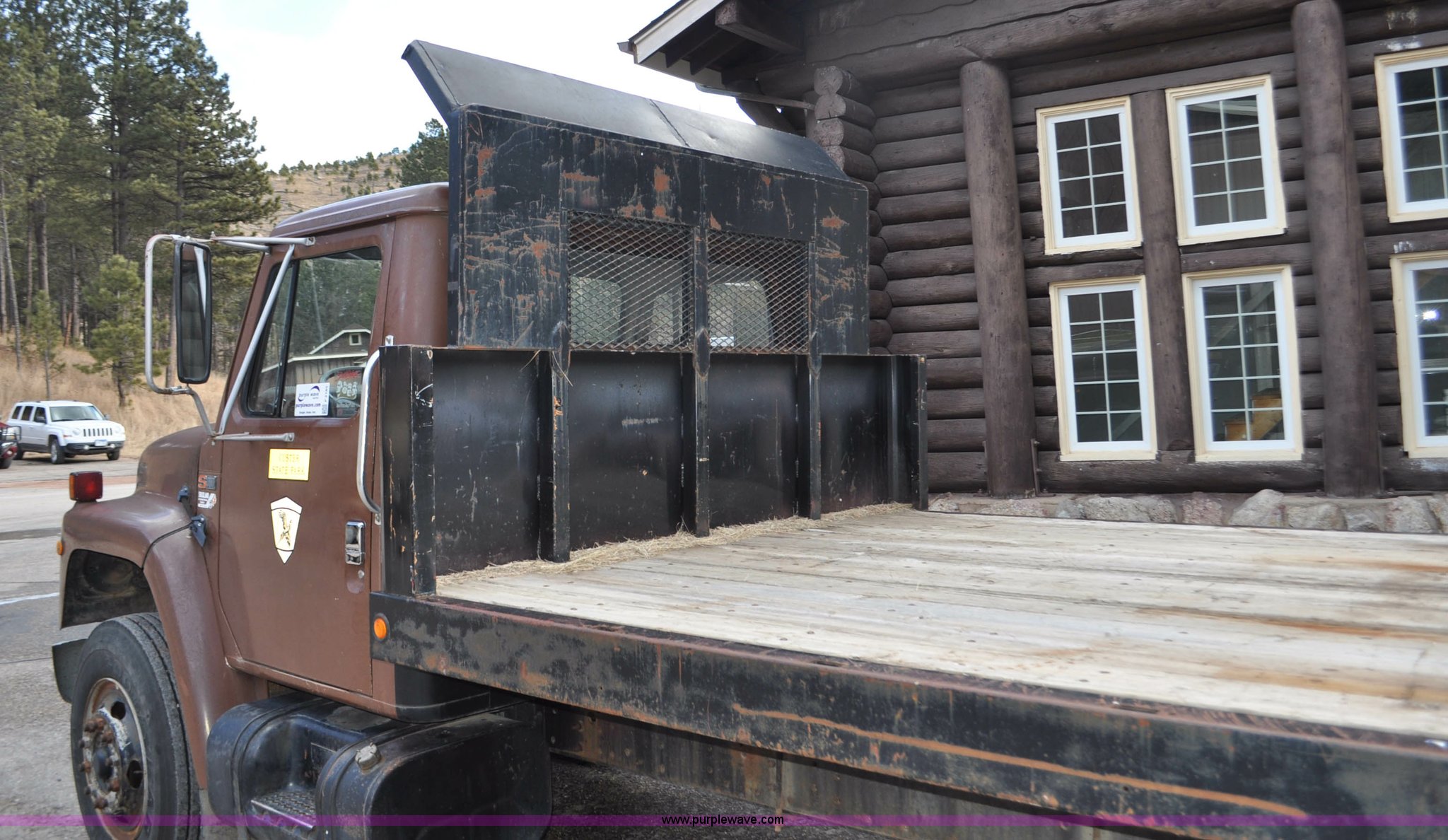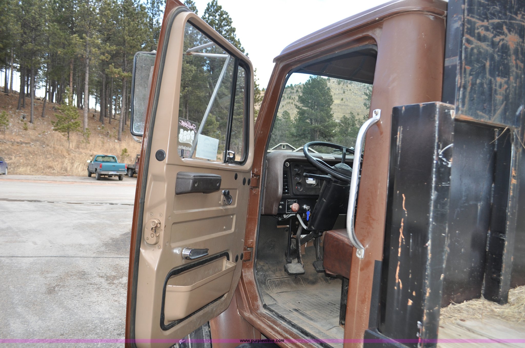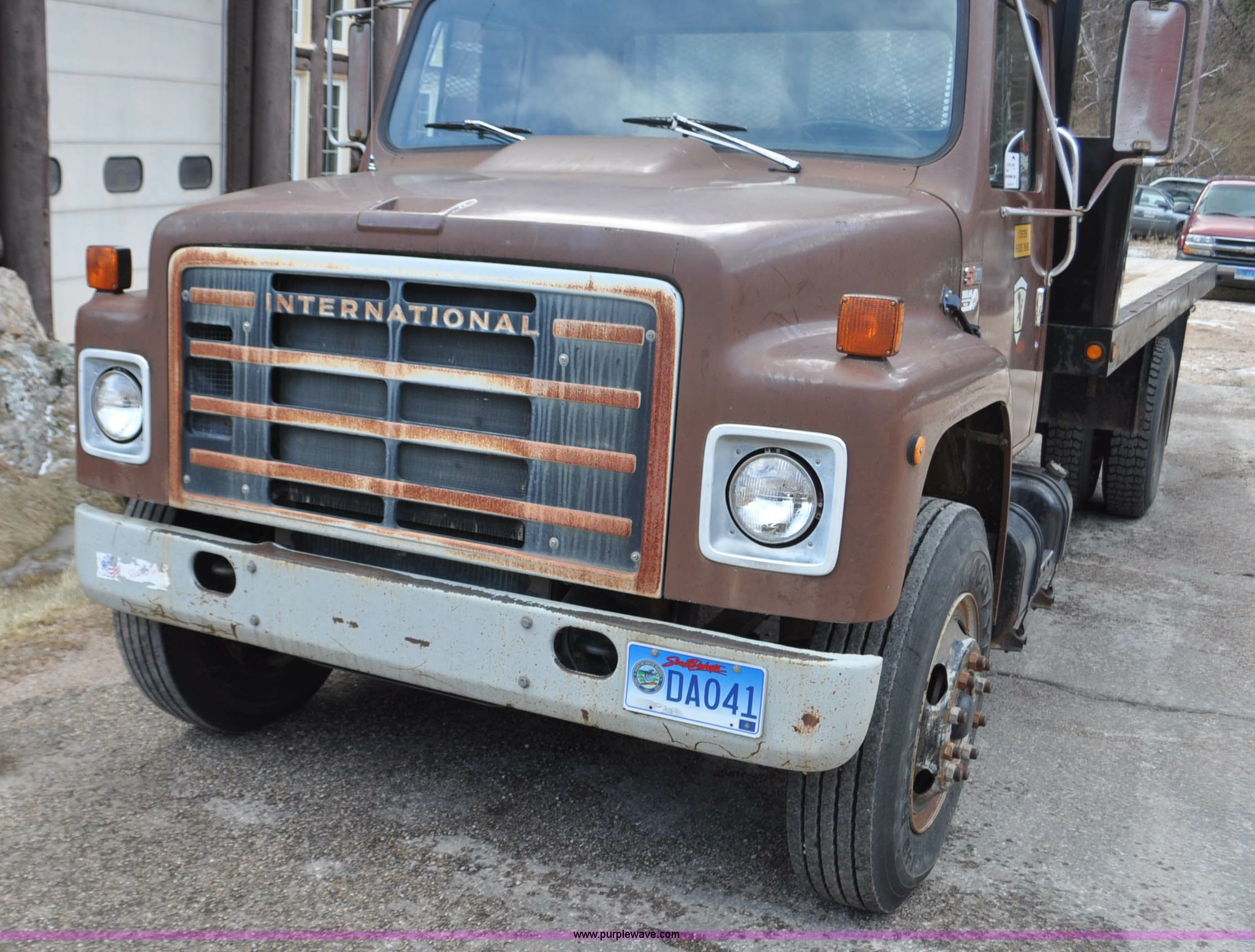 Purple Wave is selling a used Flat Bed Truck in South Dakota. This item is a 1984 International S1700 flatbed truck with the following: 53,599 miles on odometer, 392 C.I.D. eight cylinder gas engine, Five speed manual transmission, Two speed rear end, AC and heat, Manual windows and locks, Vinyl interior, 20' flatbed, Headache rack, Wood floor, Stake pockets, Fold away access steps, 9.00-20 tires, Asset# 0247278, Unit# DA041