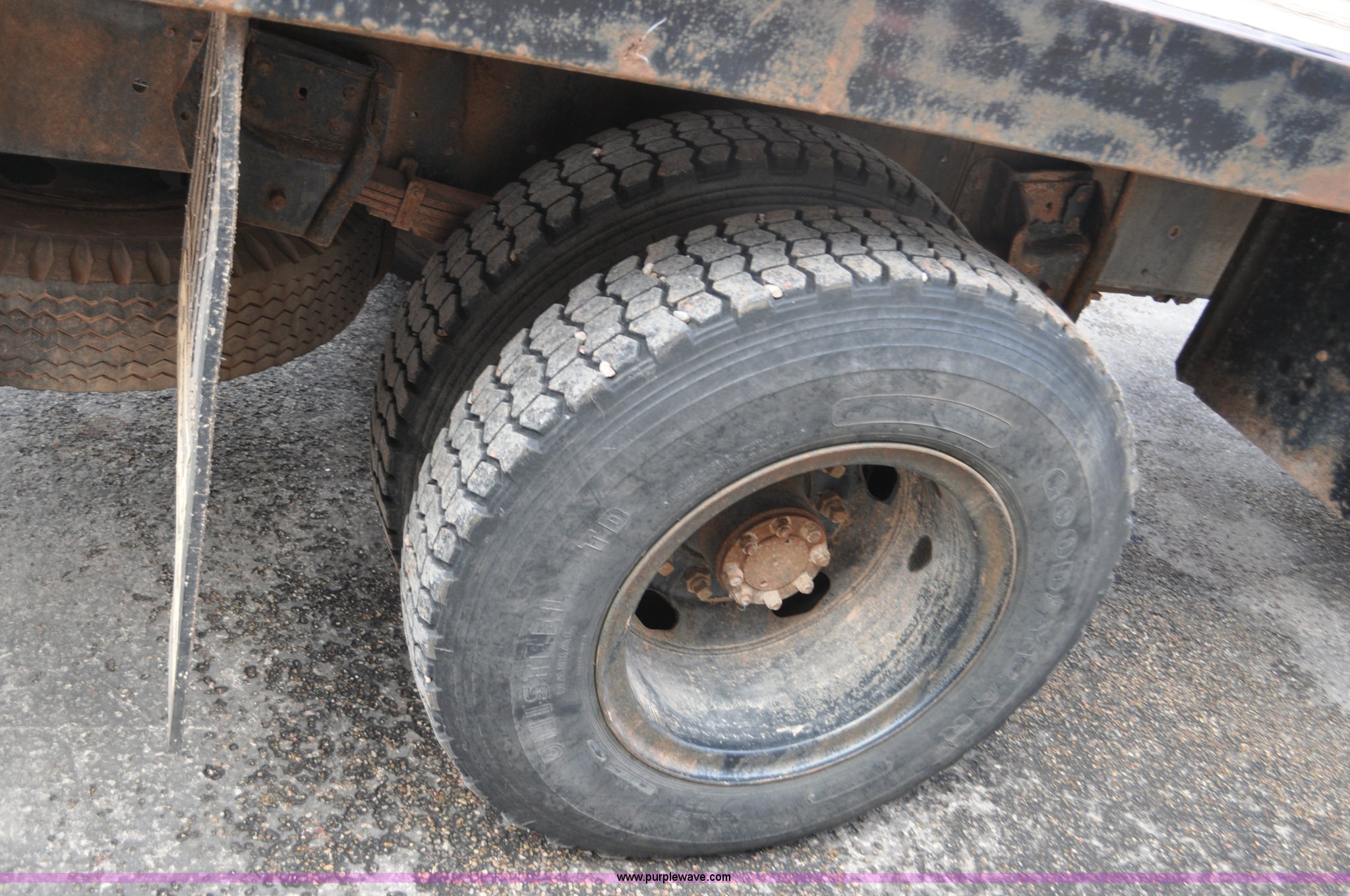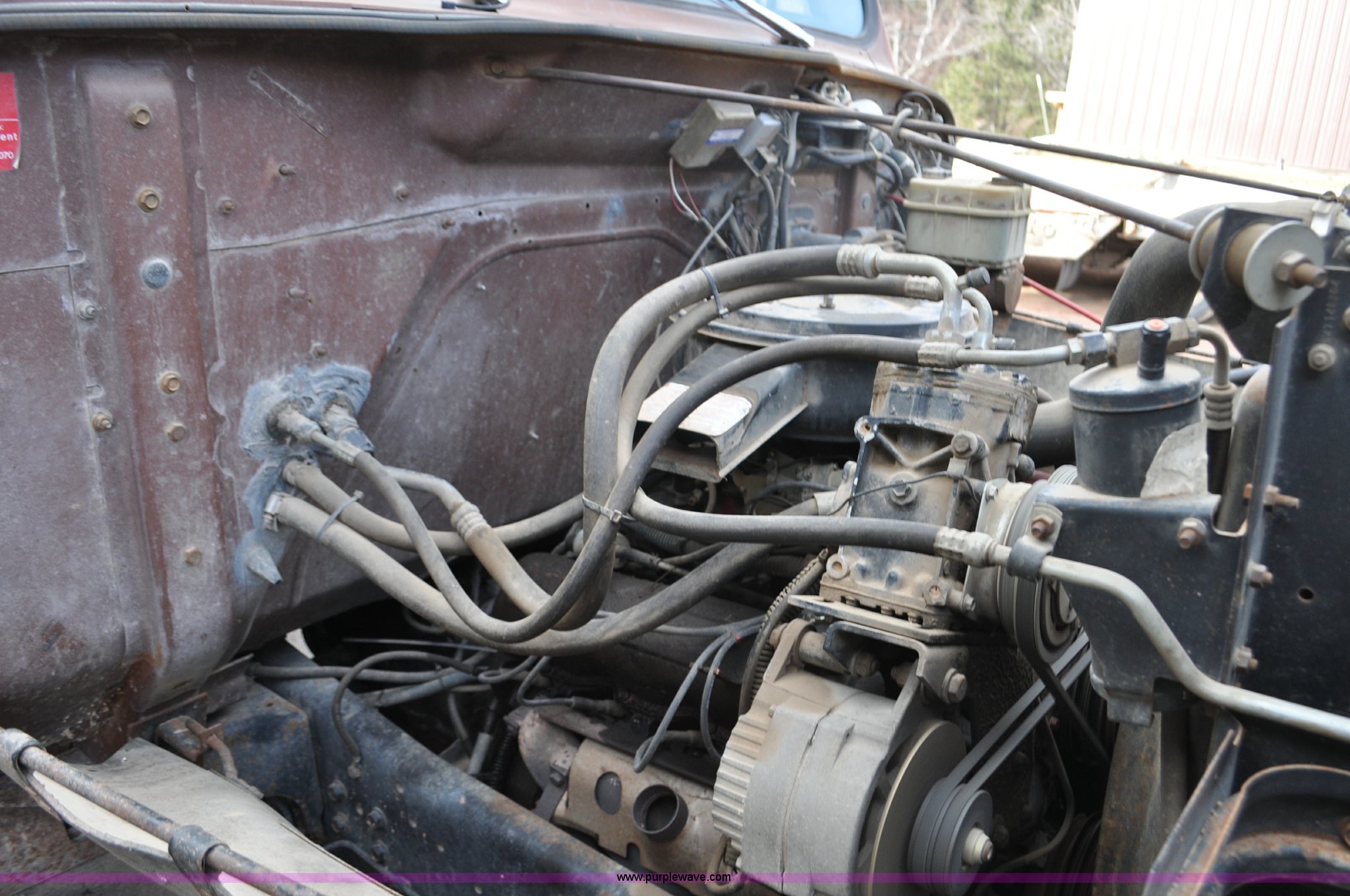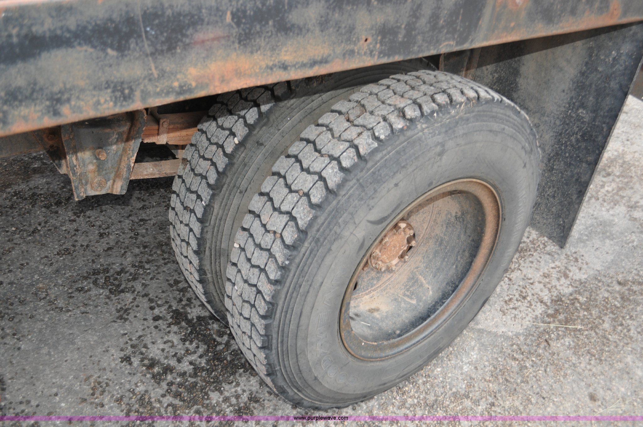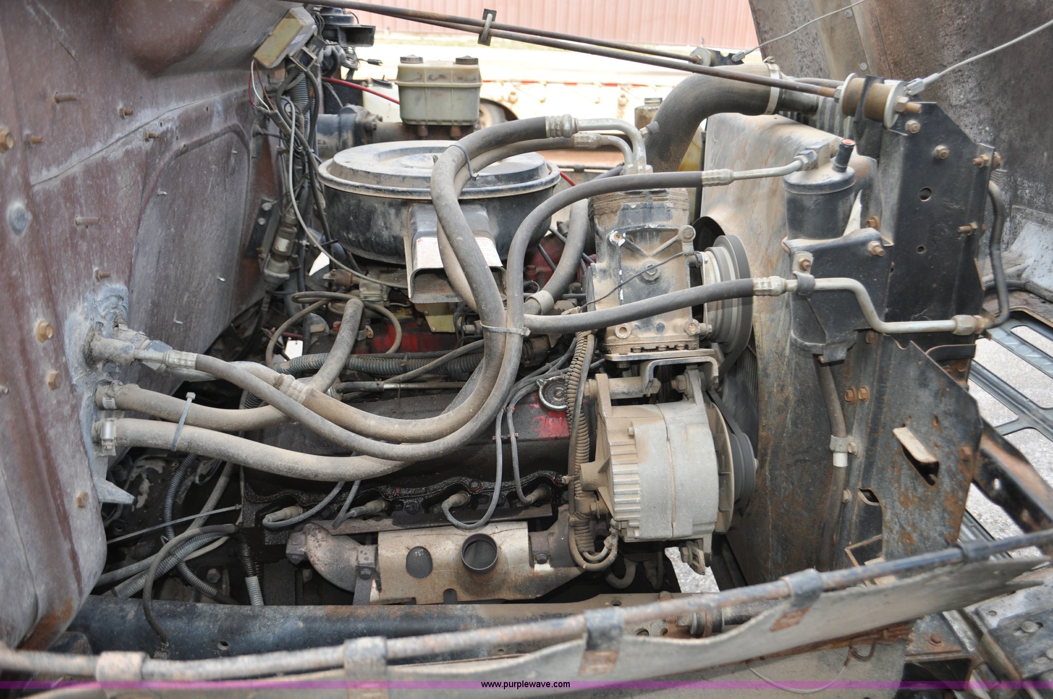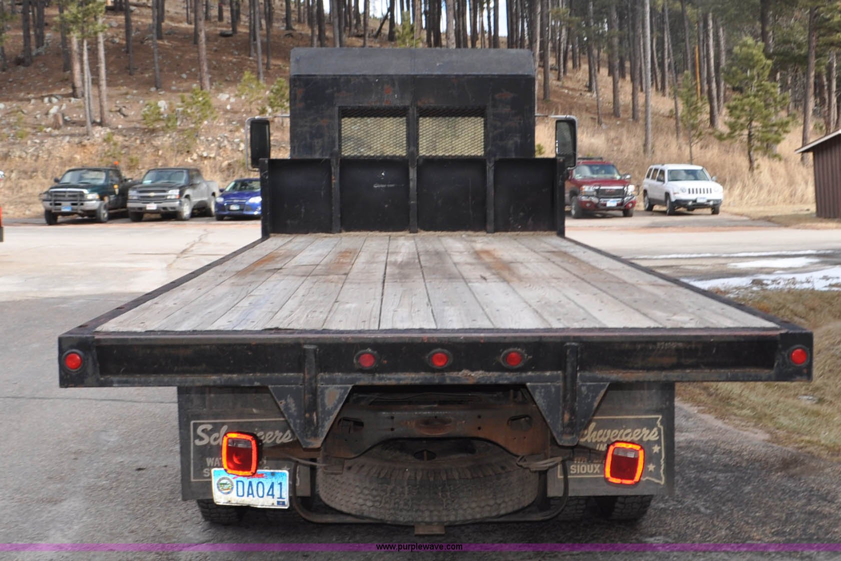 Purple Wave is selling a used Flat Bed Truck in South Dakota. This item is a 1984 International S1700 flatbed truck with the following: 53,599 miles on odometer, 392 C.I.D. eight cylinder gas engine, Five speed manual transmission, Two speed rear end, AC and heat, Manual windows and locks, Vinyl interior, 20' flatbed, Headache rack, Wood floor, Stake pockets, Fold away access steps, 9.00-20 tires, Asset# 0247278, Unit# DA041