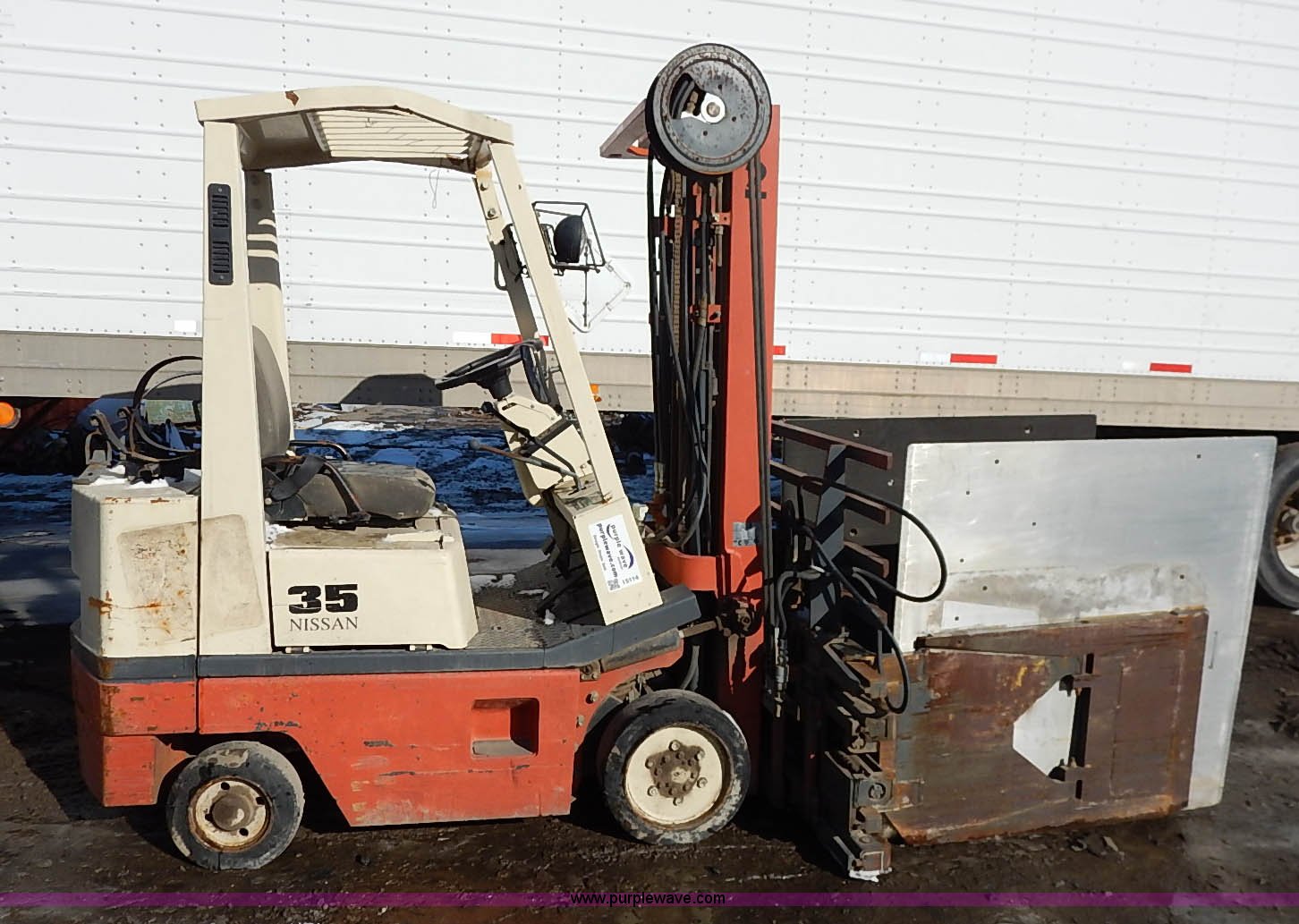 This Nissan 35 forklift will sell to the highest bidder regardless of price.