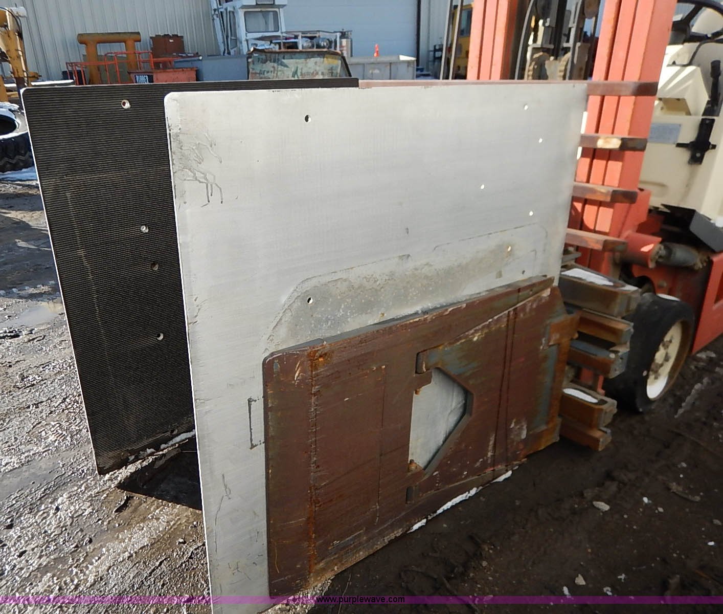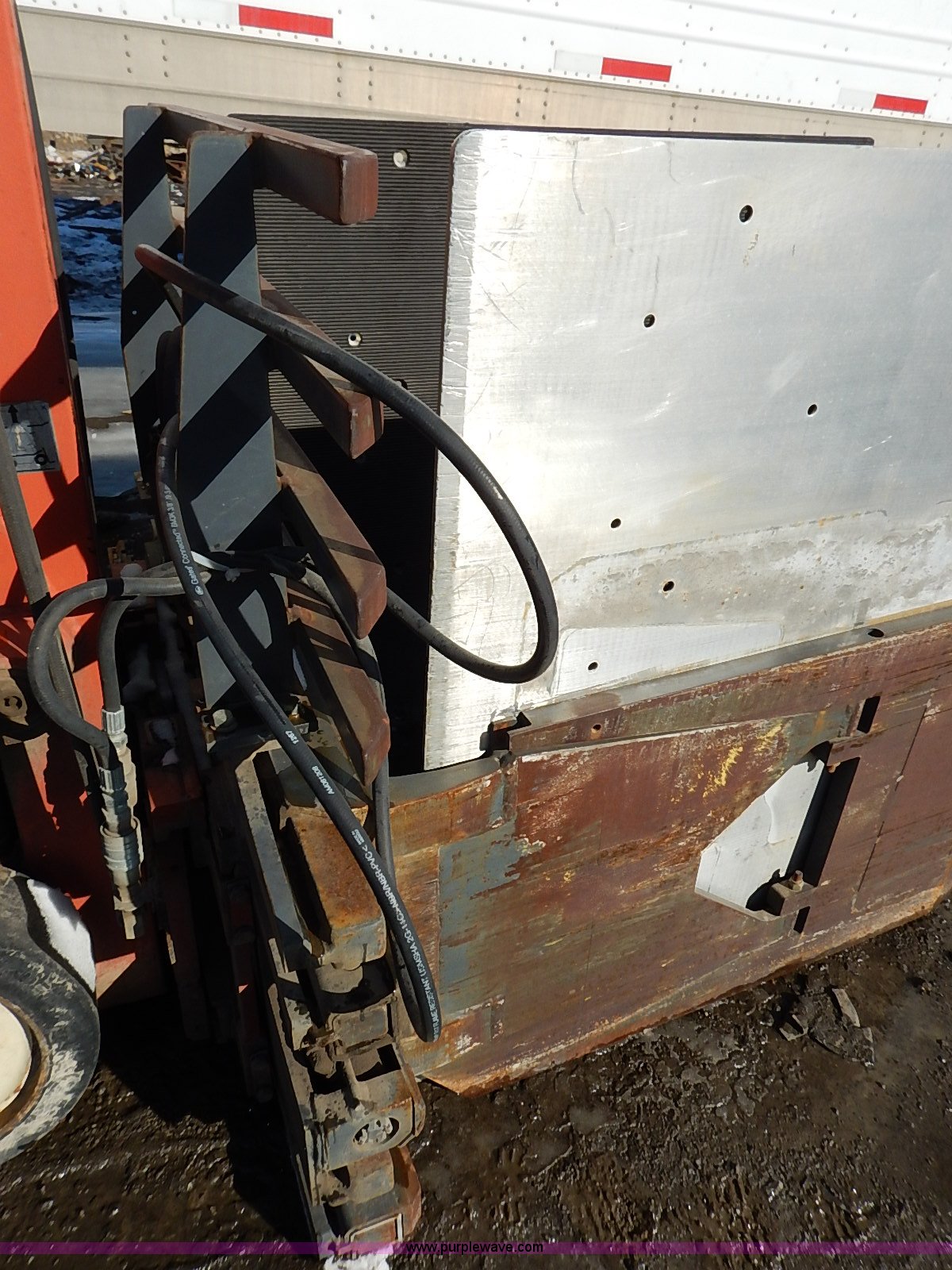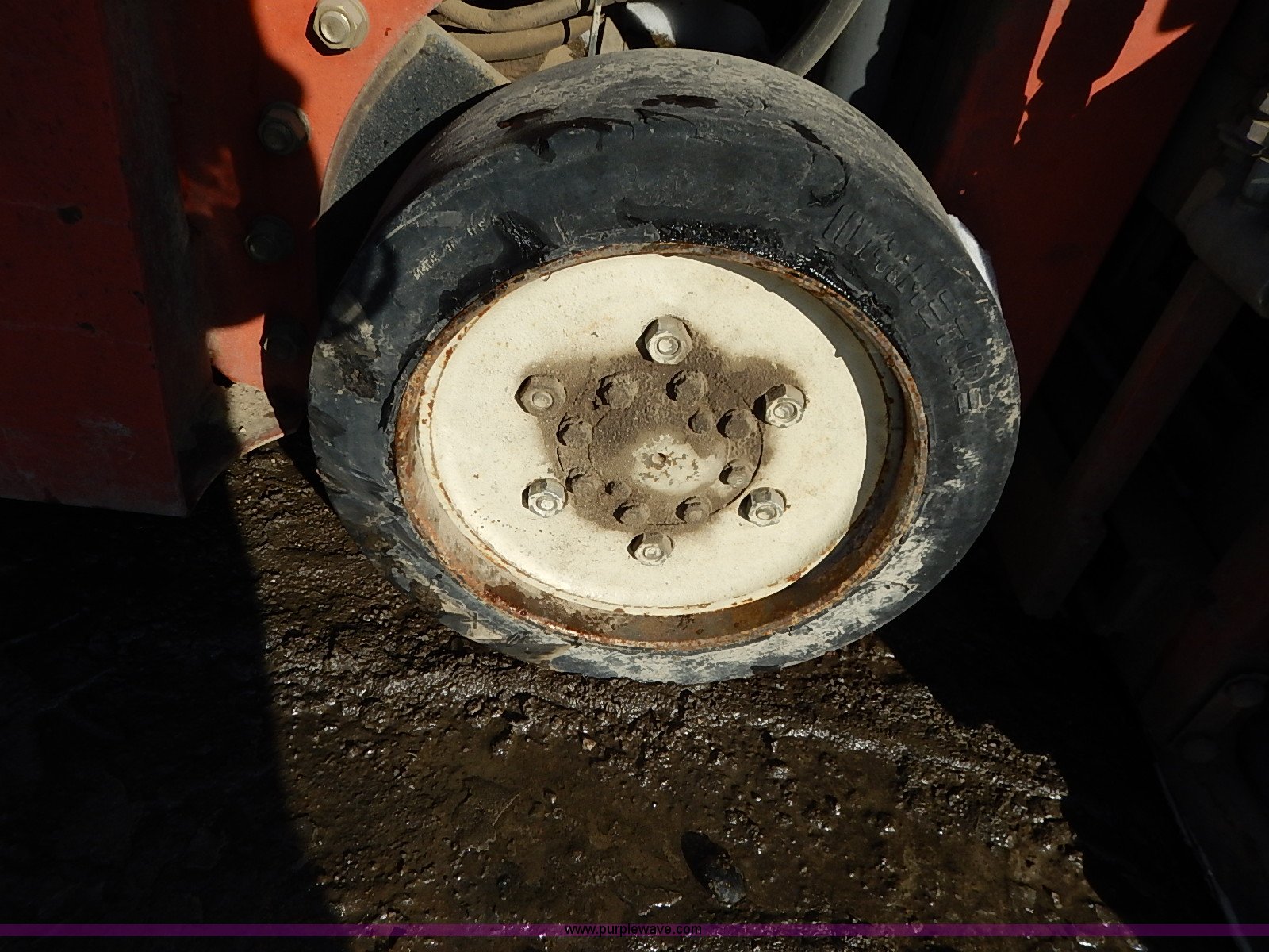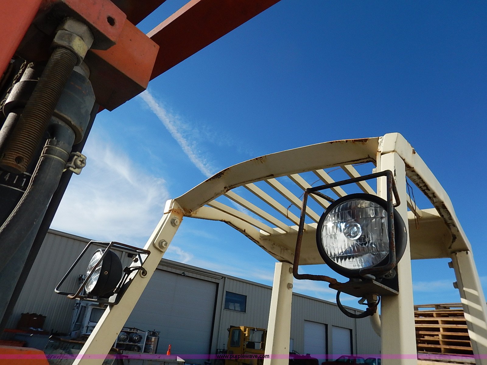 Purple Wave is selling a used Strt. Mast Rough Terr. Forklift in Kansas. This item is a Nissan 35 forklift with the following: 7,754 hours on meter, Model CPH01A18V, Type XXLP, Propane engine, Hydrostatic transmission, 3,200 lbs maximum lift capacity, 187" maximum lift height, Bale clamp, Work lights, 18 x 8 x 12 1/8 front tires, 14 x 4 1/2 x 8 rear tires, 6,685 lbs. base operating weight