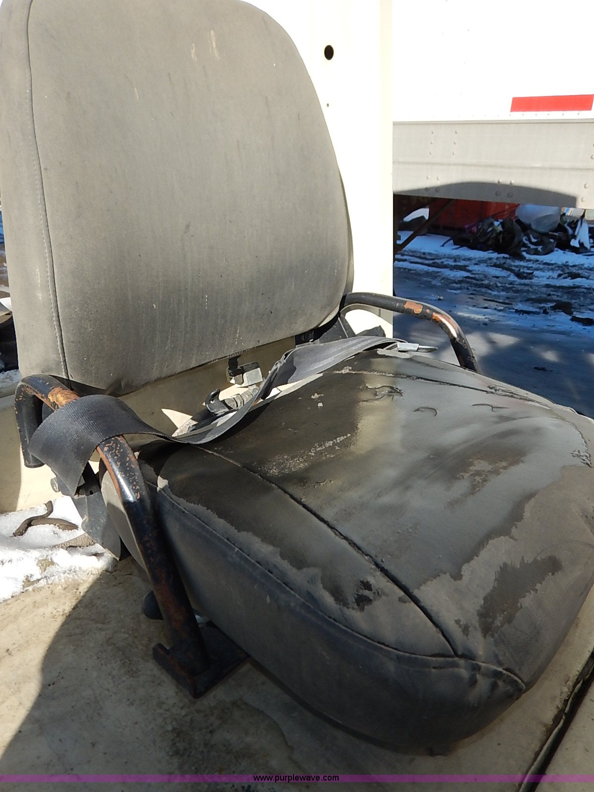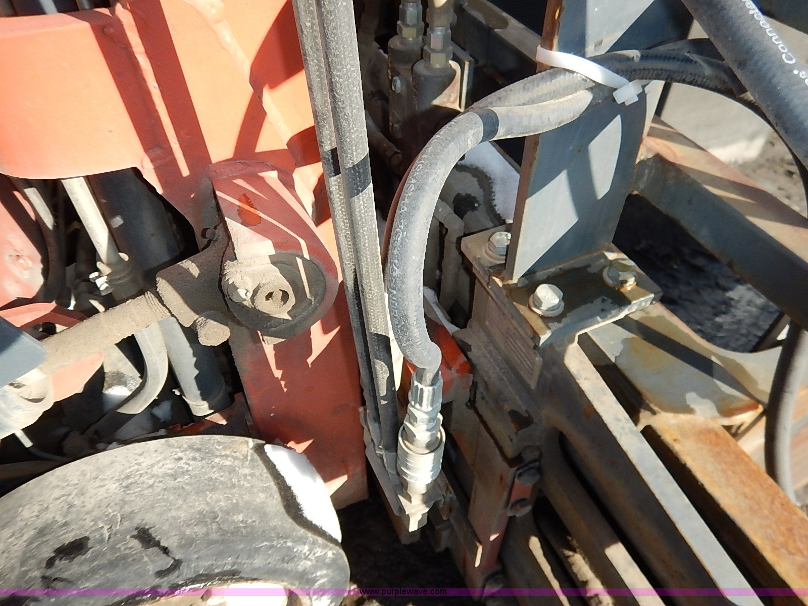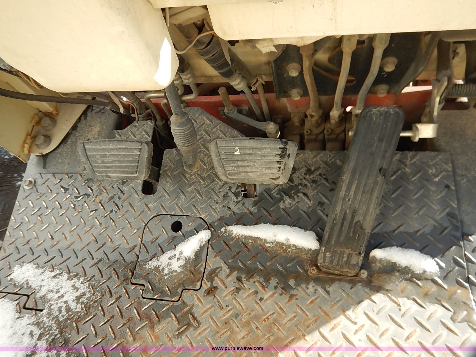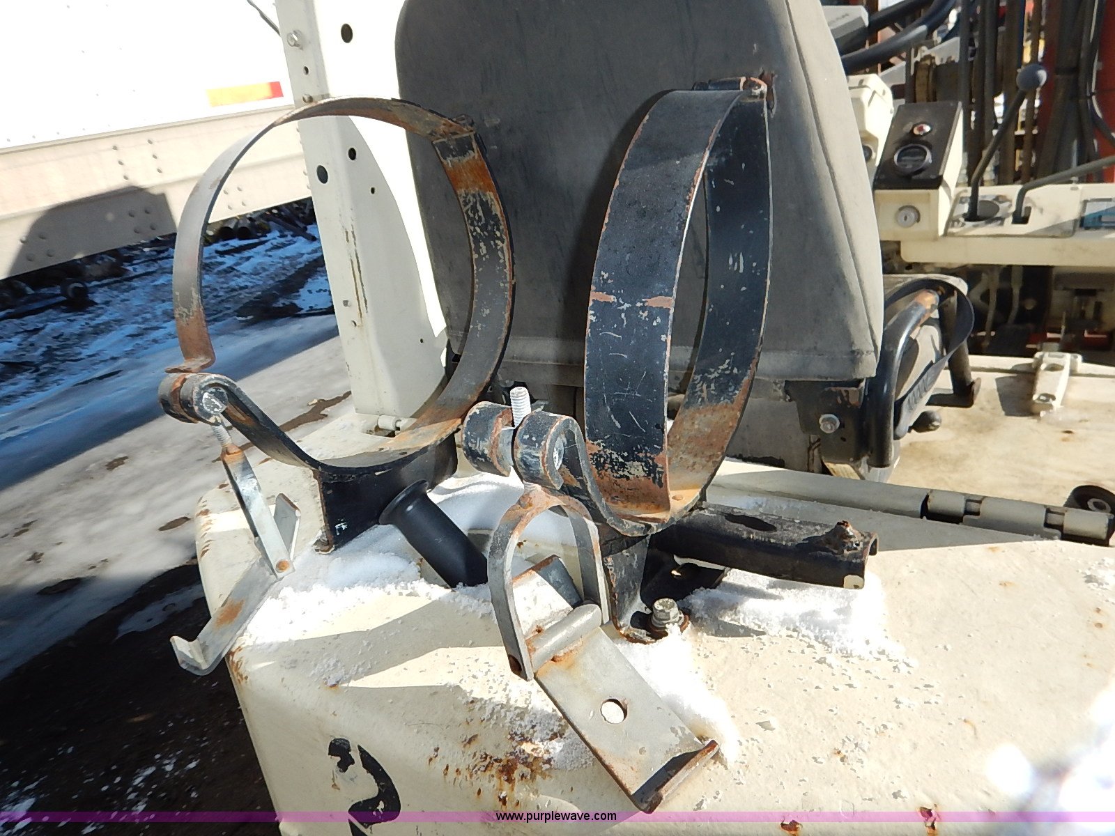 Purple Wave is selling a used Strt. Mast Rough Terr. Forklift in Kansas. This item is a Nissan 35 forklift with the following: 7,754 hours on meter, Model CPH01A18V, Type XXLP, Propane engine, Hydrostatic transmission, 3,200 lbs maximum lift capacity, 187" maximum lift height, Bale clamp, Work lights, 18 x 8 x 12 1/8 front tires, 14 x 4 1/2 x 8 rear tires, 6,685 lbs. base operating weight