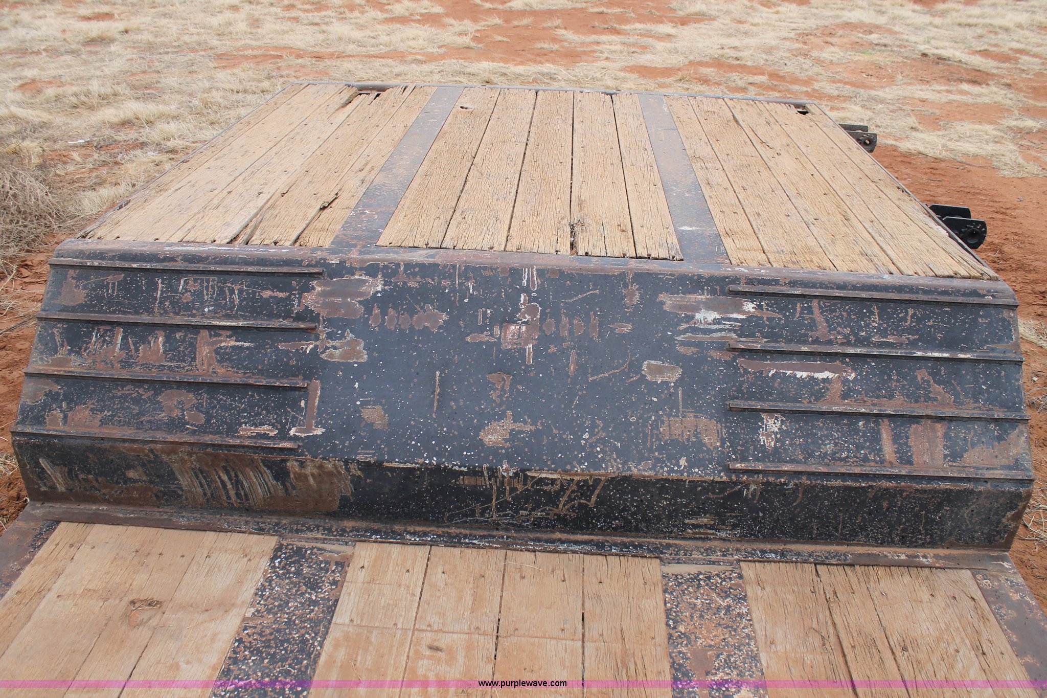 Purple Wave is selling a used Equip. Trailer in Texas. This item is a 2000 Trail King TK60HG-482 lowboy trailer with the following: 45'L x 102"W, 7.5'L neck deck, 29'L main deck, 7.5'L rear deck, Wood decking, Hydraulic detach, Strap ratchets on neck and rear decks, Seven 30" pull out extension per side, Ramps, 255/70R22.5 tires, GVWR 78,560 lbs, GAWR 20,280 lbs, 60,000 lbs load rating, Front bracket will be removed prior to auction
