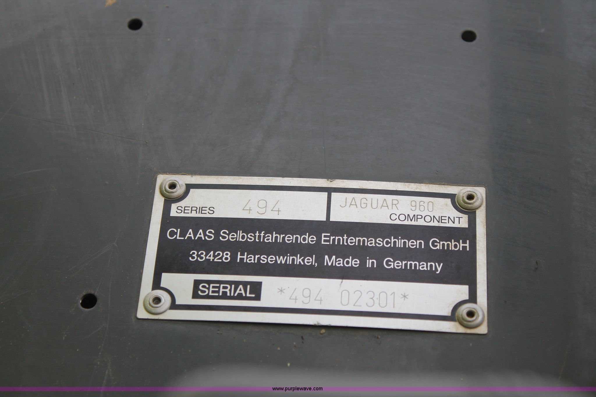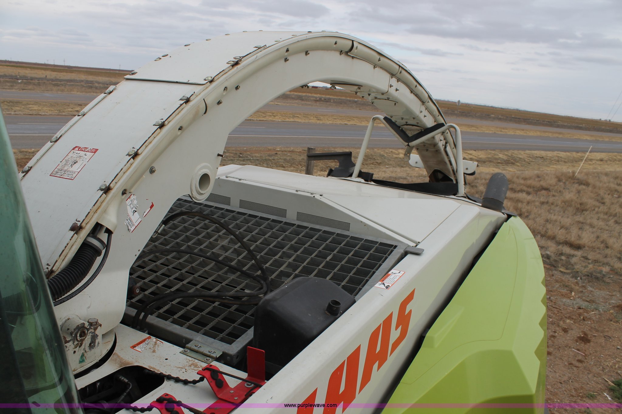 Purple Wave is selling a used Forage Harvester in Texas. This item is a 2011 Claas 960 forage harvester with the following: 3,062 engine hours on meter, 2,318 cutting hours on meter, Mercedes Benz Tier 3 engine, 653 HP, Hydrostatic transmission, Comfort control center, AC, AM/FM, Instructor's seat, Kernel processor, Remote header control, Front and rear work lights, Color CEBIS monitor, 317 gallon fuel tank, 710/70R38 front tires, 600/65R28 rear tires, Serial 49402301