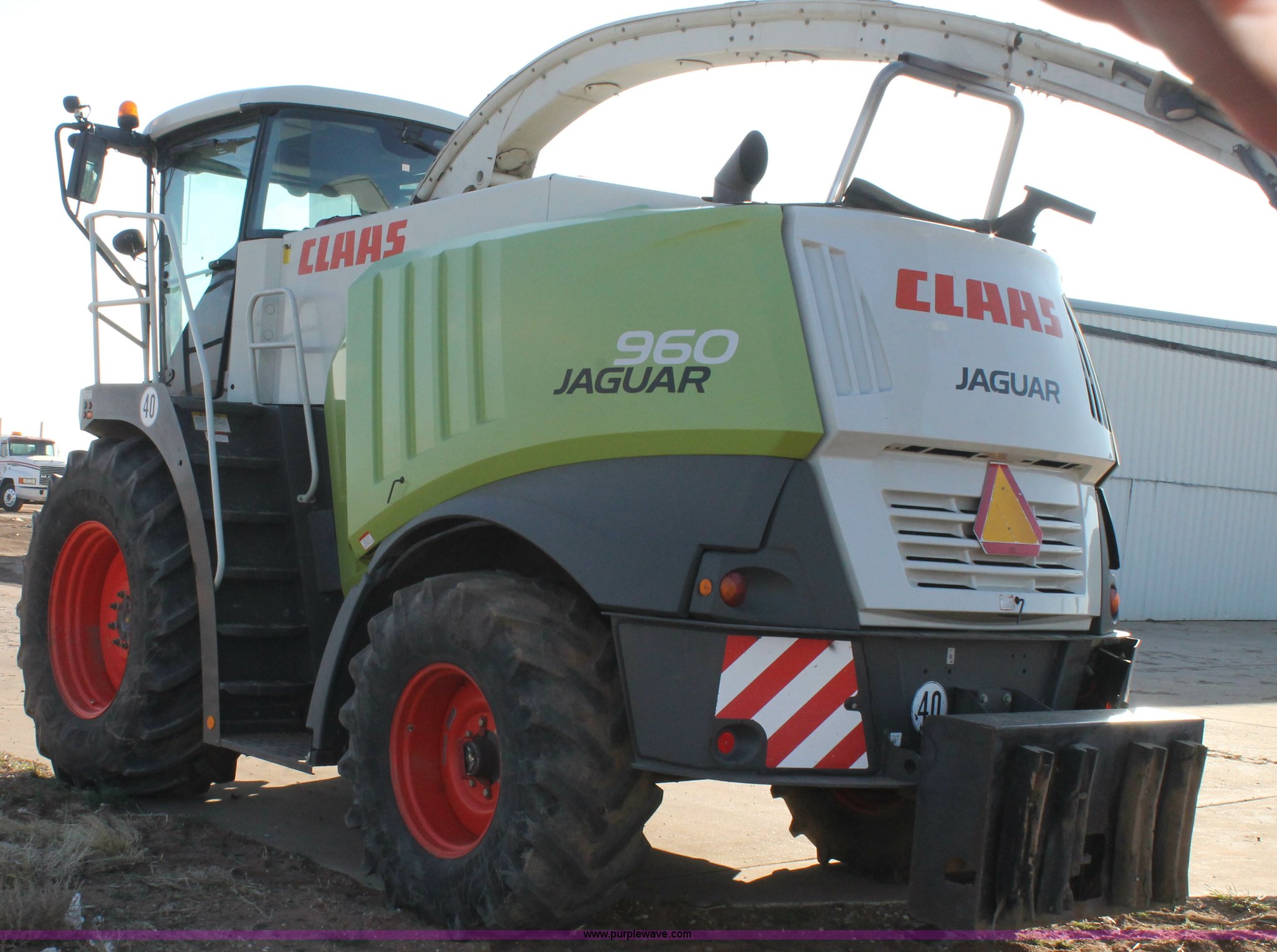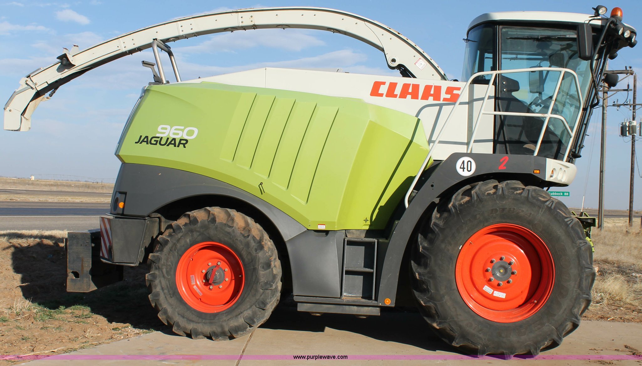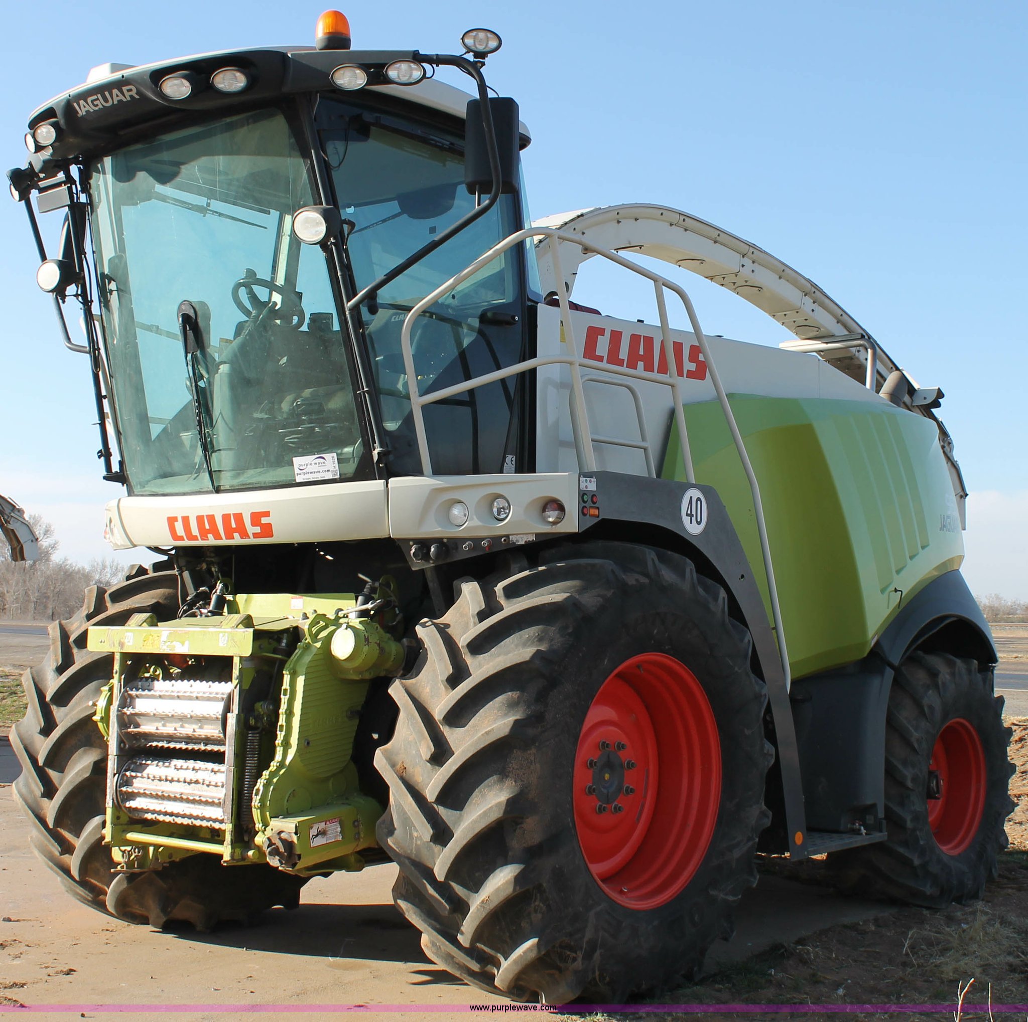 Purple Wave is selling a used Forage Harvester in Texas. This item is a 2011 Claas 960 forage harvester with the following: 3,066 engine hours on meter, 2,289 cutting hours on meter, Mercedes Benz Tier 3 engine, 653 HP, Hydrostatic transmission, Comfort control center, AC, AM/FM, Instructor's seat, Kernel processor, Remote header control, Front and rear work lights, Color CEBIS monitor, 317 gallon fuel tank, 710/70R38 front tires, 600/65R28 rear tires, Serial 49402207