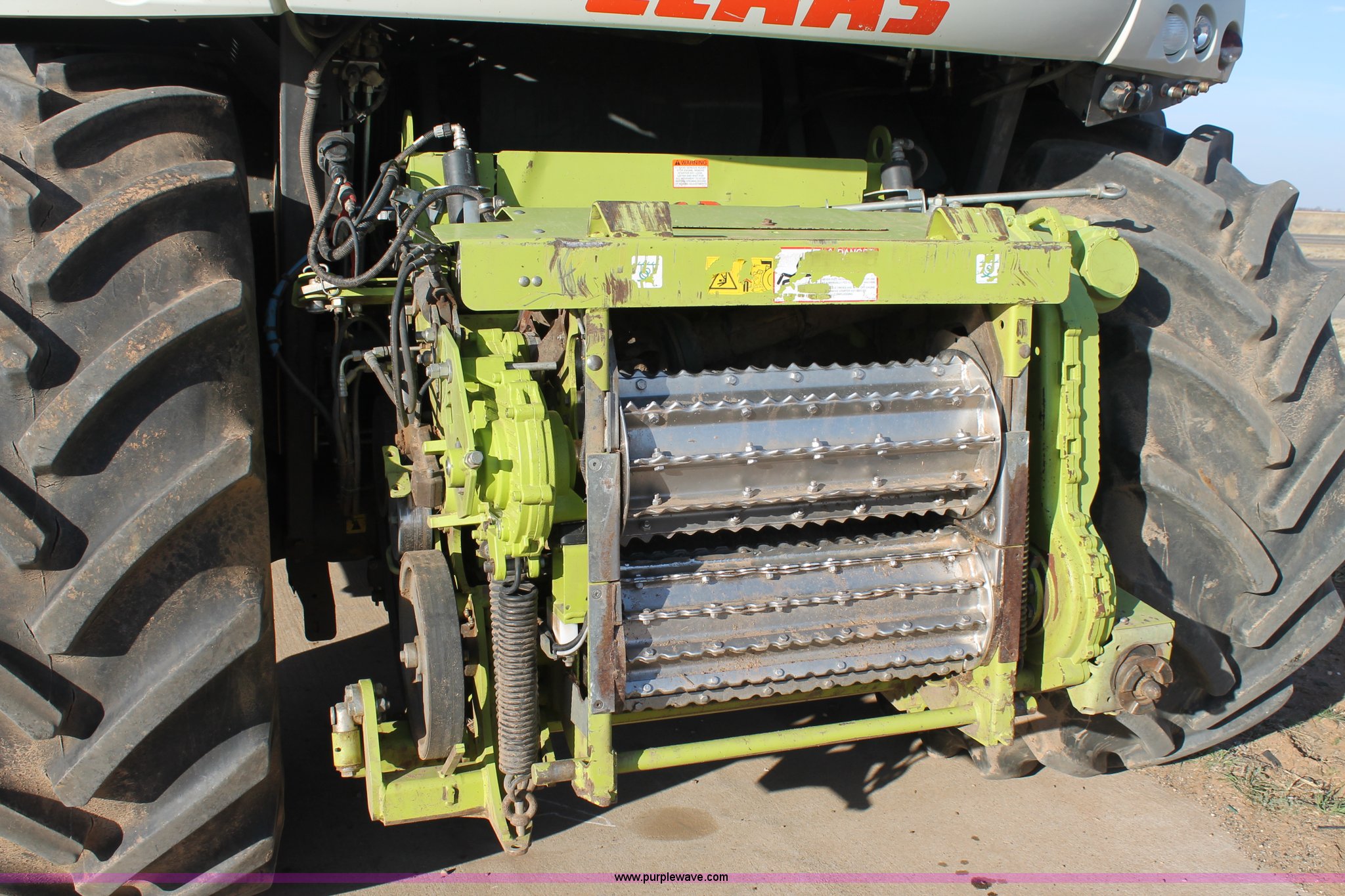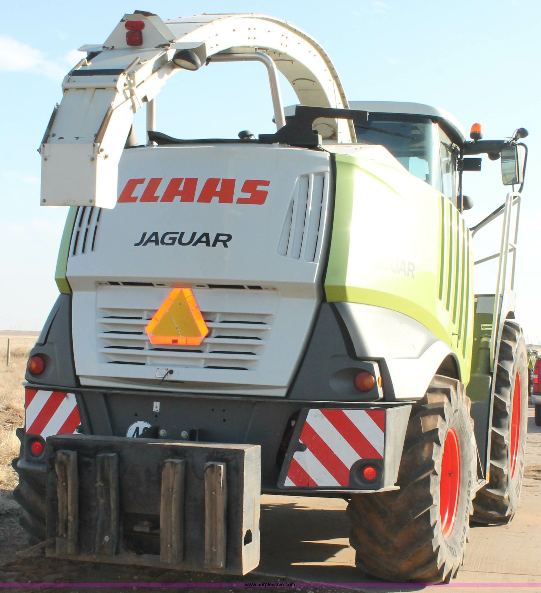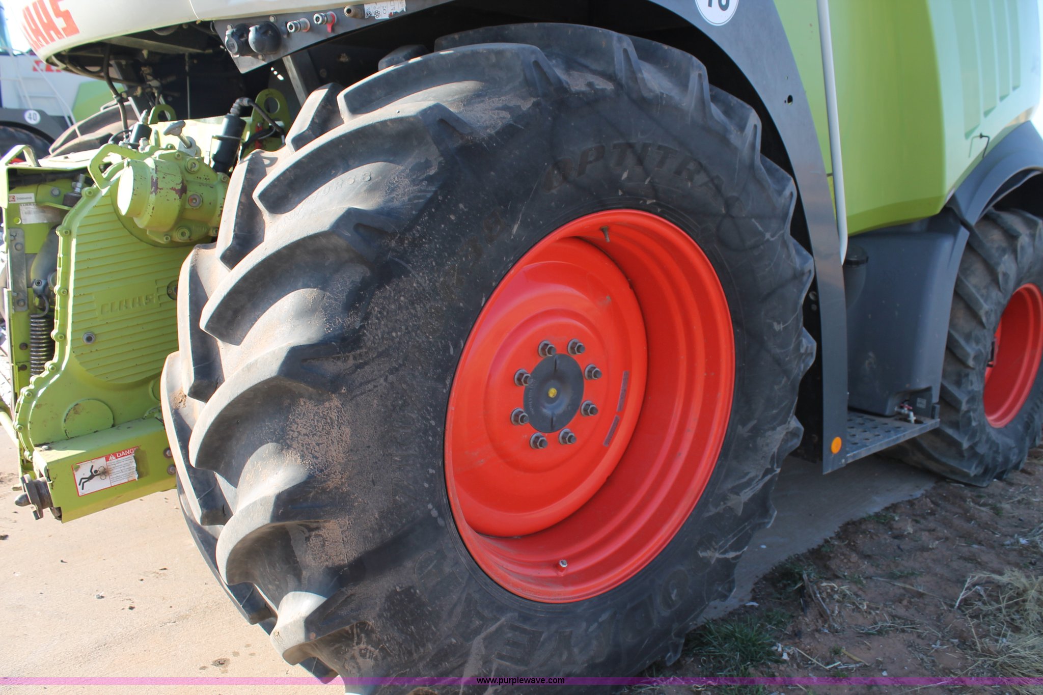 Purple Wave is selling a used Forage Harvester in Texas. This item is a 2011 Claas 960 forage harvester with the following: 3,066 engine hours on meter, 2,289 cutting hours on meter, Mercedes Benz Tier 3 engine, 653 HP, Hydrostatic transmission, Comfort control center, AC, AM/FM, Instructor's seat, Kernel processor, Remote header control, Front and rear work lights, Color CEBIS monitor, 317 gallon fuel tank, 710/70R38 front tires, 600/65R28 rear tires, Serial 49402207