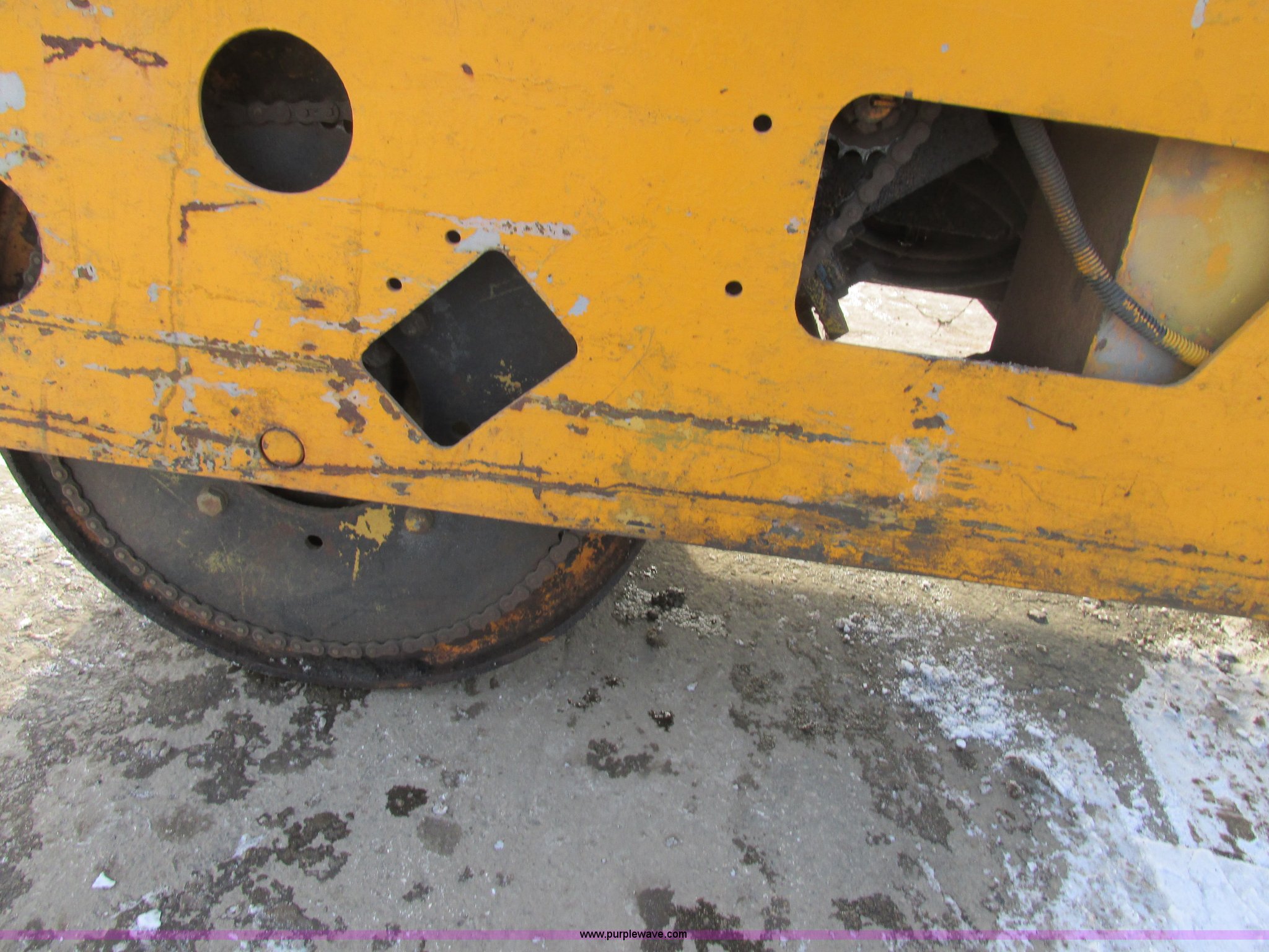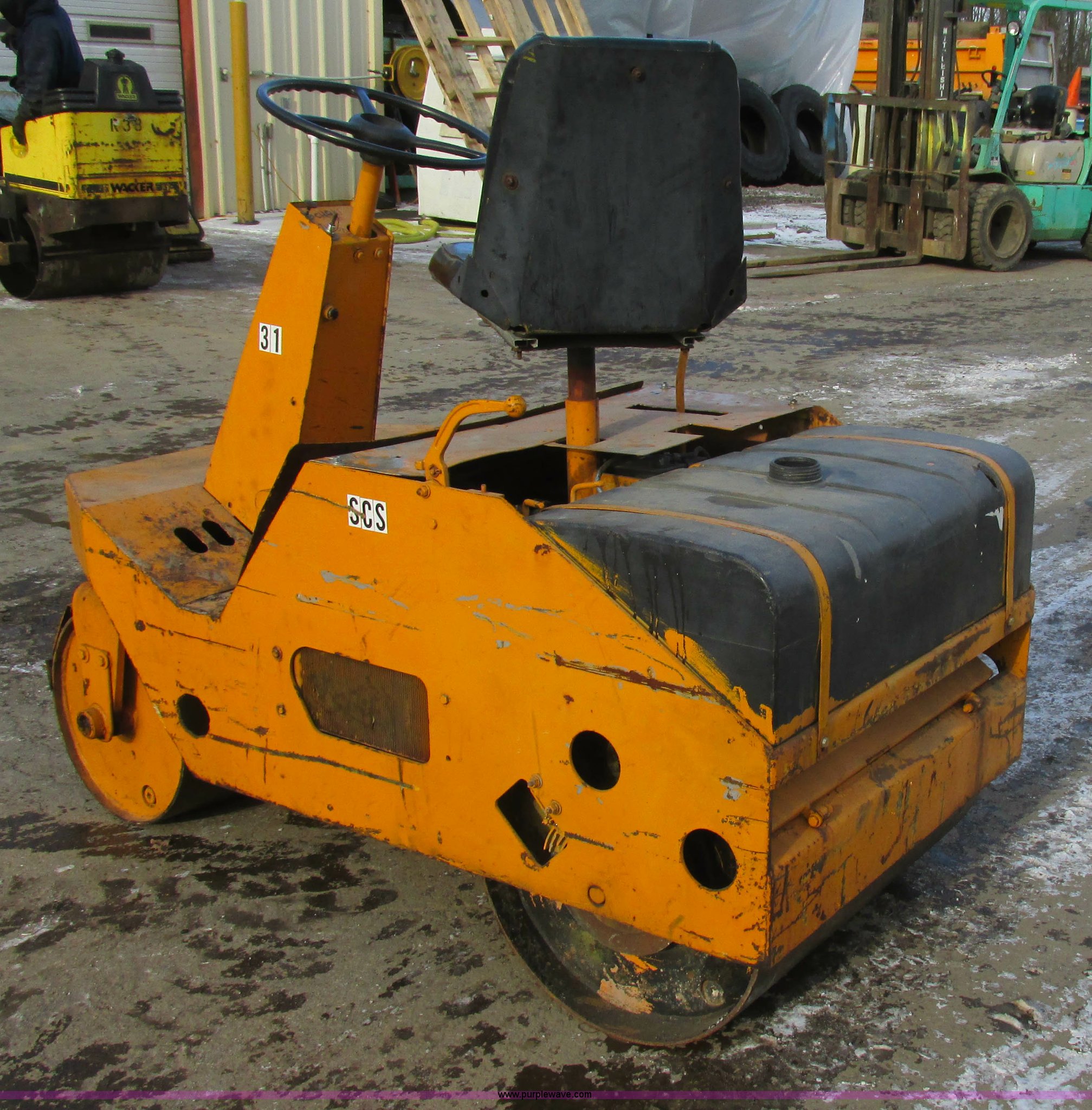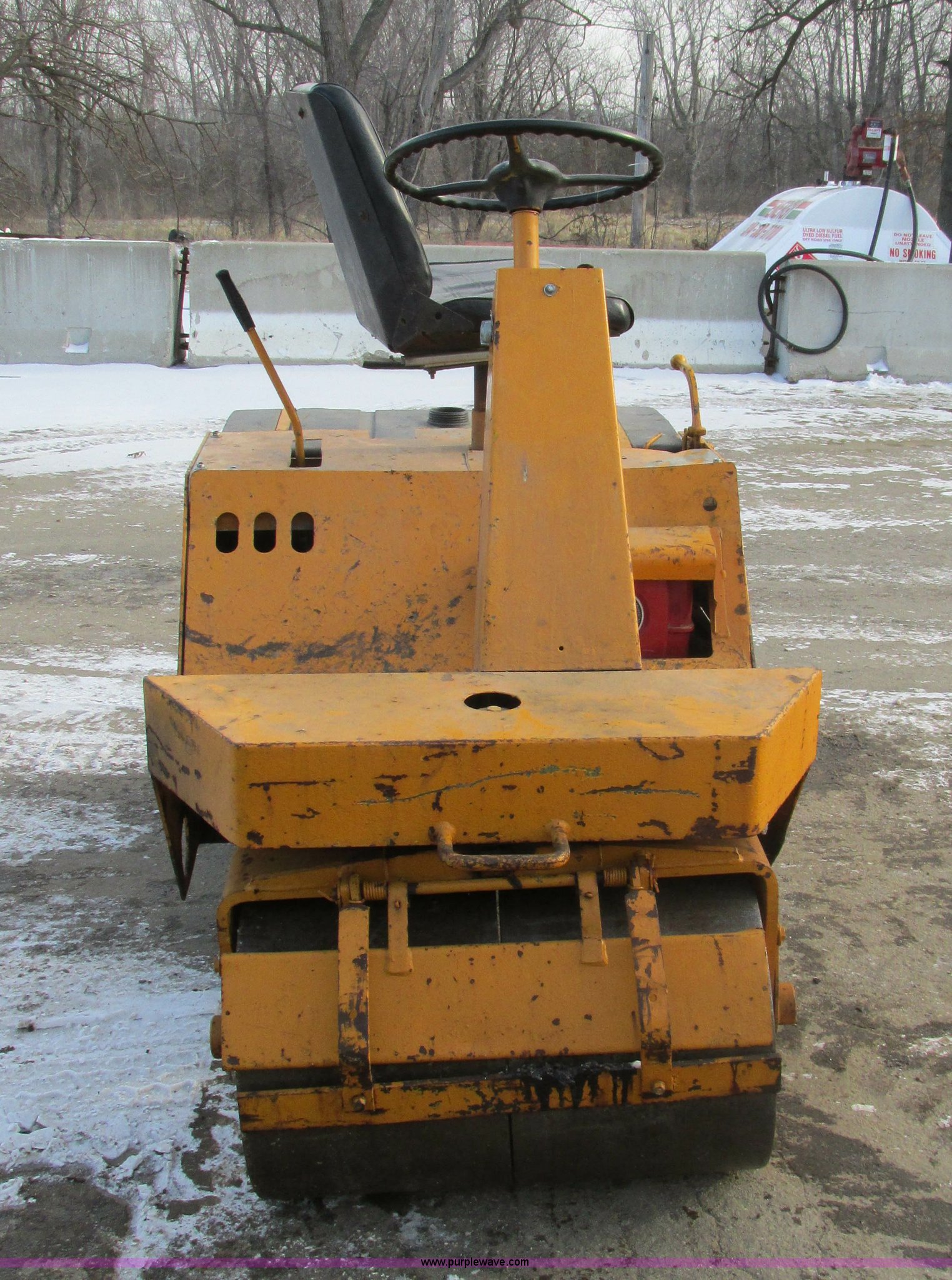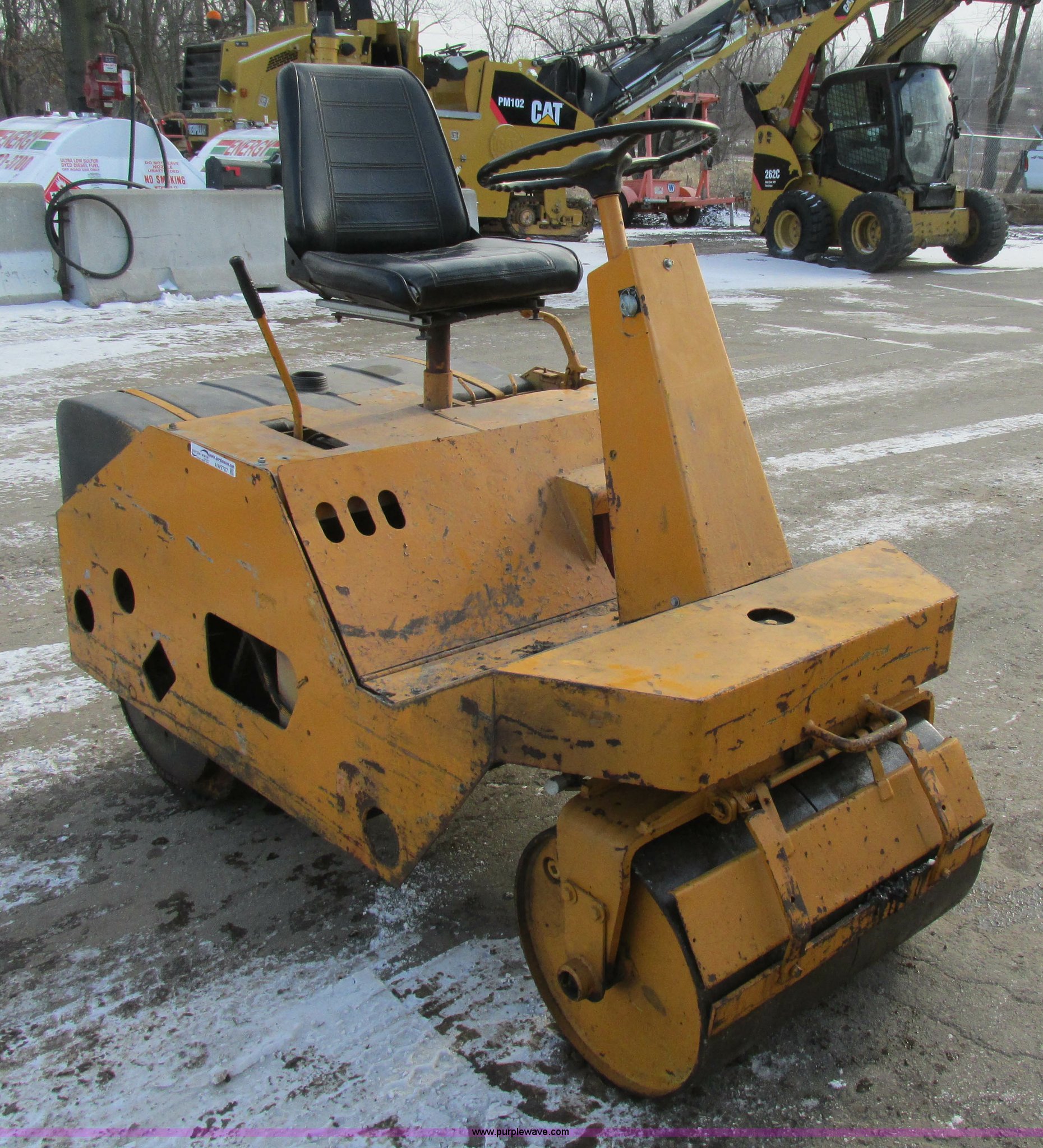 Purple Wave is selling a used Double Drum Roller Compactor in Missouri. This item is a Double drum roller with the following: Kohler 14 HP gas engine, 33"W drums, Hydrostatic chain drive, Drum cleaners, Rear water tank, Small hole near top