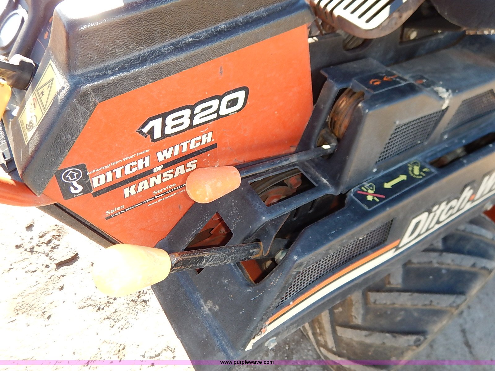 Purple Wave is selling a used Trencher or Rock Saw in Kansas. This item is a Ditch Witch 1820 walk-behind trencher with the following: 889 hours on meter, Briggs & Stratton gas engine, 18 HP, 4' maximum digging depth, 3"W trench capacity, 16 x 6.50-8 front tires, 23 x 10.50-12 rear tires