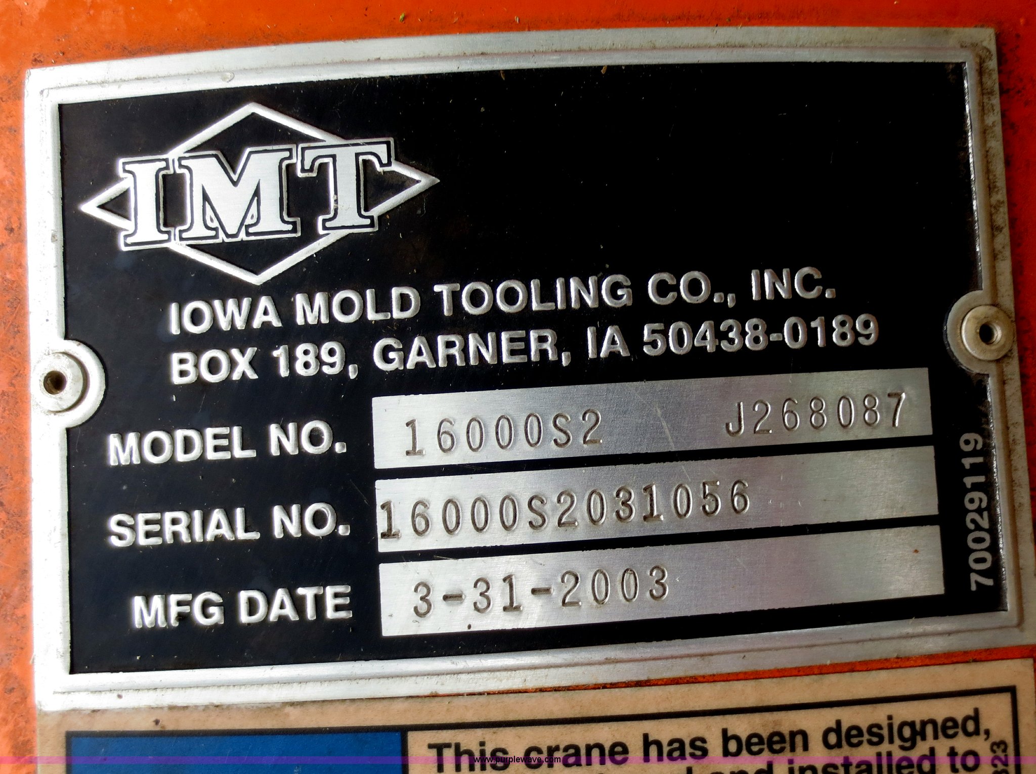 This IMT 16000 Series II truck mounted crane will sell to the highest bidder regardless of price.