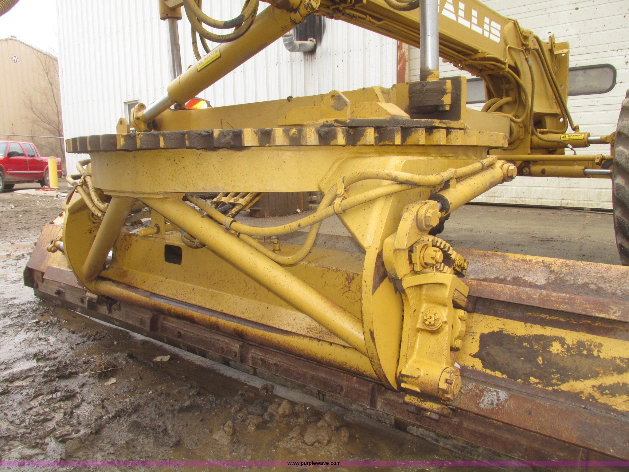 Purple Wave is selling a used Motor Grader in Nebraska. This item is a 1984 Fiat-Allis FG85 articulated motor grader with the following: Fiat-Allis six cylinder turbo diesel engine, Torque-converter drive transmission, 4F-4R gears, EROPS, Heat, High cab profile, Front and rear work lights, Front and rear wipers, Hazard lights, 14' moldboard, Tip control, Side shift, (4) blade control valves, Firestone 14.00-24 tires, Rear glass panel missing, Glass panel will be replaced prior to auciton, Serial 44Y102, Unit# G102