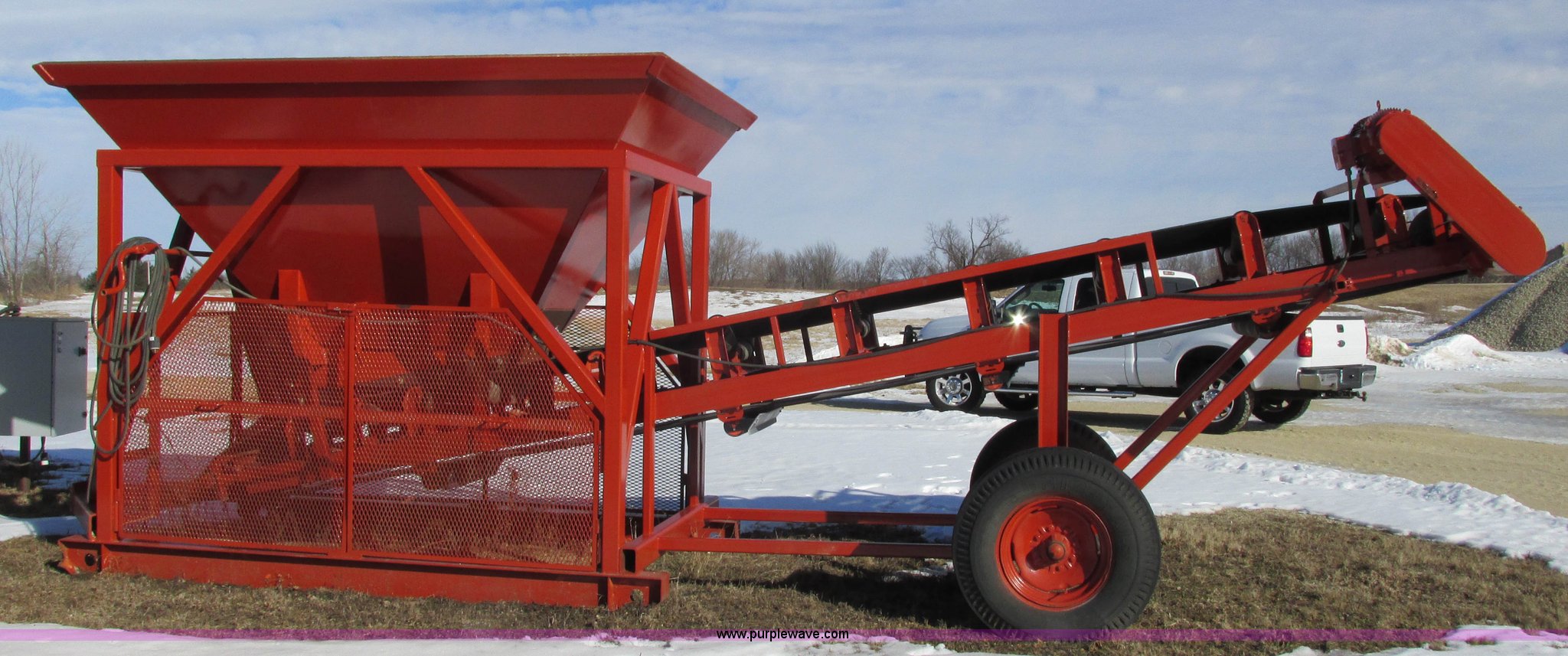 Purple Wave is selling a used Conveyor in Minnesota. This item is a Feeder/surge hopper with the following: 20'L x 29.5"W conveyor, Siemans electric motor, 15 HP, Rear clean out gate, 12' x 8' hopper, Switch gear, Pintle hitch, Unused