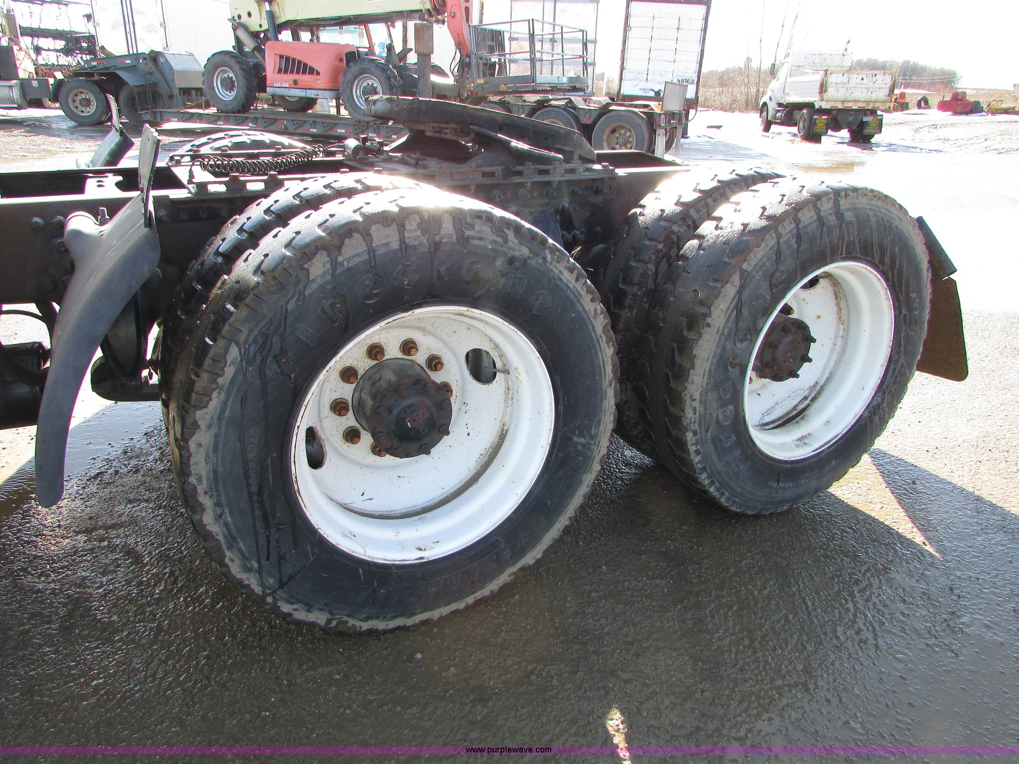 Purple Wave is selling a used Truck Tractor in Minnesota. This item is a 2004 Freightliner Columbia semi truck with the following: 436,144 actual miles, Detroit Diesel Series 60 14.0L L6 diesel engine, 435 HP, Eaton Fuller 10 speed manual transmission, Inter-axle differential lock, AC and heat, Tilt, Cruise, AM/FM/cassette, Passenger daylight door, Air suspension seat, Power windows, Air ride cab, Visor, Air slide fifth wheel, Dual 120 gallon fuel tanks, Quarter fenders, Wet kit, Two-line, Air suspension, Air brakes, Jake brake, Approx. 171" wheelbase, 11R24.5 tires, GVWR 52,000 lbs, FAWR 12,000 lbs, IAWR 20,000 lbs, RAWR 20,000 lbs, Passenger front bumper damage, Paint peeling, Passenger side fuel tank damage