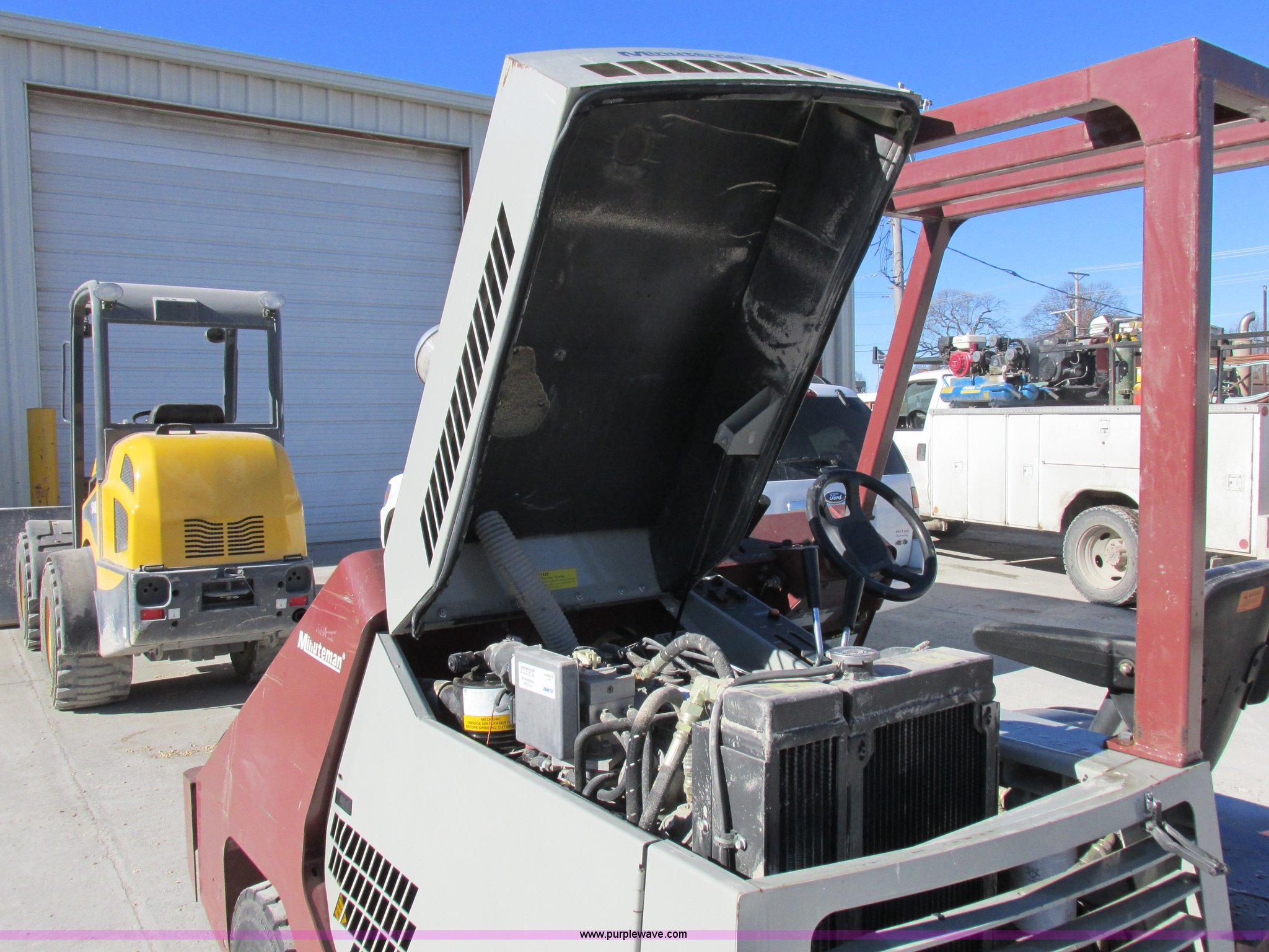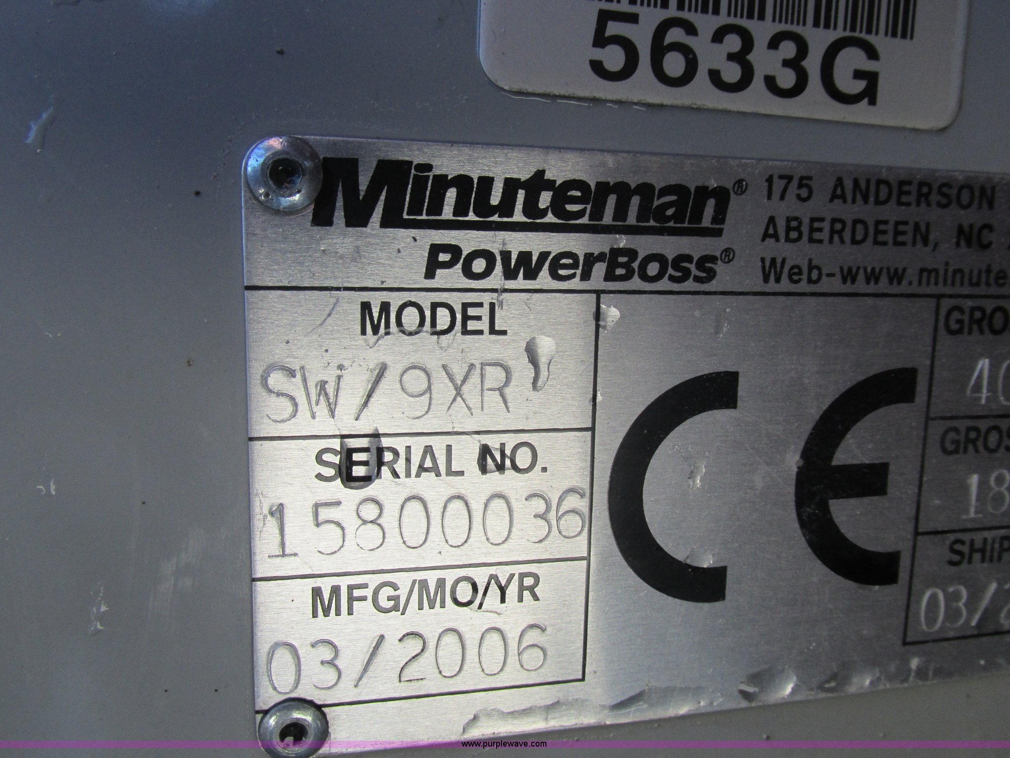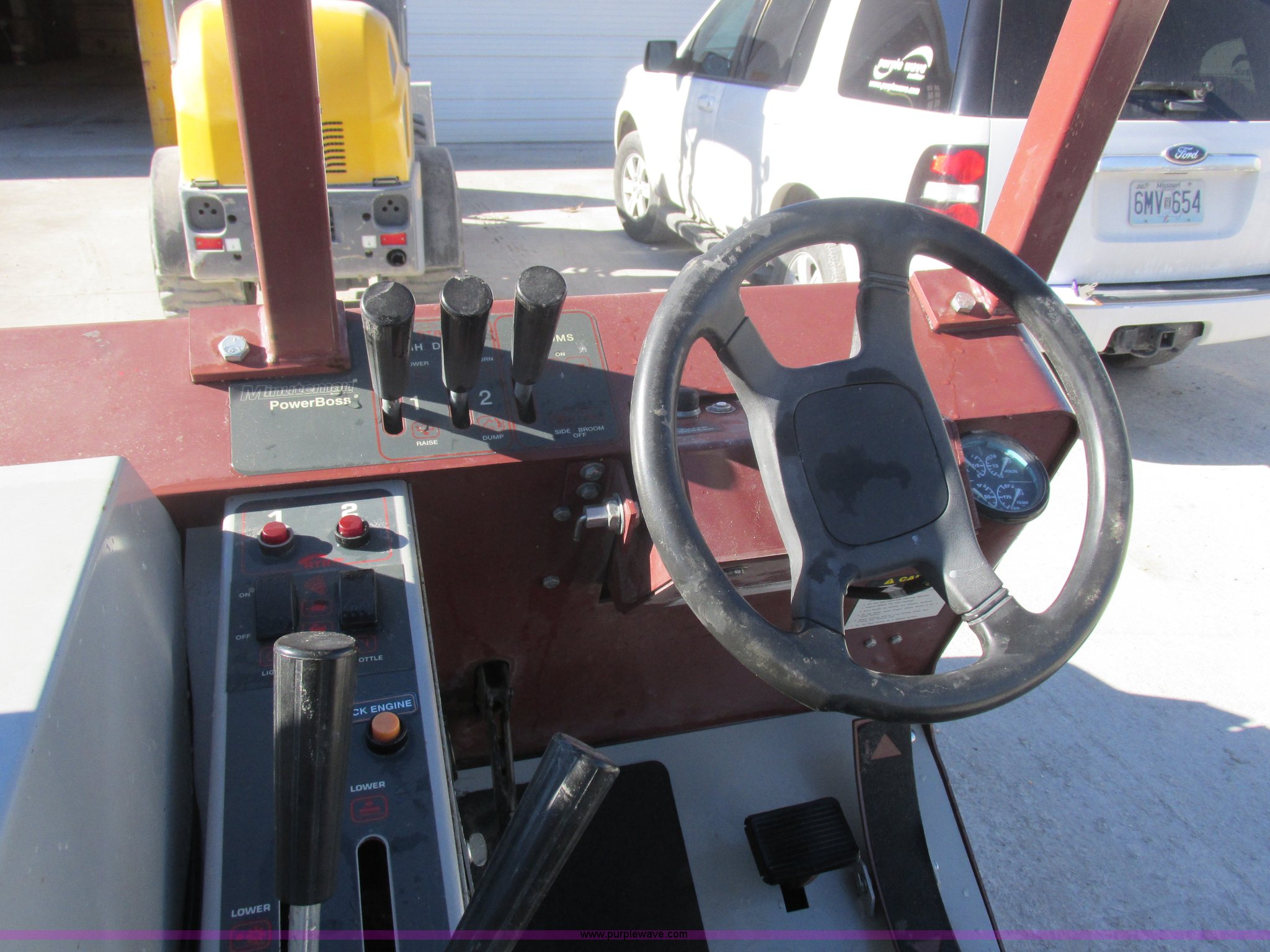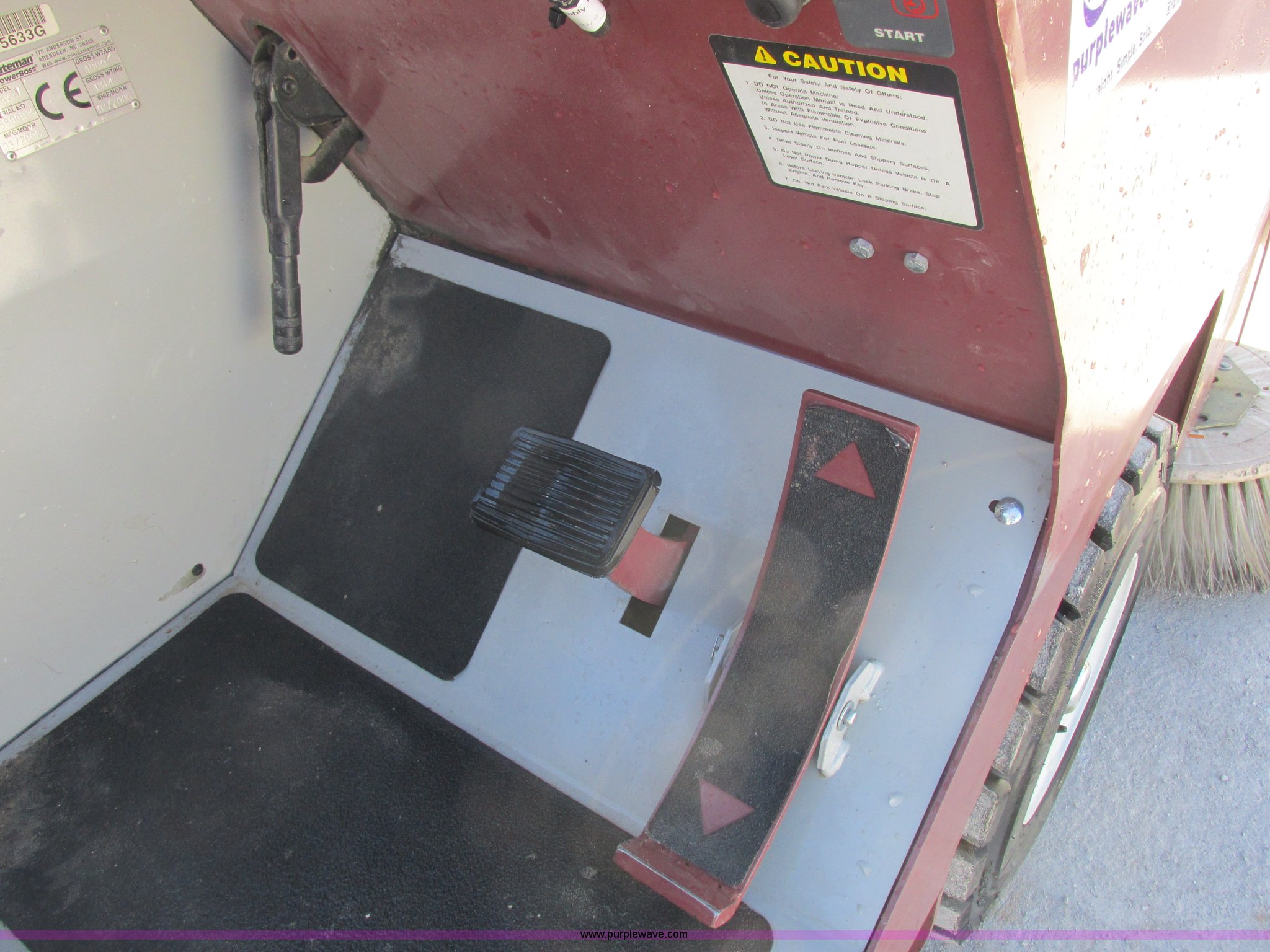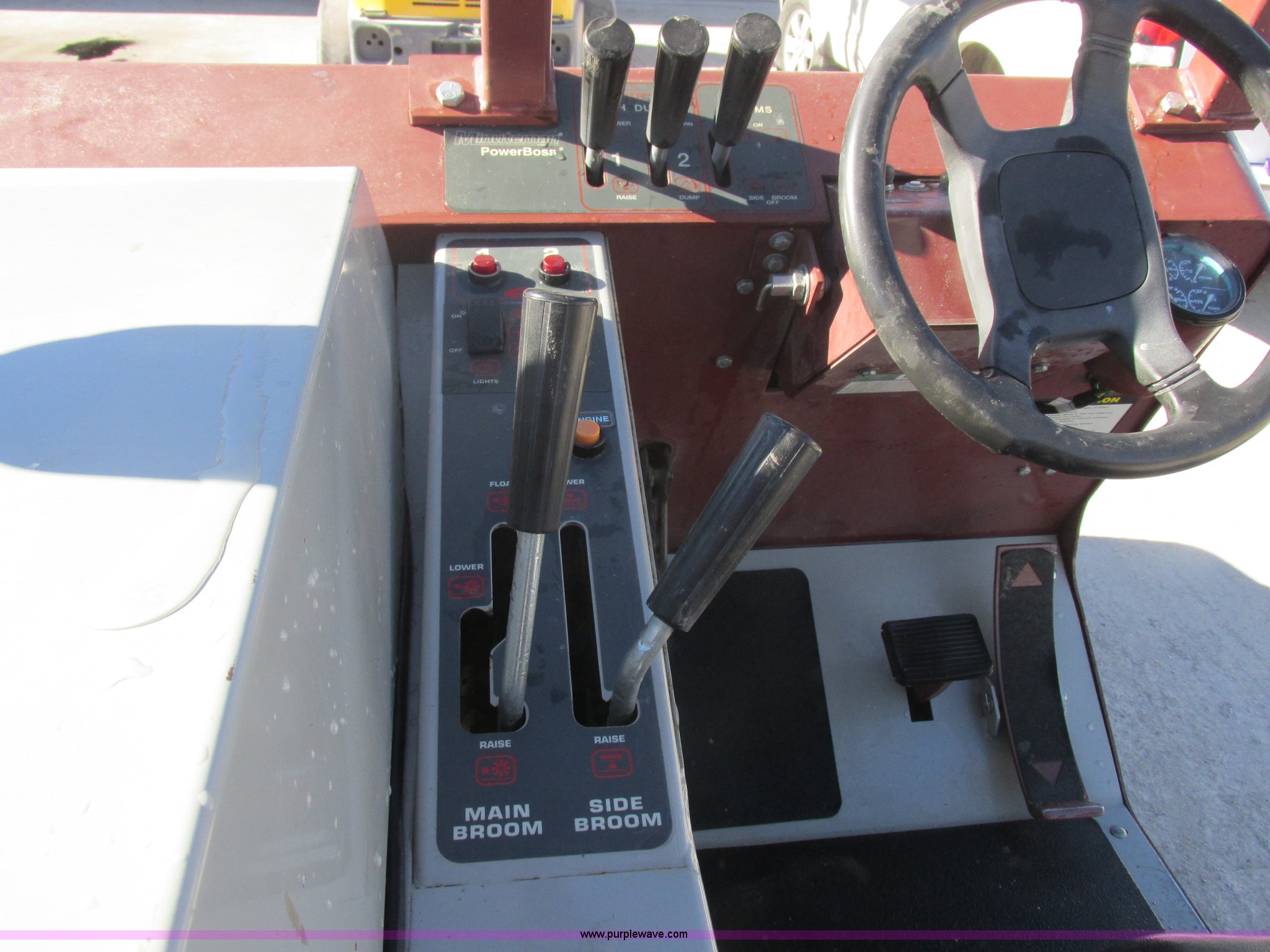 Purple Wave is selling a used Sweeper in Missouri. This item is a Minuteman PowerBoss Armadillo SW9XR sweeper with the following: 319 hours on meter, Four cylinder propane engine, Hydrostatic transmission, Variable speed, 1,500 lbs hopper capacity, 105"L x 60"W, 6.50-10 NHS tires, Serial 15800036