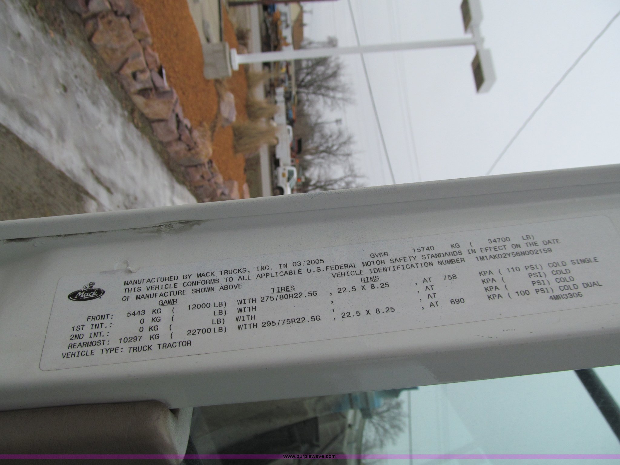 Purple Wave is selling a used Construction Dump Truck in Iowa. This item is a 2006 Mack CXN 612 Vision dump truck with the following: 249,186 miles on odometer, 13,495 hours on meter, Mack AC 12.0L turbo diesel engine, Meritor 10 speed manual transmission, AC and heat, Tilt, Cruise, AM/FM/cassette, Telescoping steering wheel, Power windows and mirrors, Air suspension seat, PTO, Trailer brake controller, Block heater, 14'L dump bed, Air operated end gate, Rollover tarp, Single ram four stage hoist, Single rear exhaust stack, Air suspension, Air brakes, 186" wheelbase, 11R22.5 tires, FAWR 12,000 lbs