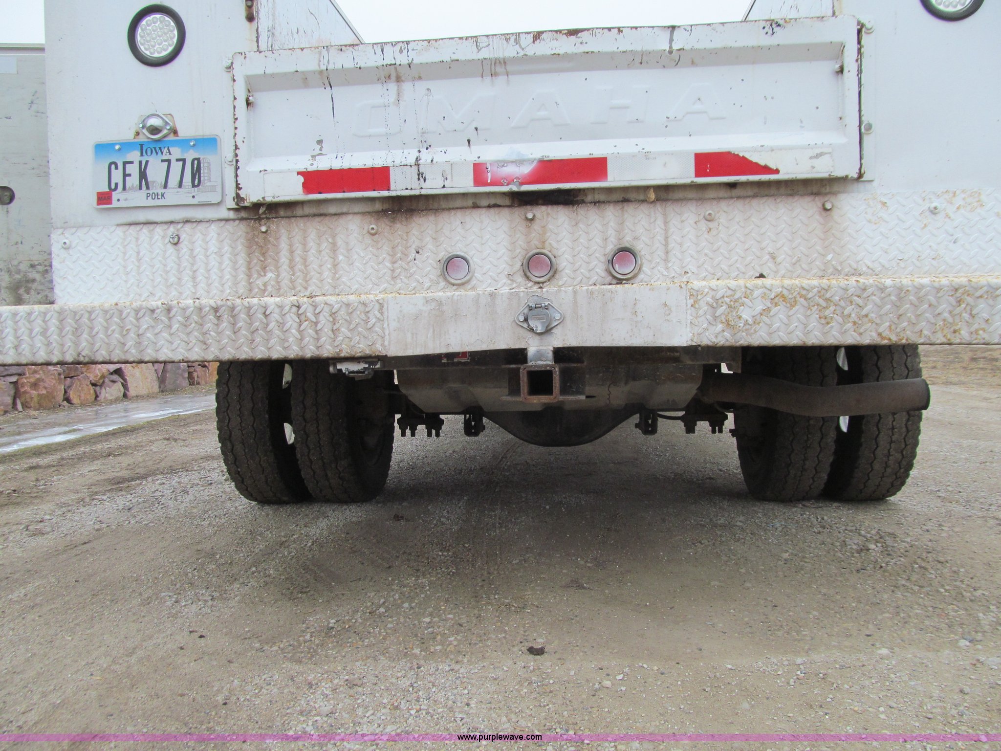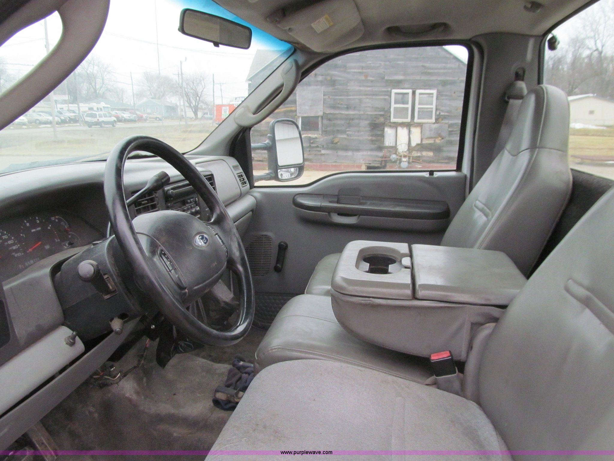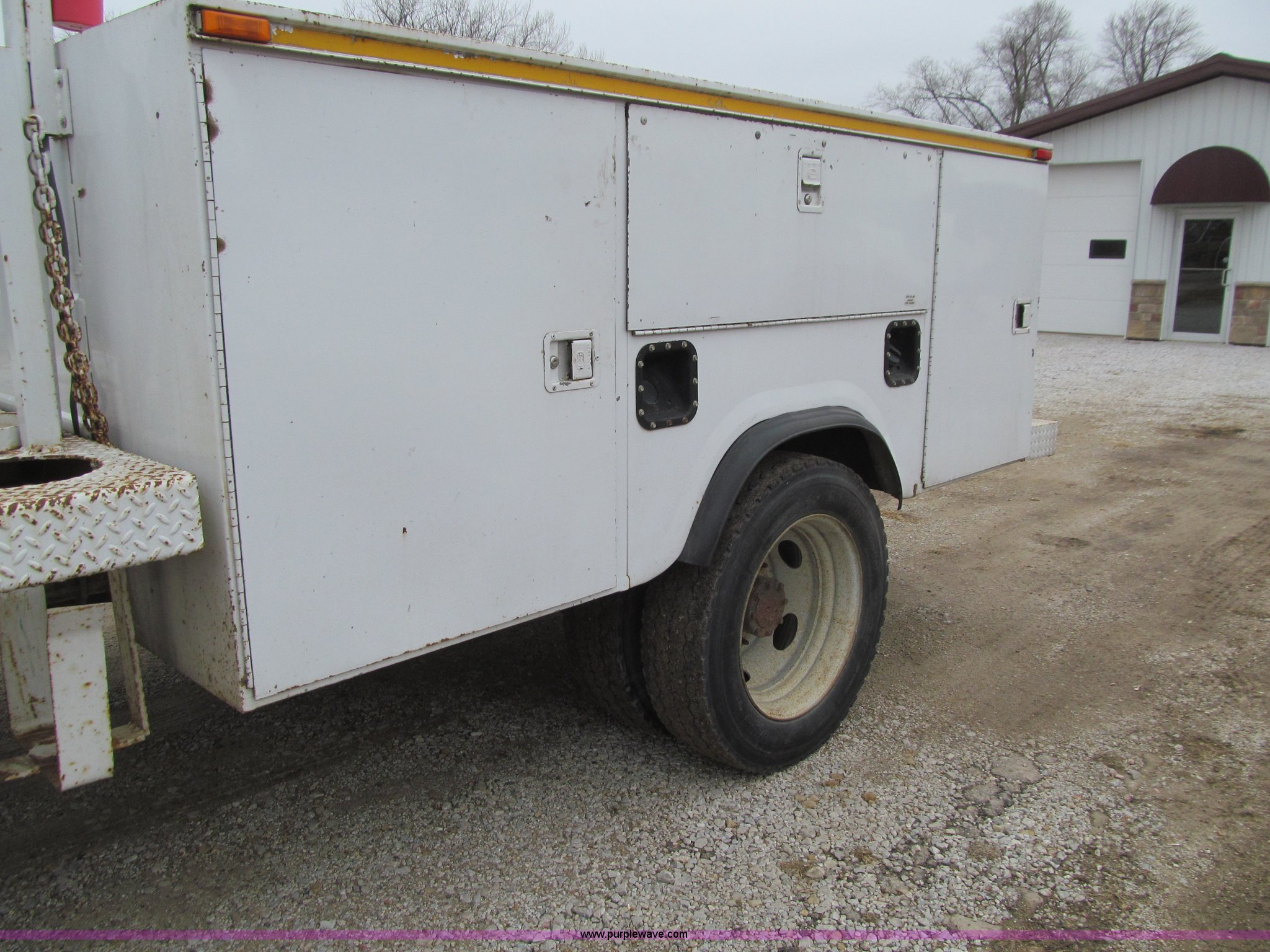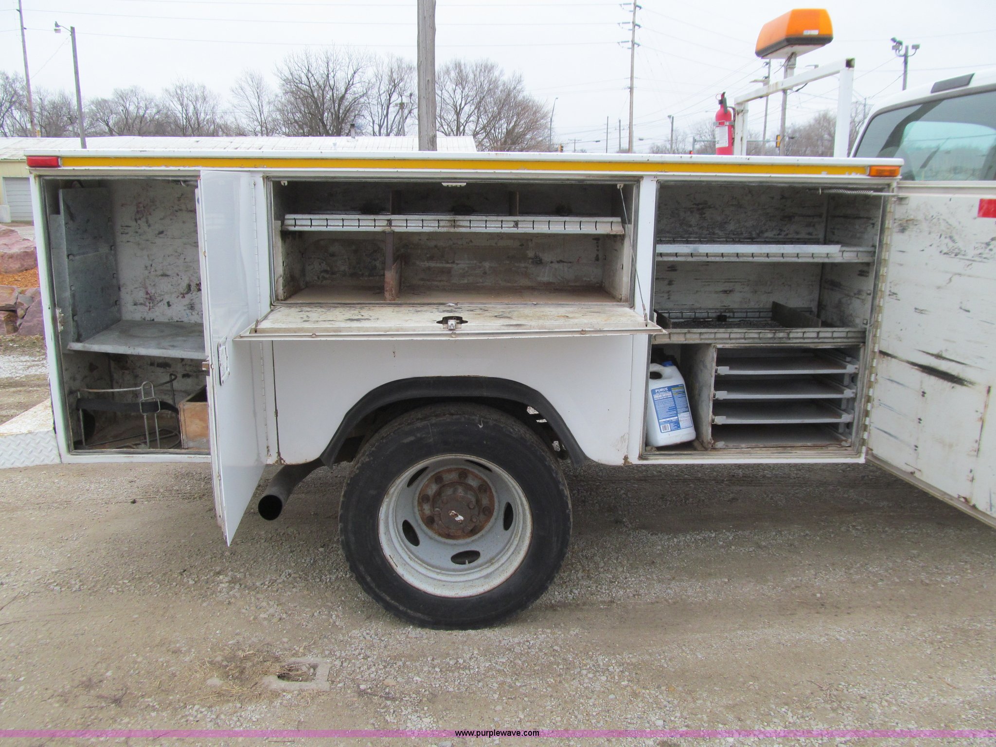 Purple Wave is selling a used Service Truck in Iowa. This item is a 2004 Ford F550 Super Duty XL utility truck with the following: 248,437 miles on odometer, 6.0L V8 OHV 32V turbo diesel engine, Automatic transmission, AC and heat, Tilt, Cruise, AM/FM/CD/cassette, Manual windows and locks, Vinyl interior, Omaha 9'L utility bed, Three compartments per side, Tailgate, Amber beacon light, Receiver hitch, Trailer wiring, 225/70R19.5 tires, GVWR 19,000 lbs, Driver's door will only open from the interior, Front bumper damaged
