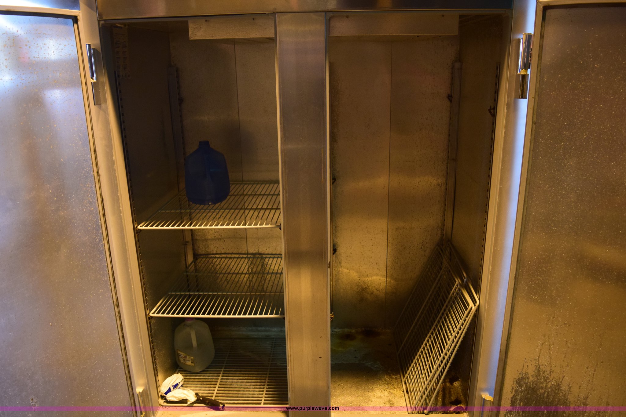 Purple Wave is selling a used Appliances in Kansas. This item is a Manitowac Koolaire commercial refrigerator with the following: Model KR-2, 1/3 HP compressor, 115V, Single phase, 10.4 amps, Copeland refrigeration system, Stainless steel front, doors, top, and exterior ends, High pressure foamed-in-lace polyurethane insulation, Automatic defrost system, 6'L three wire power cord with three prong ground plug, 49 cu. ft. gross storage capacity, 2,600 BTU per hour, 55"W x 7'H x 32"D