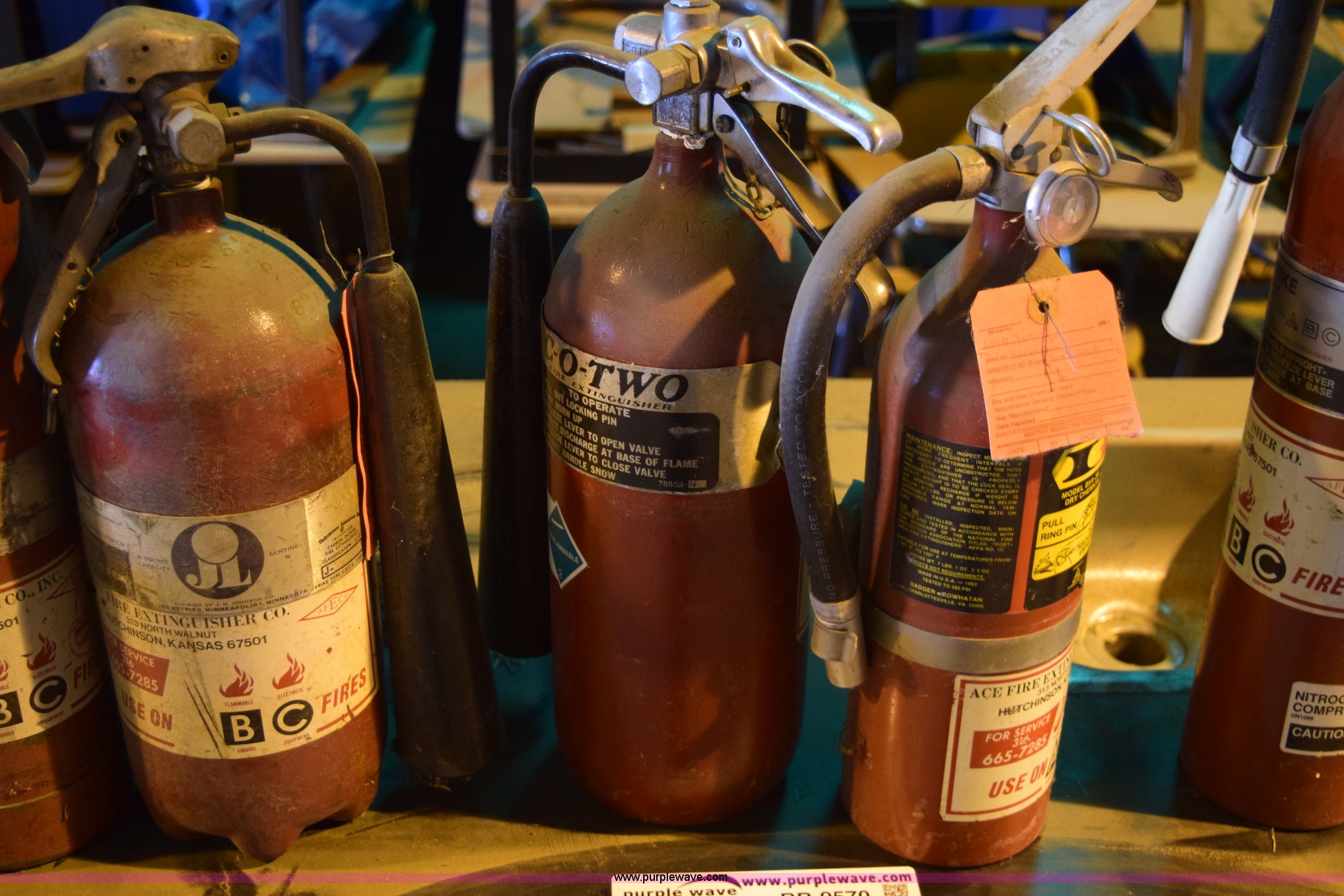 Purple Wave is selling a used Tools in Kansas. This item is a Assorted items with the following: Lab work desk, 5'L x 2'W x 3'H, Sink, (8) fire extinguishers