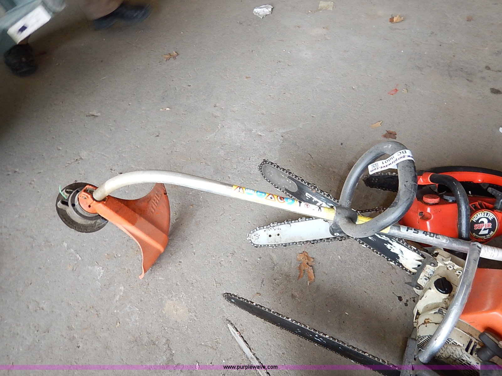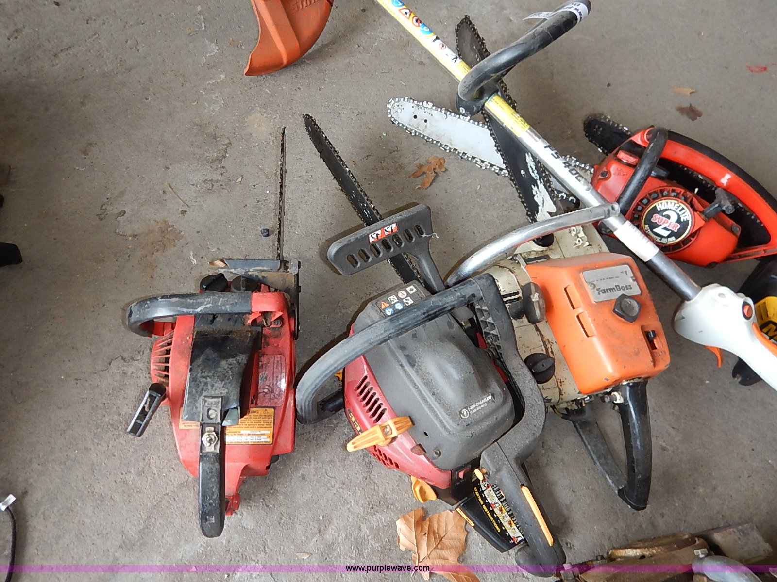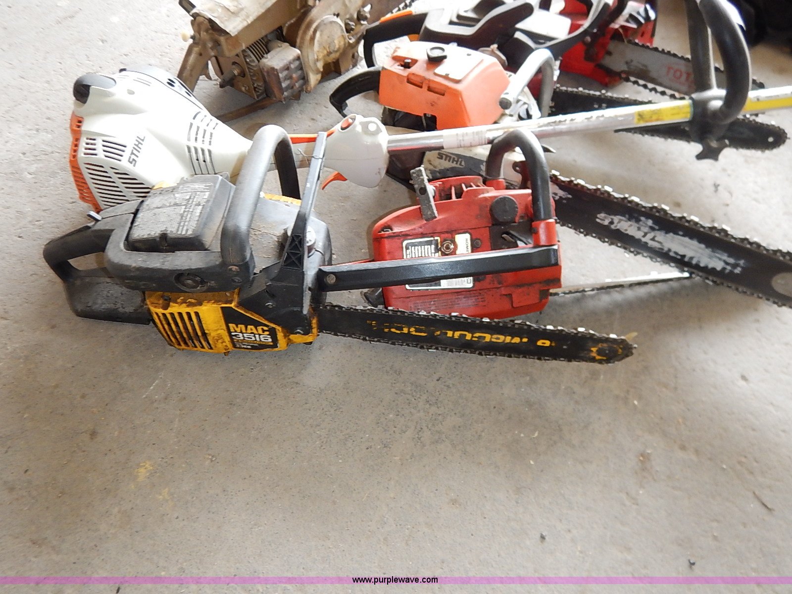 Purple Wave is selling a used Lawn and Garden in Kansas. This item is a Assorted outdoor equipment with the following: Rubbermaid cart, Stihl string trimmer, (6) chainsaws, Unknown operating conditions, Abandoned or seized asset