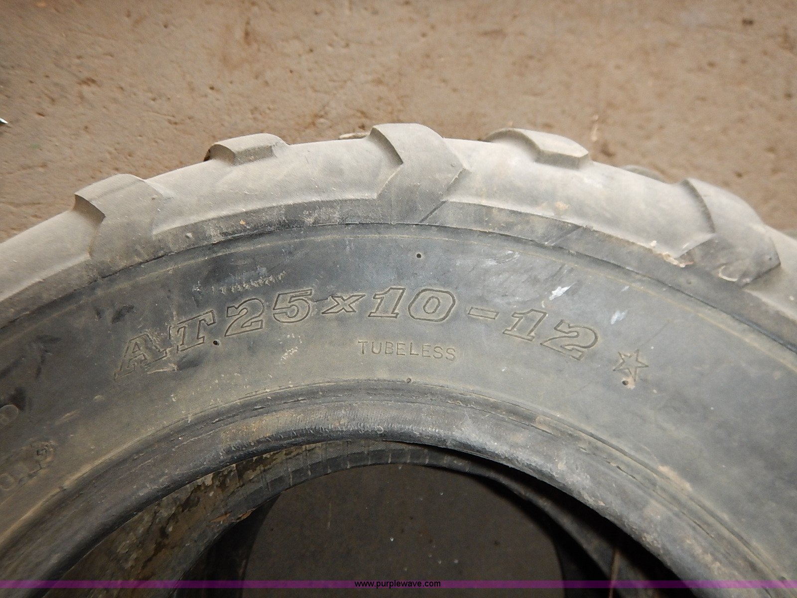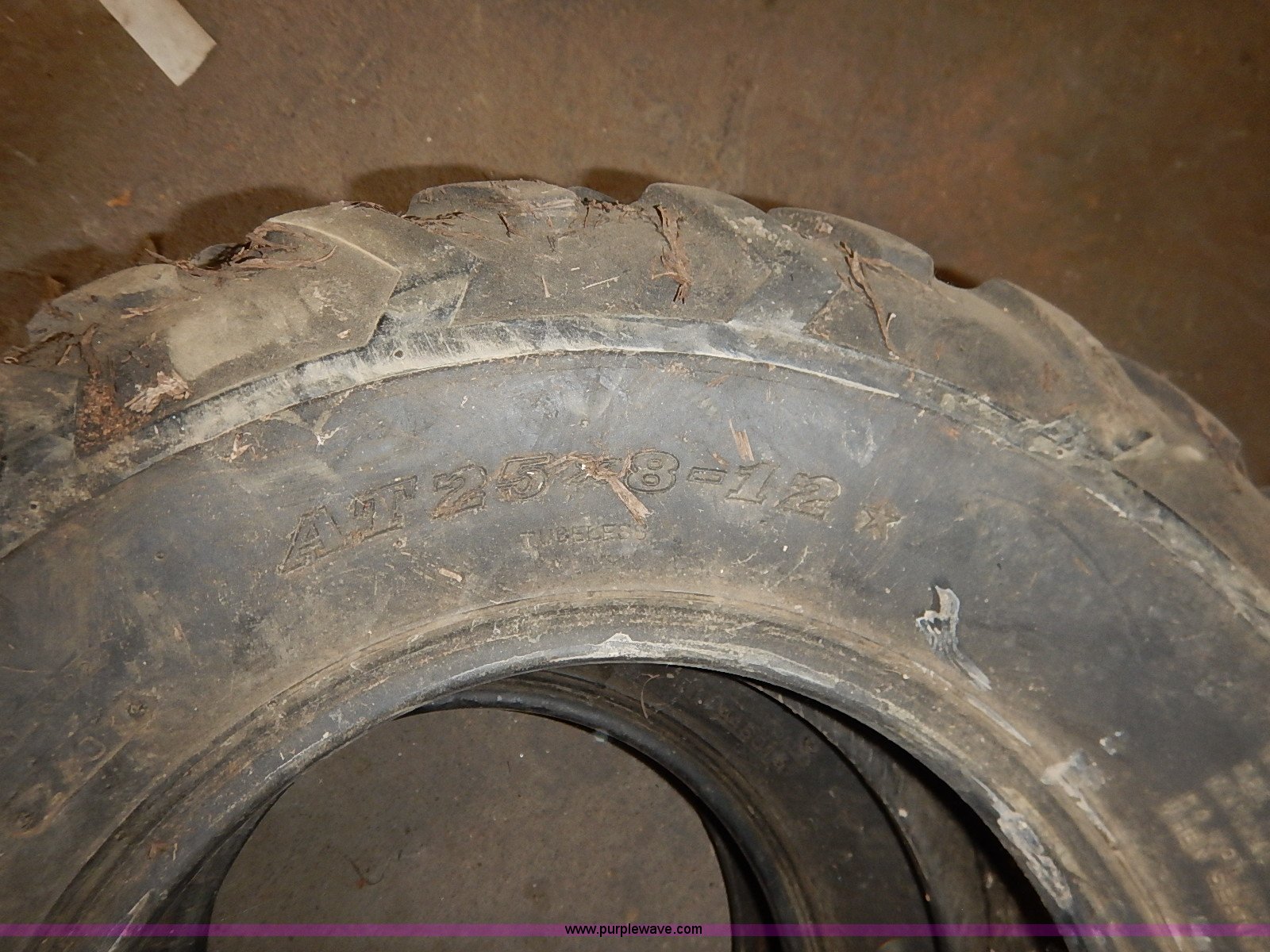 Purple Wave is selling a used Industrial Tires or Tracks in Kansas. This item is a (5) used tires with the following: (2) 25x8-12, (2) 25x10-12, 19x9.5-8