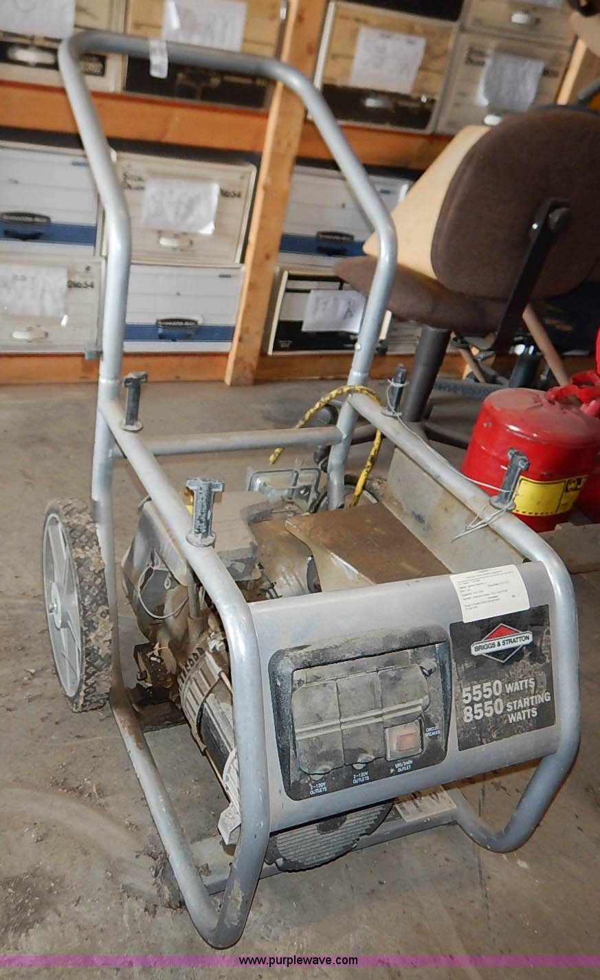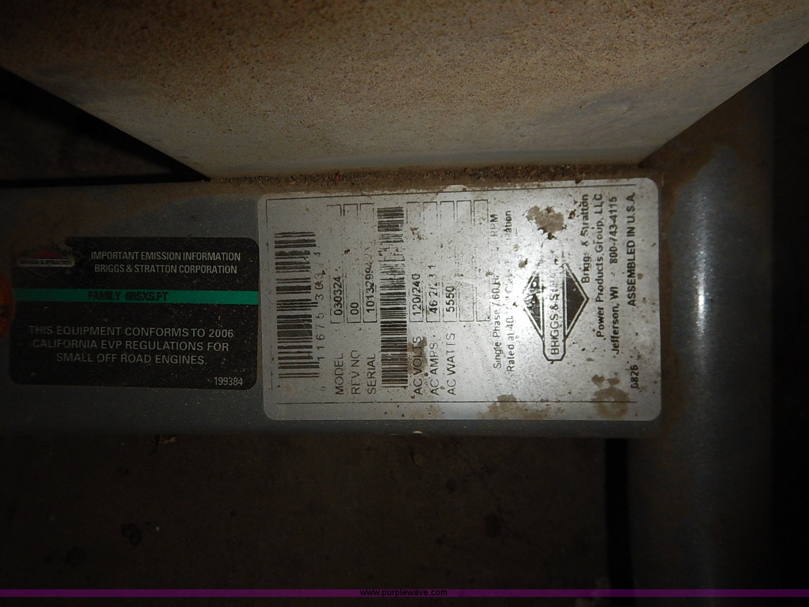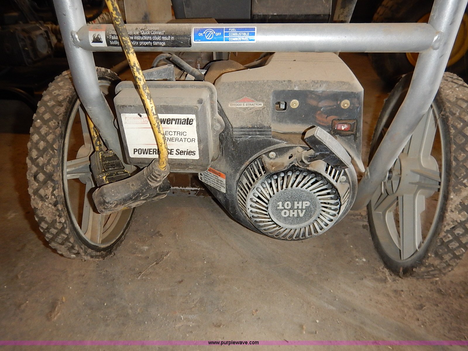 Purple Wave is selling a used Generator Set in Kansas. This item is a Coleman portable generator with the following: Model 030324, Briggs & Stratton 10 HP engine, 5,550 watts, Unknown operating condition, Abandoned or seized asset, Serial 10132984