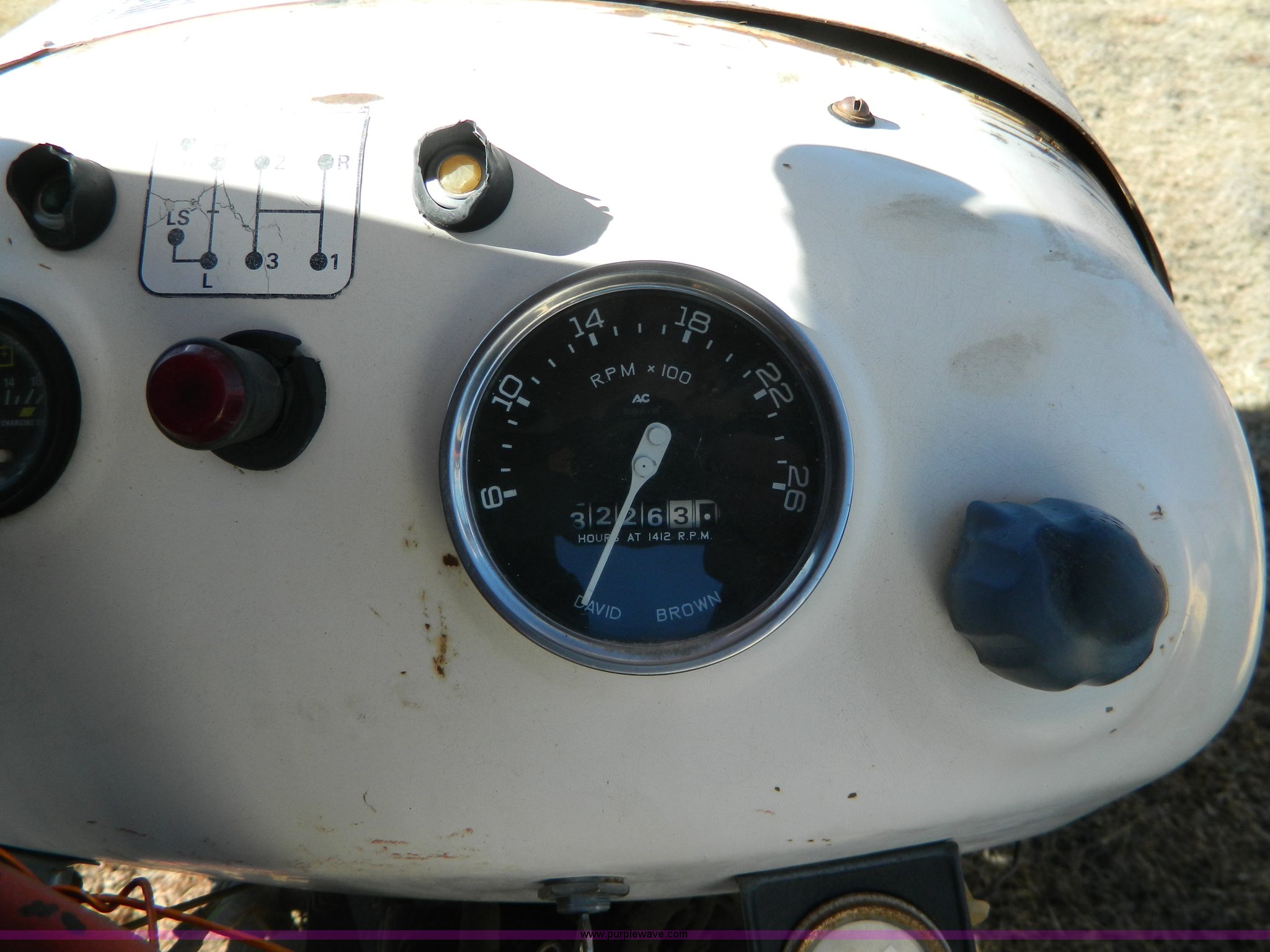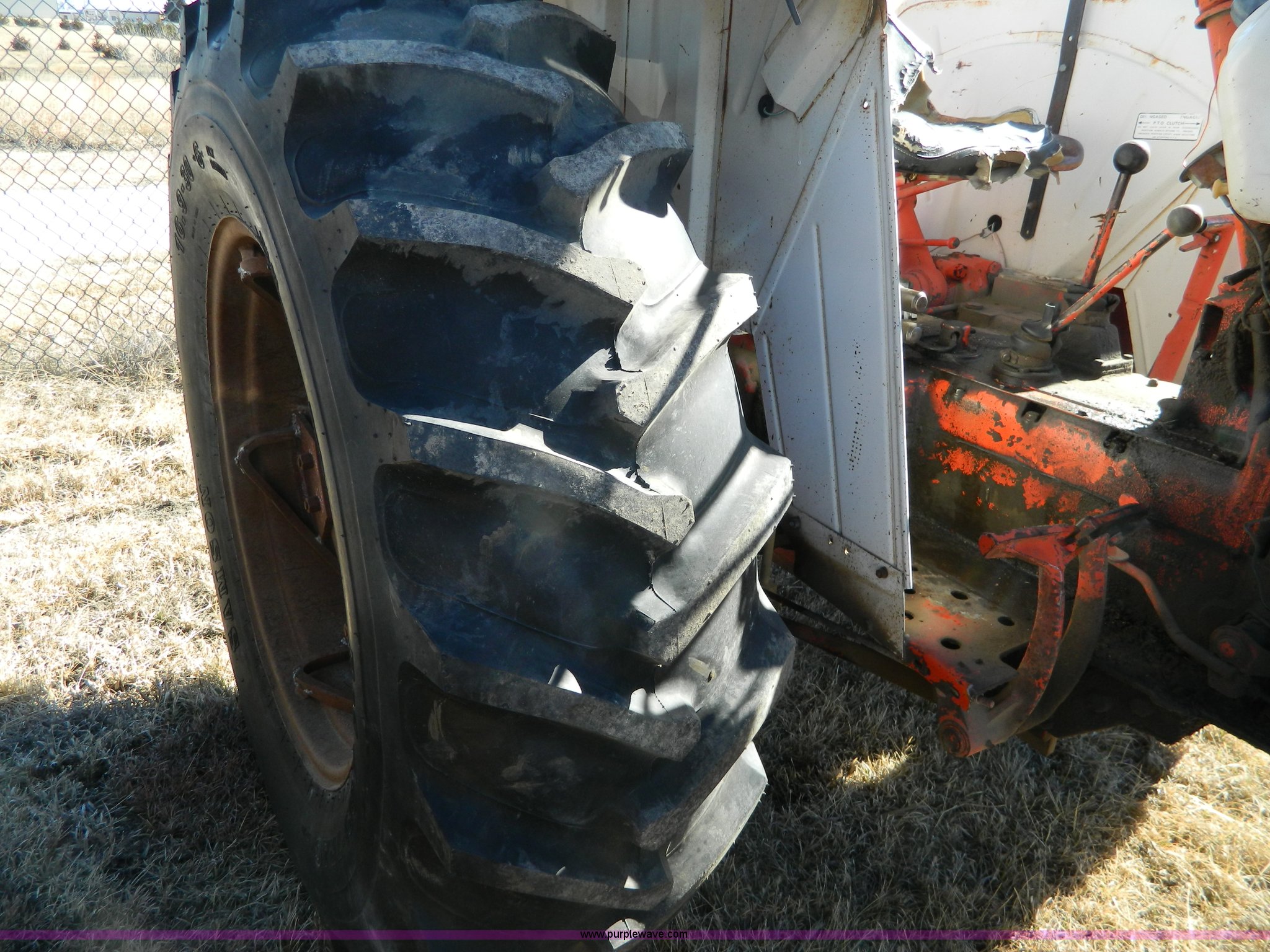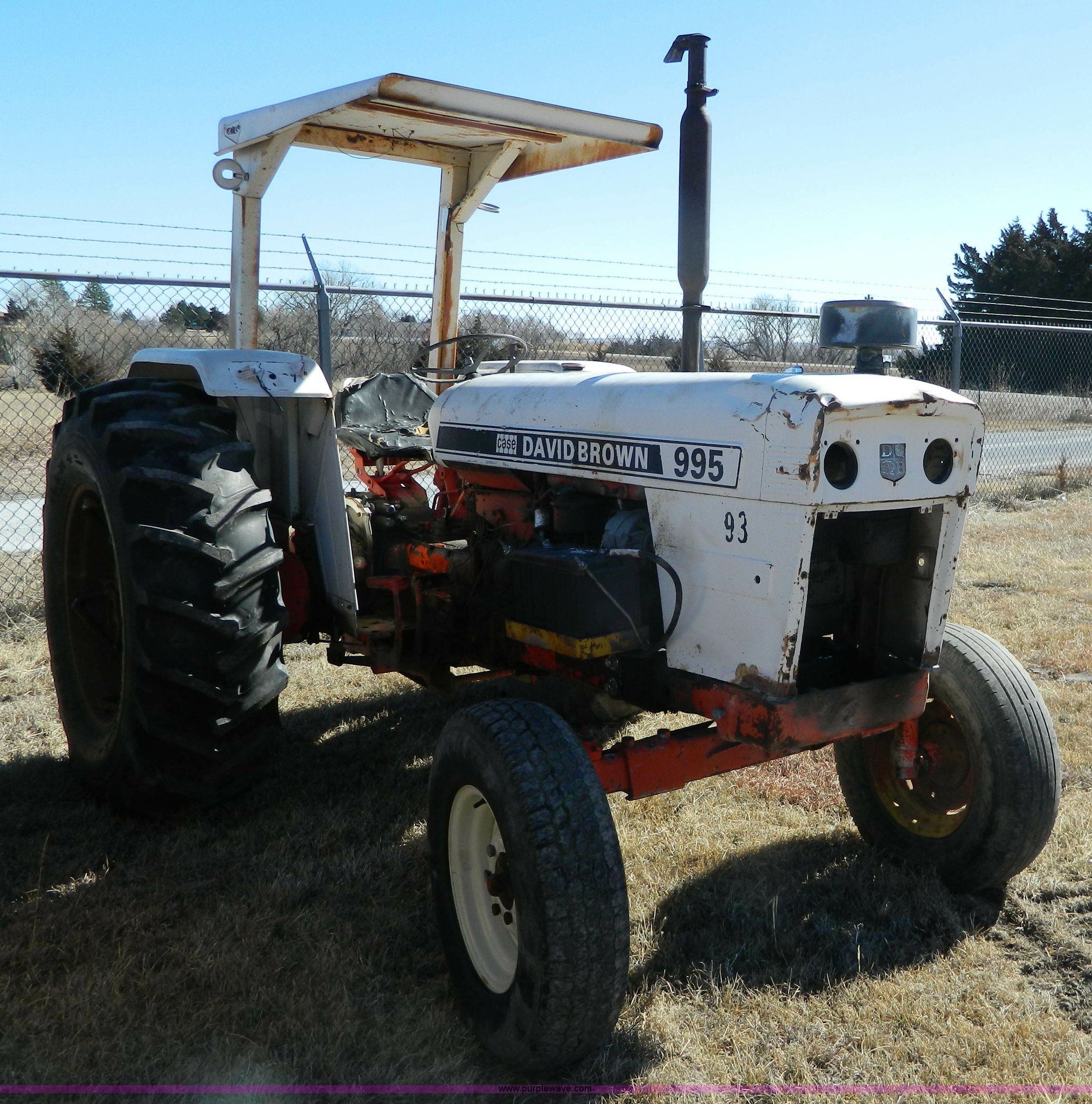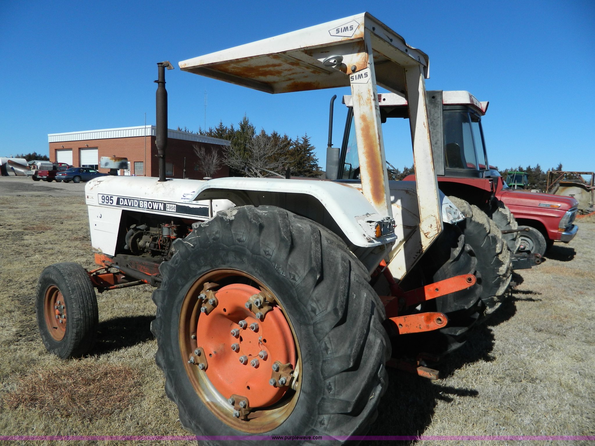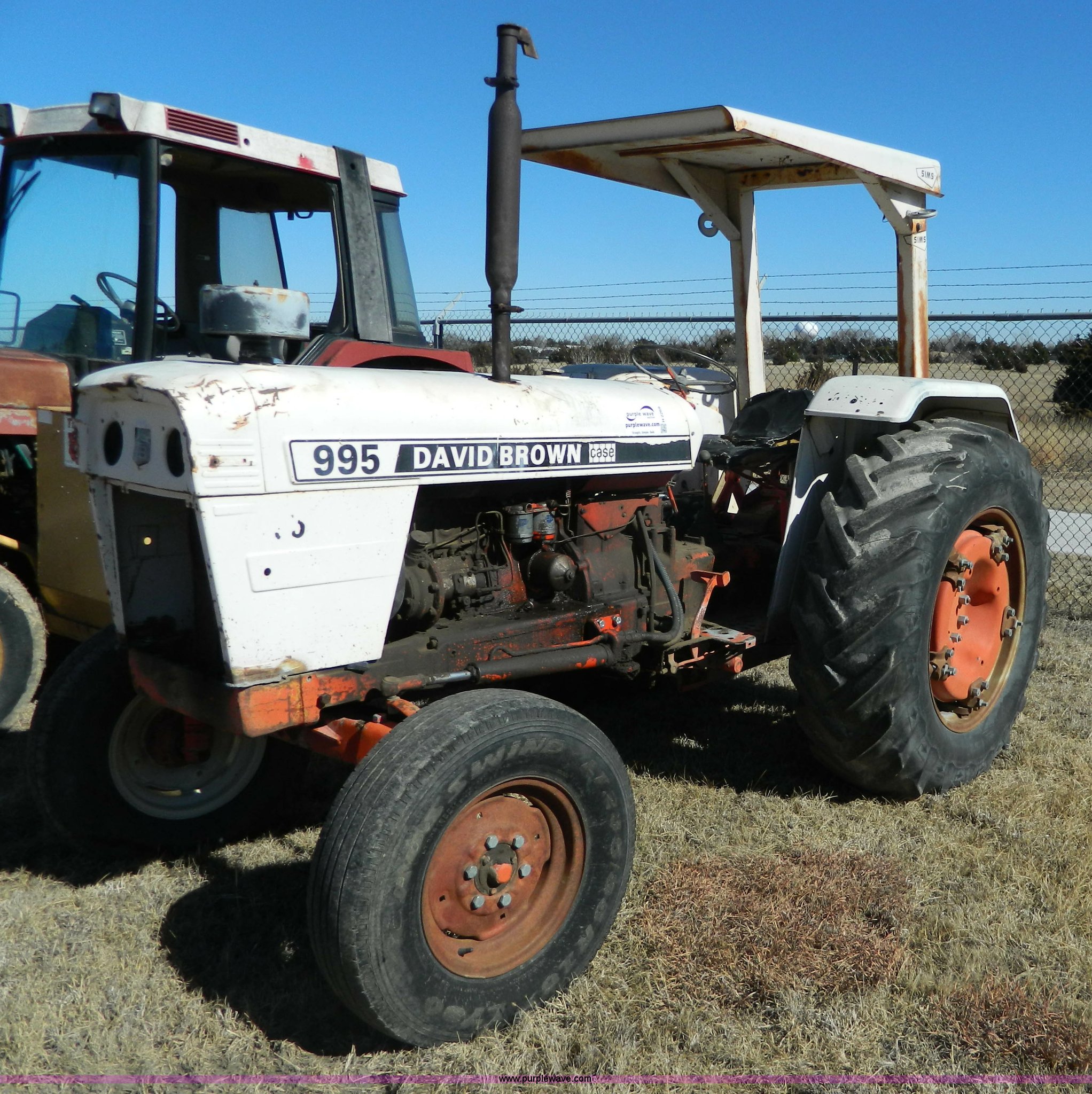 Purple Wave is selling a used Tractor in Kansas. This item is a David Brown 995 tractor with the following: 3,226 hours on meter, Case four cylinder diesel engine, 64 HP, Synchro transmission, 12F-4R gears, Spring suspension seat, Three point, Draw bar, 540 PTO, 235/85R16 front tires, 16.9-30 rear tires