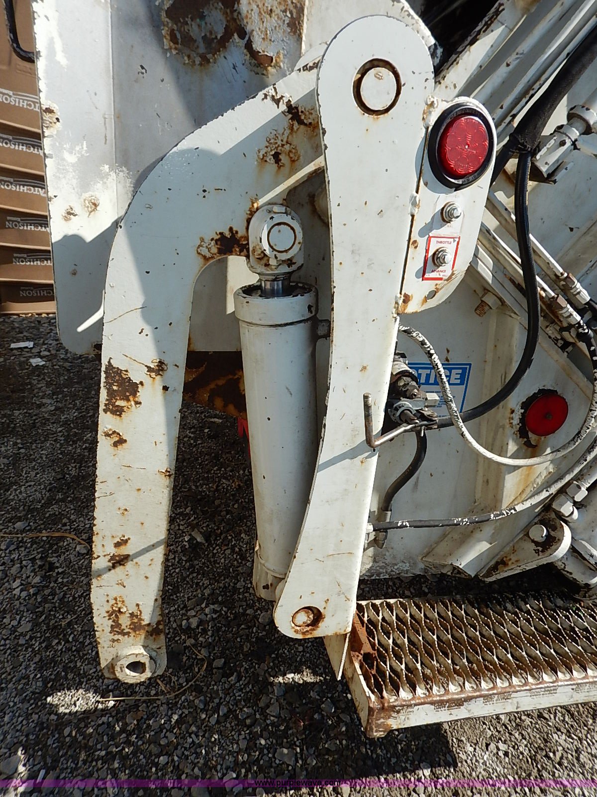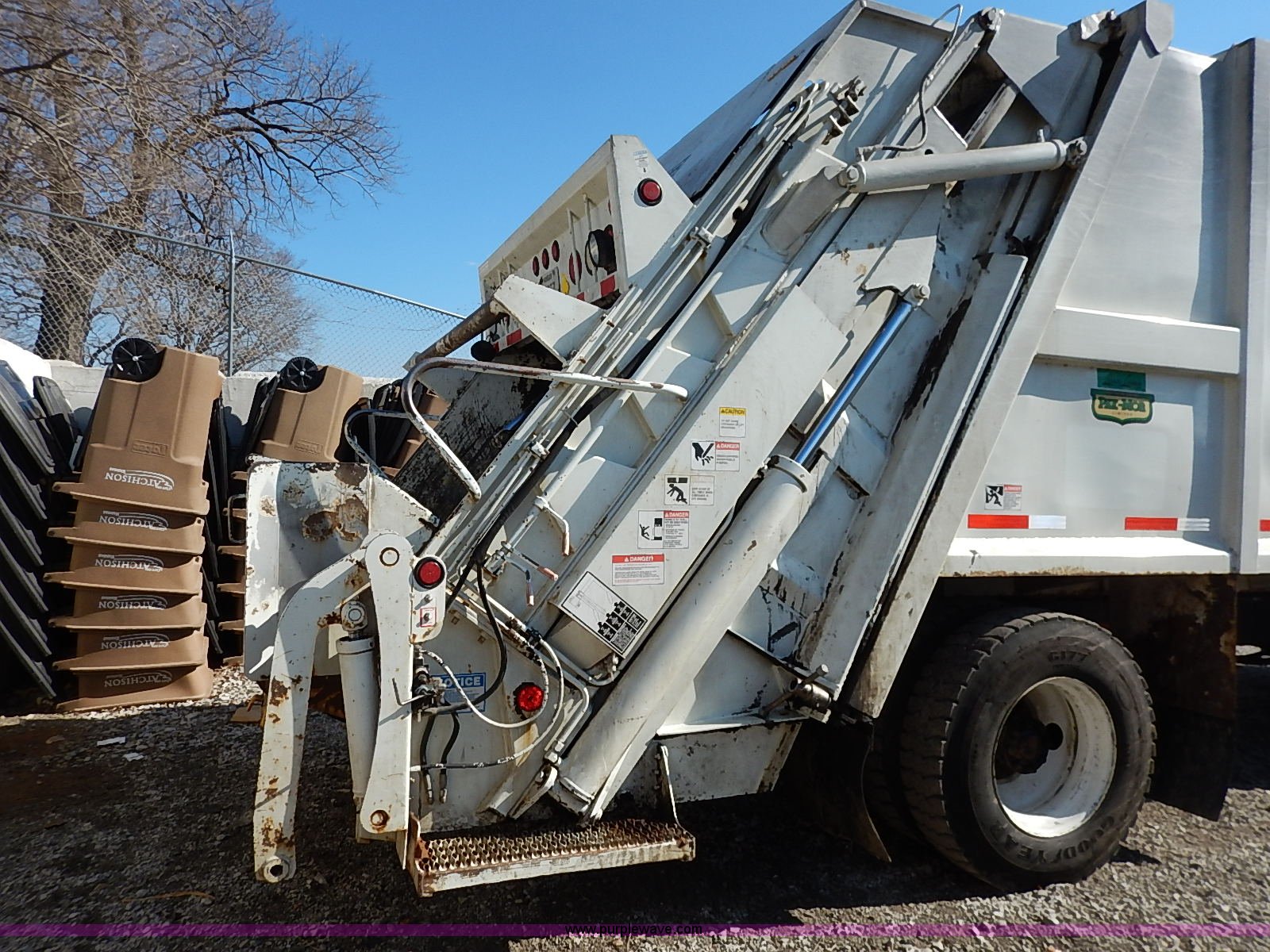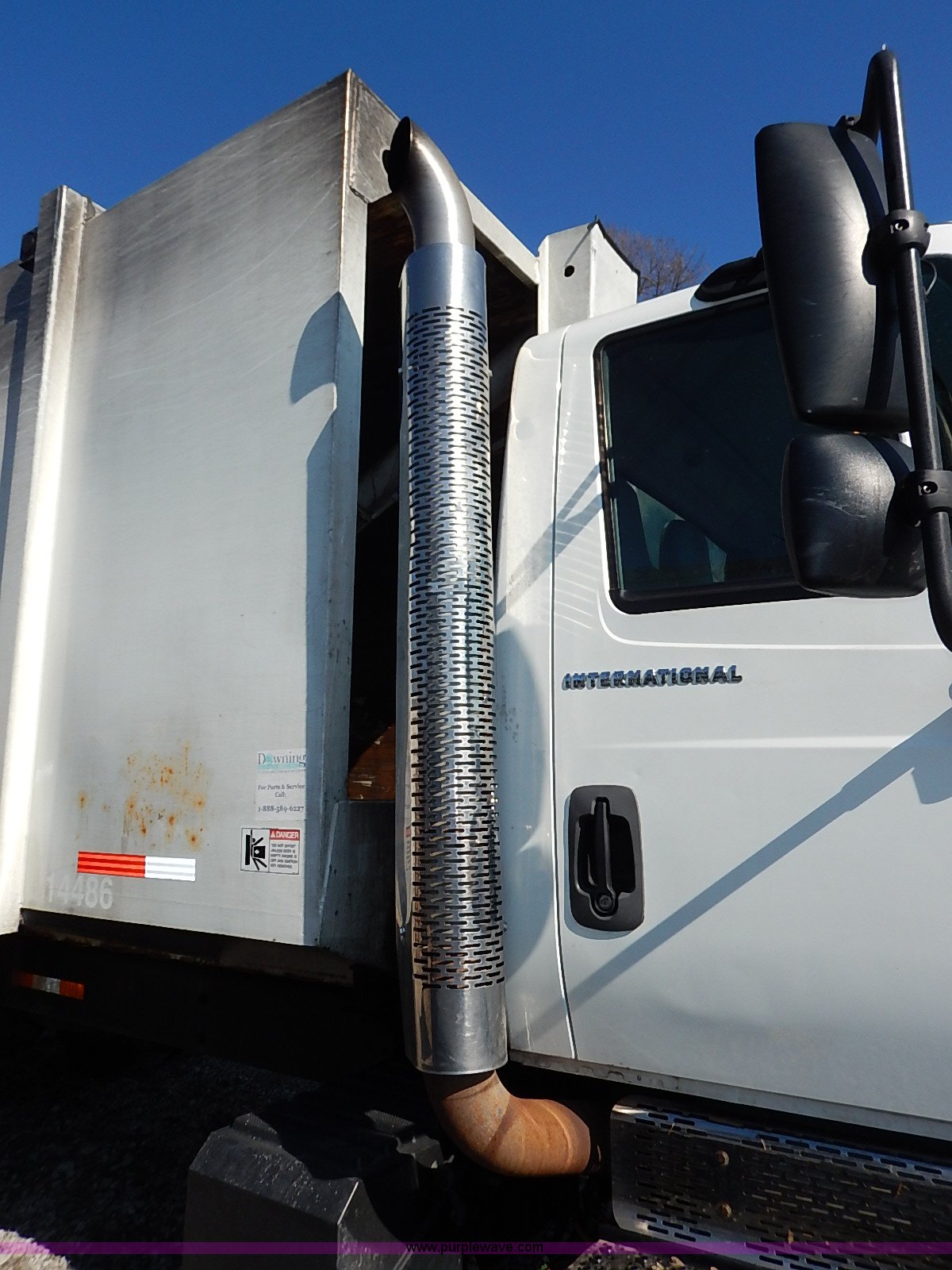 Purple Wave is selling a used Refuse Truck in Kansas. This item is a 2007 International 7400 refuse truck with the following: 79,807 miles on odometer, International DT466 7.6L L6 diesel engine, Automatic transmission, AC and heat, AM/FM/cassette, Manual windows and locks, Vinyl interior, Air suspension seat, Heated mirrors, Strobe lights, Hanscom K monitor, Block heater, Pak-Mor bed, 20 cu. yd. capacity, Serial PMLR220B0002020207, Hydraulic reservoir, Single rear exhaust stack, 11'2" overhead clearance, Tow hooks, Spring suspension, Air brakes, 11R22.5 tires, GVWR 35,000 lbs, GAWR 12,000 lbs, Power steering leaks