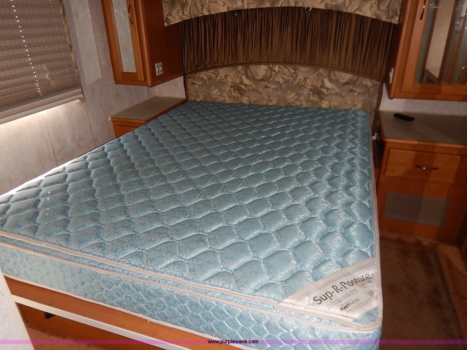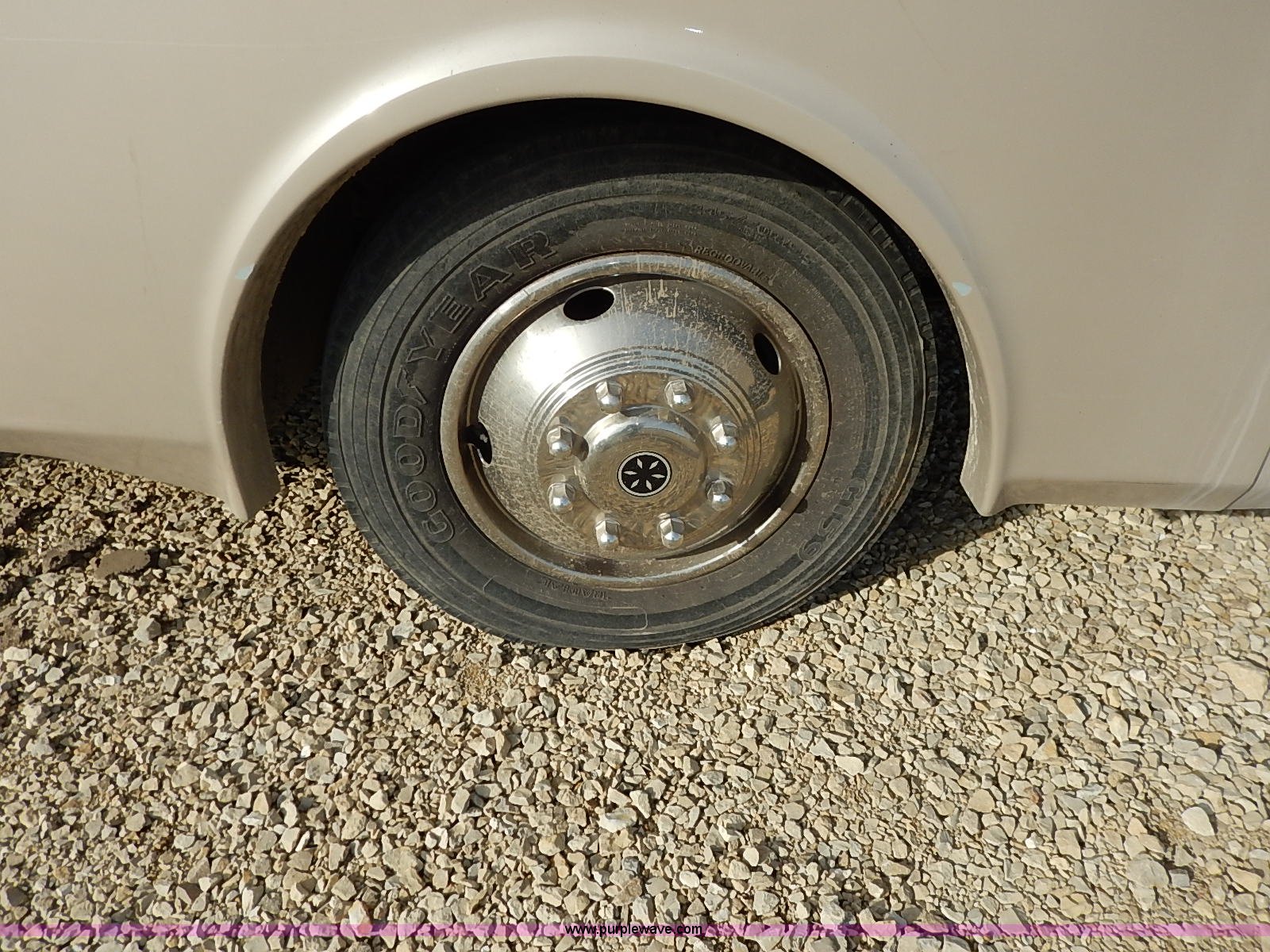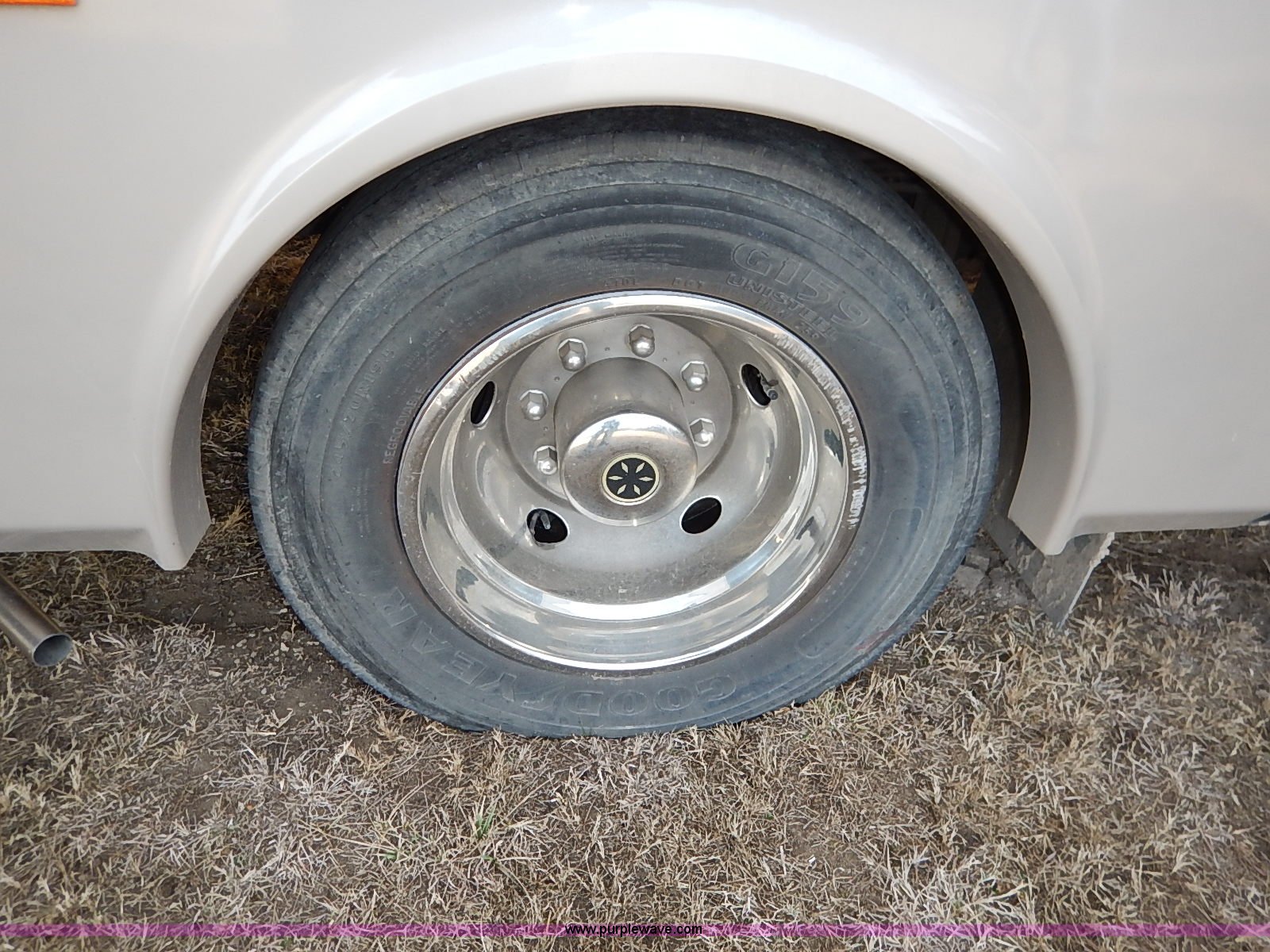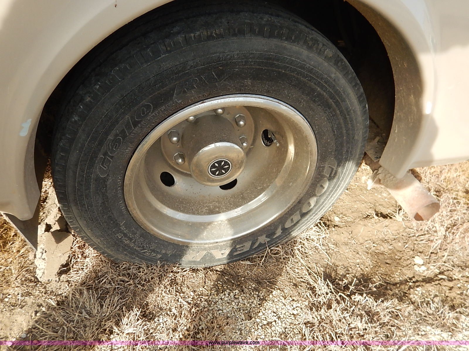 Purple Wave is selling a used RV in Kansas. This item is a 2000 Ford 36T Fleetwood Southwind RV with the following: 44,556 miles on odometer, 6.8L V10 EFI-SOHC gas engine, Automatic transmission, AC and heat, Tilt, Cruise, AM/FM/CD, Manual windows and locks, Leather interior, Fog lights, Panasonic 20" television, Onan Marquis 5500 generator, 302 hours on meter, Carburetor needs rebuilt, Recliner, Couch, Carpeting, (2) Canopies, Cabinets, Table, Benches, Sink, Magic Chef oven, Sharp microwave, Refrigerator/freezer, Bathroom, Shower, Sink, Toilet, Bedroom, Bed, Cabinets, Panasonic 14" television, (2) fold outs and slide outs, Receiver hitch, Trailer wiring, 245/70R19.5 tires, Recently replaced battery, Winterized, Rear bumper missing, Exterior cosmetic damage, Cracked windshield