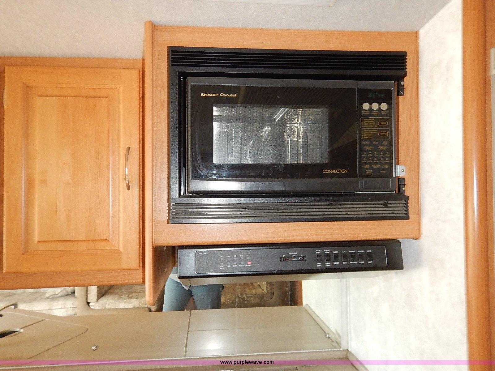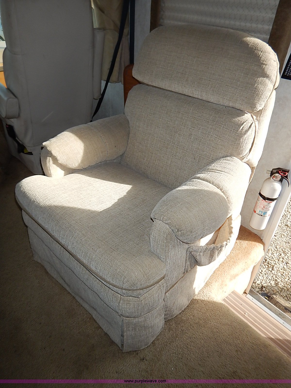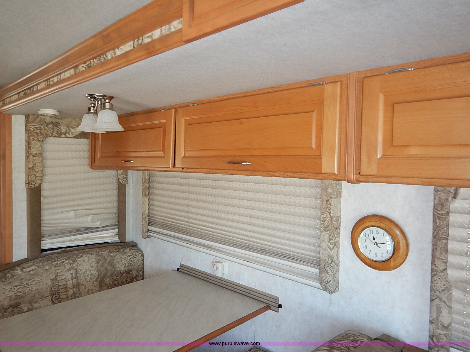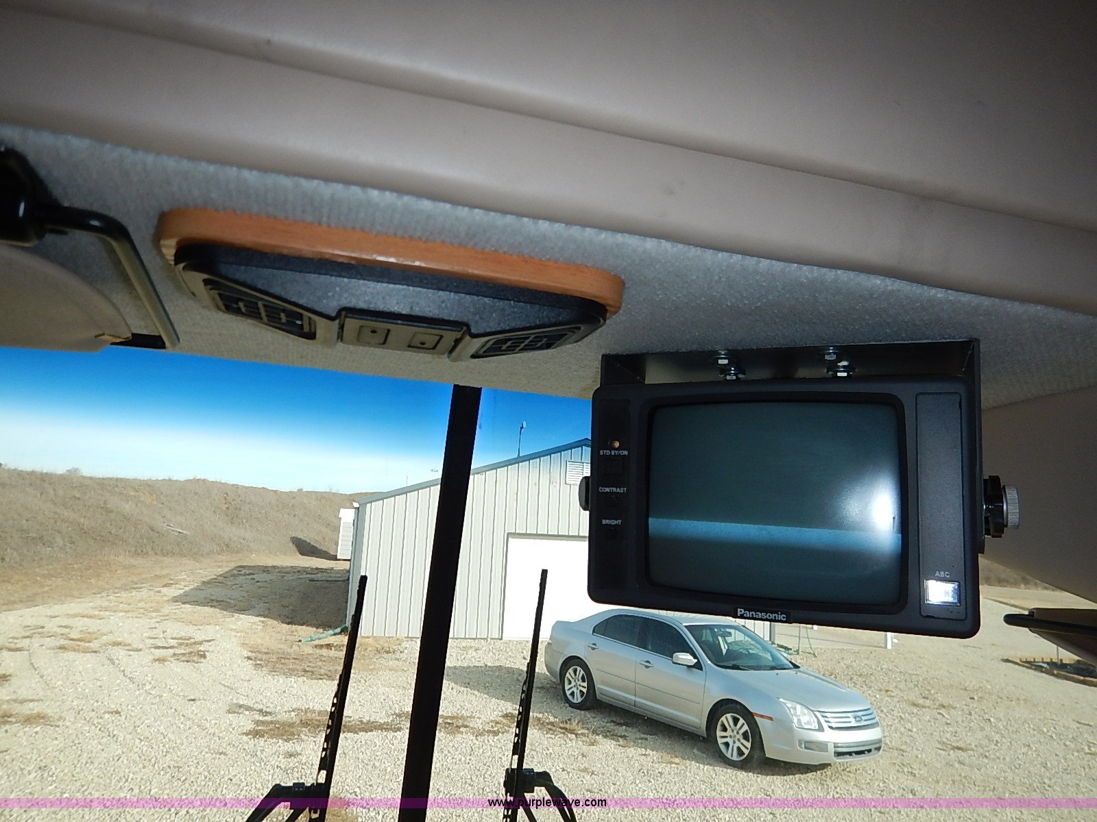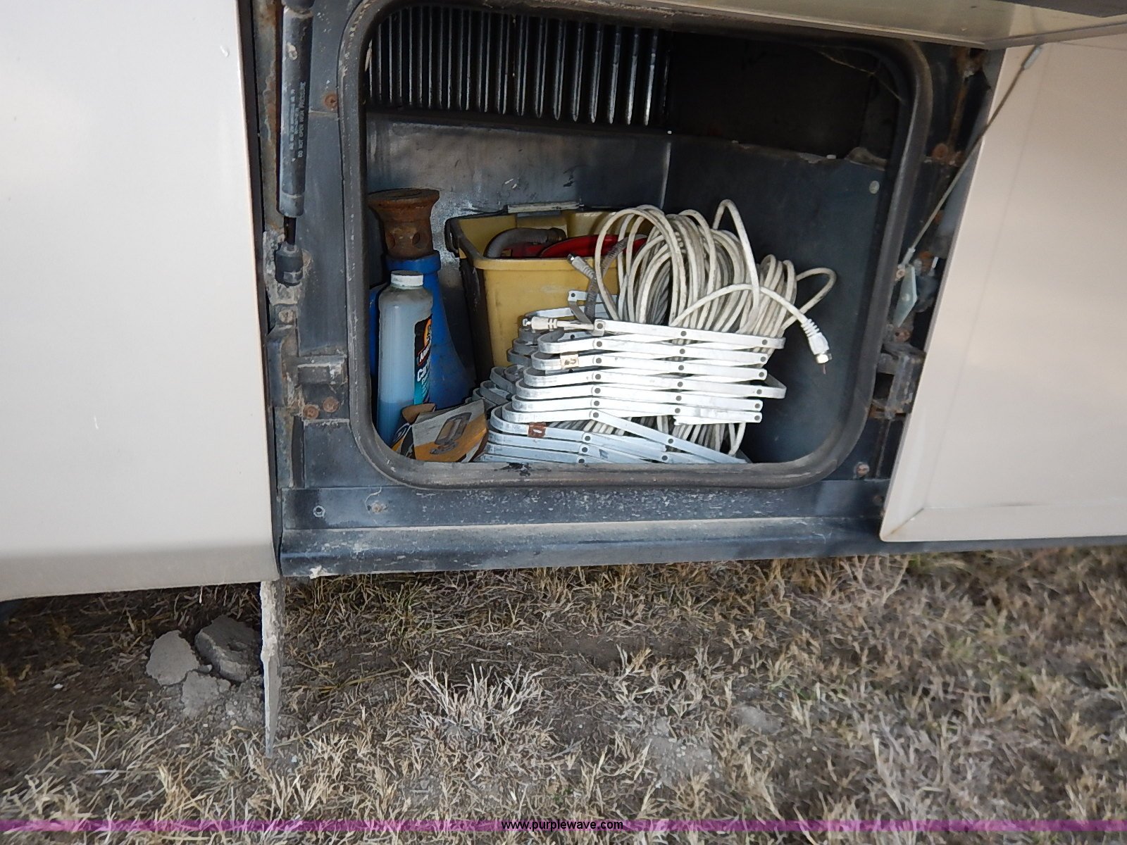Purple Wave is selling a used RV in Kansas. This item is a 2000 Ford 36T Fleetwood Southwind RV with the following: 44,556 miles on odometer, 6.8L V10 EFI-SOHC gas engine, Automatic transmission, AC and heat, Tilt, Cruise, AM/FM/CD, Manual windows and locks, Leather interior, Fog lights, Panasonic 20" television, Onan Marquis 5500 generator, 302 hours on meter, Carburetor needs rebuilt, Recliner, Couch, Carpeting, (2) Canopies, Cabinets, Table, Benches, Sink, Magic Chef oven, Sharp microwave, Refrigerator/freezer, Bathroom, Shower, Sink, Toilet, Bedroom, Bed, Cabinets, Panasonic 14" television, (2) fold outs and slide outs, Receiver hitch, Trailer wiring, 245/70R19.5 tires, Recently replaced battery, Winterized, Rear bumper missing, Exterior cosmetic damage, Cracked windshield