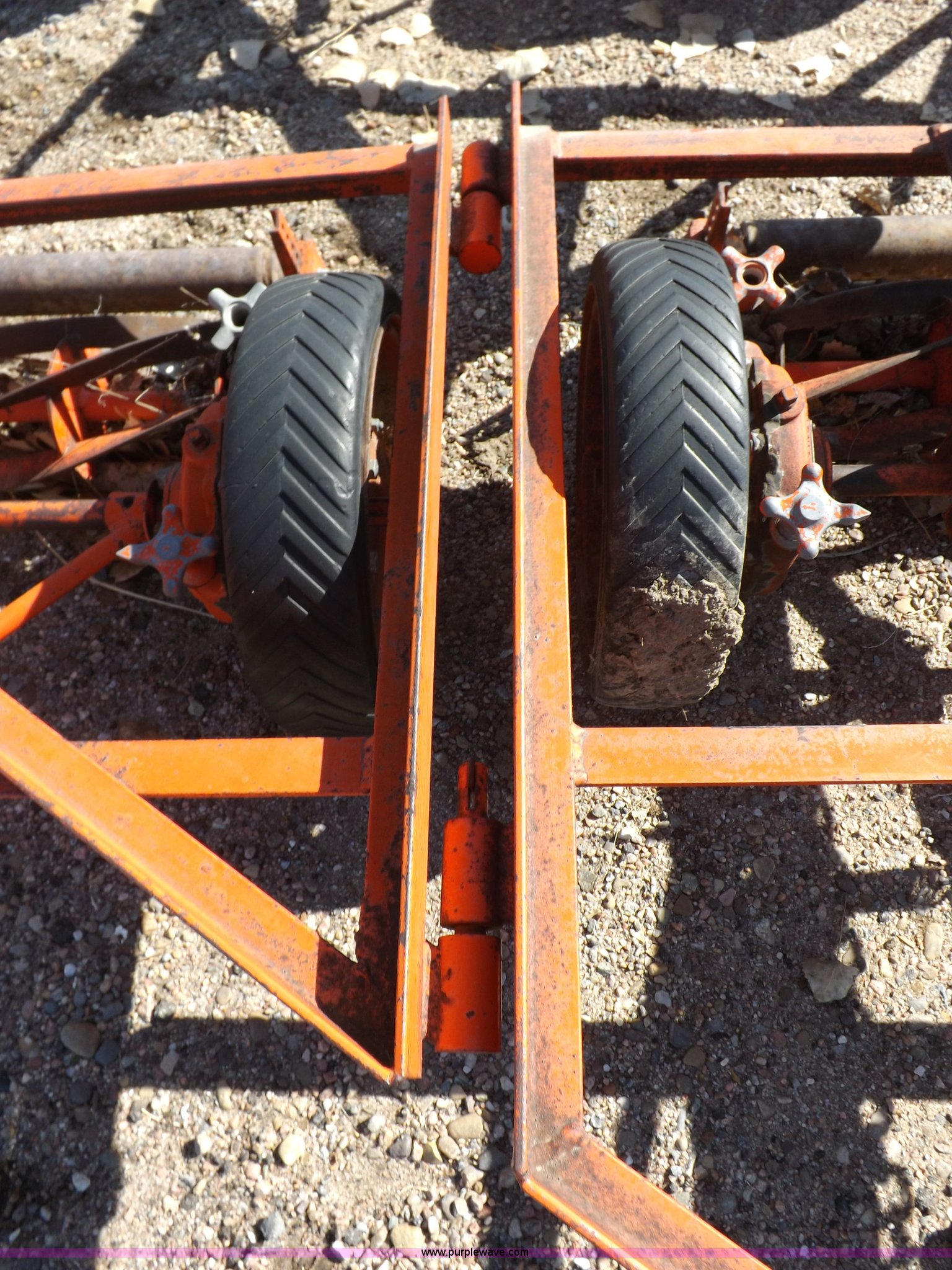 Jacobsen five gang reel mower. Ground driven, 32"W gangs, 11' overall cut width, Adjustable height Approx. 3/4" to 2.5", Solid grass press roller, Manual lift, Pin to 2" ball hitch on rear gangs, 4" x 16" solid tires. City of Lakin. 304 S Buffalo. Lakin, KS 67860