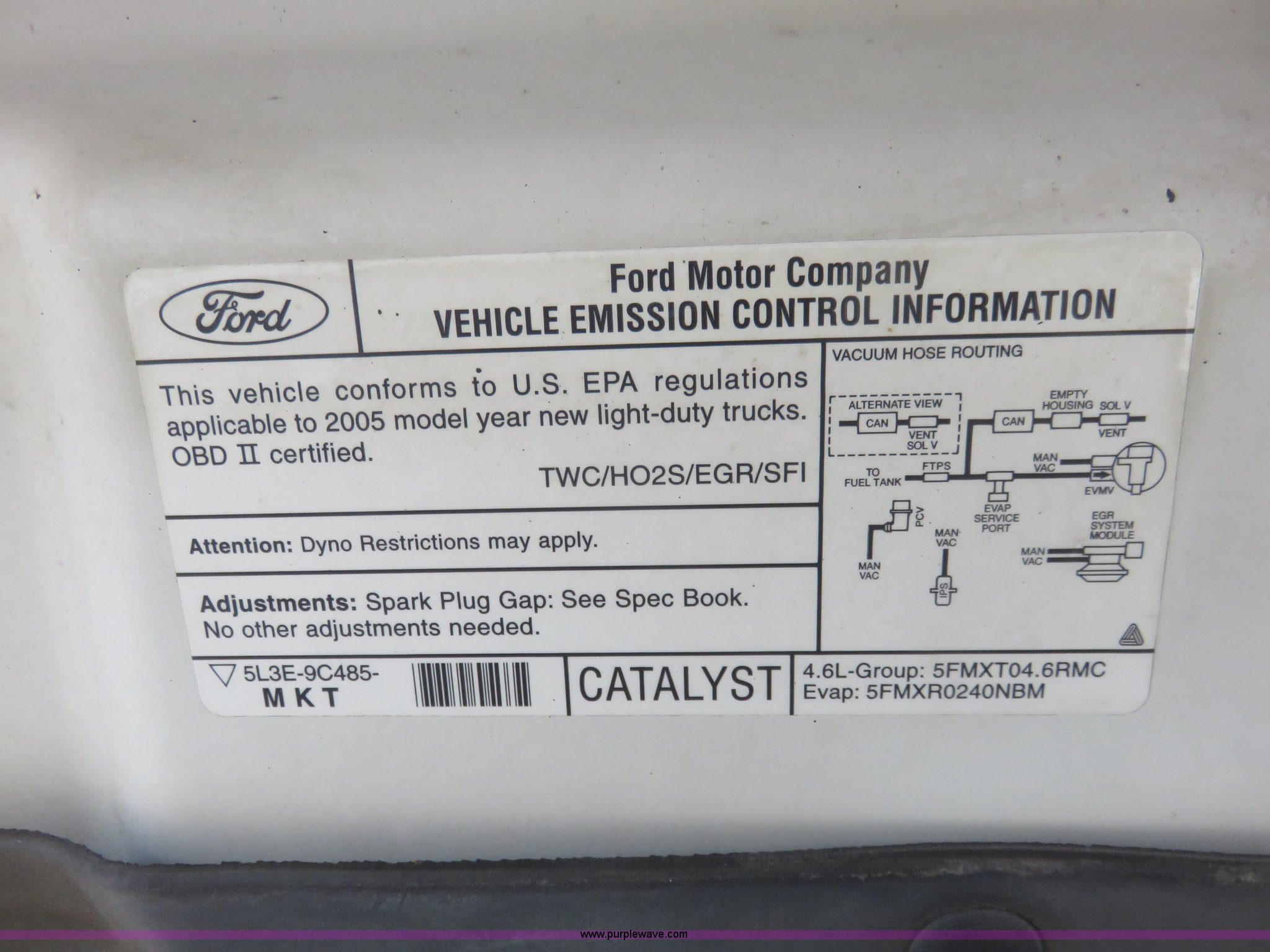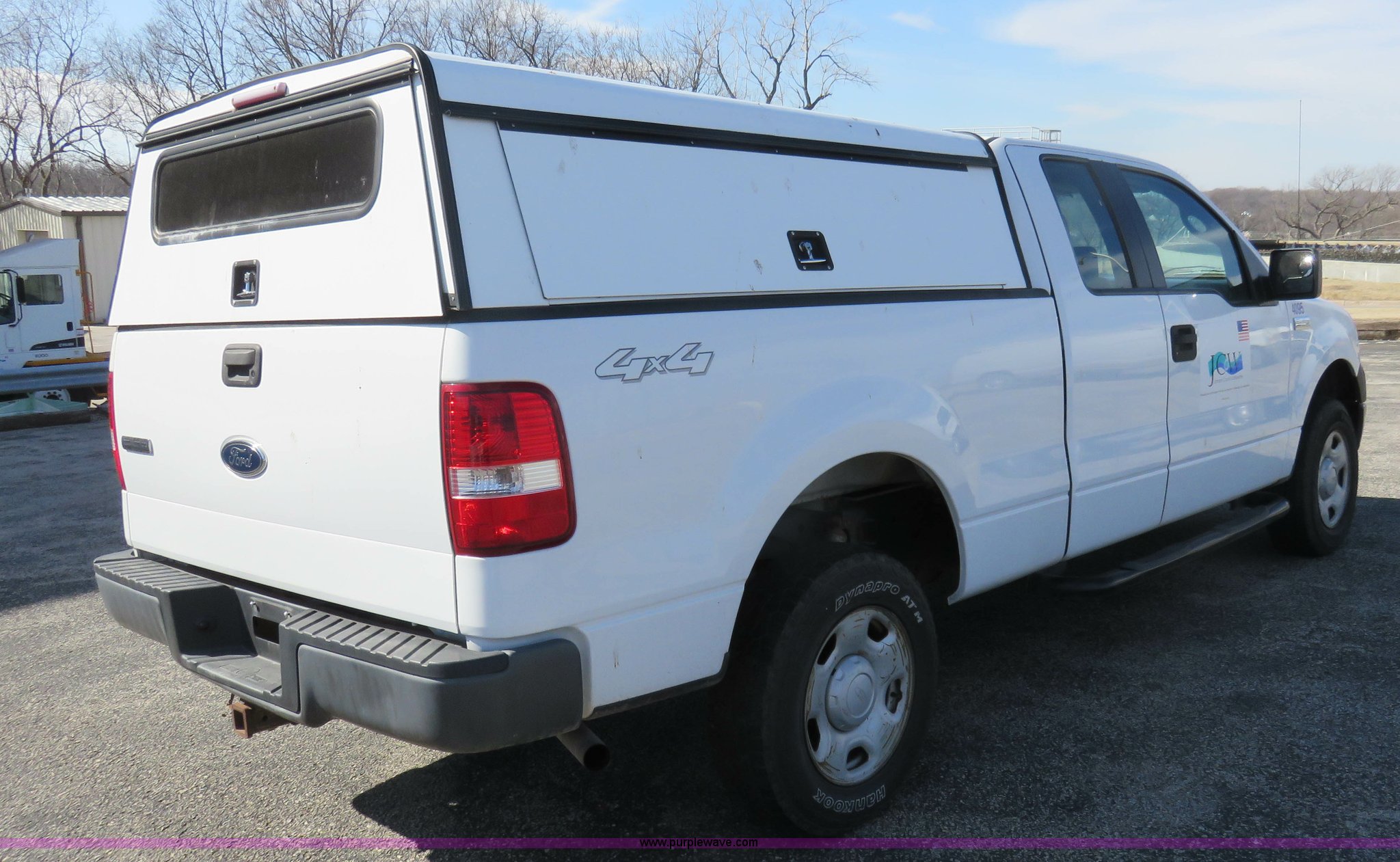 Purple Wave is selling a used 1/2 Ton Pickup or Van in Kansas. This item is a 2005 Ford F150 SuperCab pickup truck with the following: 139,087 miles on odometer, 8,291 hours on meter, 4.6L V8 SOHC 16V gas engine, Automatic transmission, Four wheel drive, AC and heat, Tilt, Cruise, AM/FM, Power windows, locks, and mirrors, Vinyl interior, Topper, Receiver hitch, 235/75R17 tires, Intermittent rocker arm noise in the engine, Decals will be removed prior to auction, Unit# JCW4095