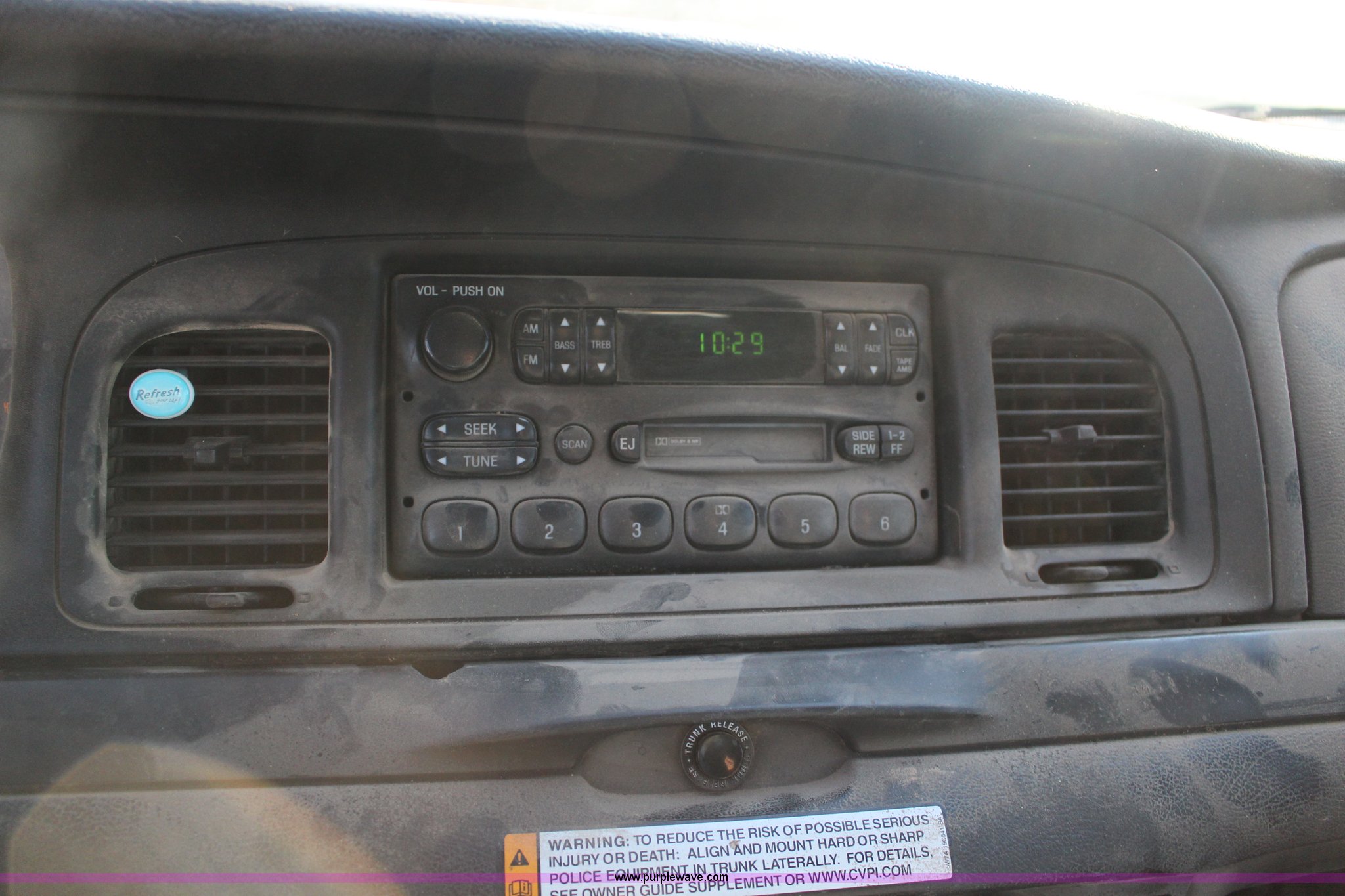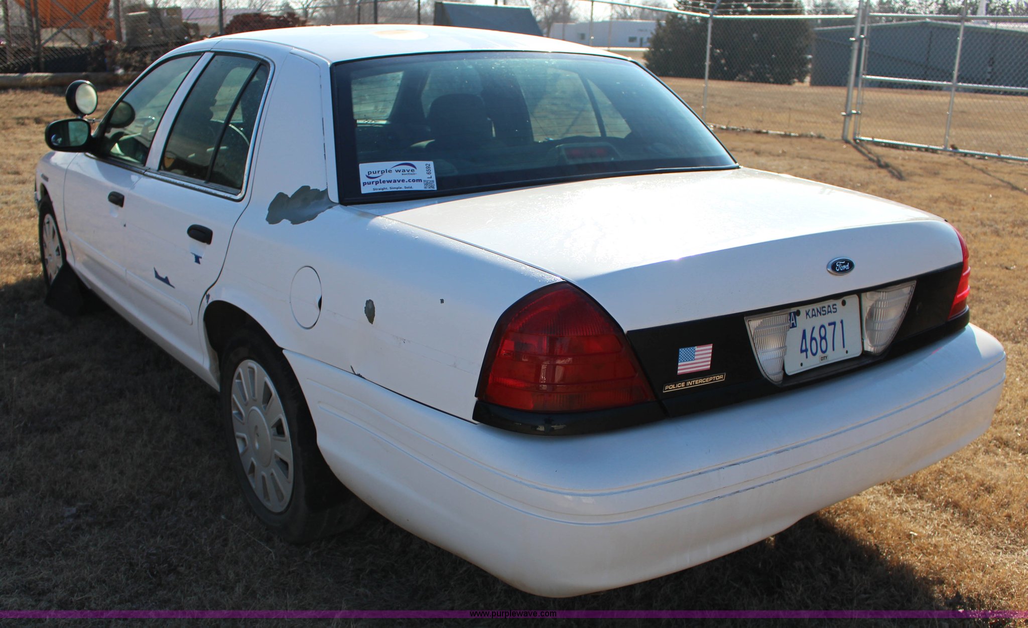 Purple Wave is selling a used Passenger Vehicle in Kansas. This item is a 2006 Ford Crown Victoria Police Interceptor with the following: 155,021 miles on odometer, 4.6L V8 SOHC 16V gas engine, Automatic transmission, AC and heat, Tilt, Cruise, AM/FM/cassette, Power windows, locks, mirrors, and seats, Cloth interior, Grill guard, 235/55R17 tires, Interior/exterior cosmetic damage, Service engine soon light on, Transmission slips, Coolant leak