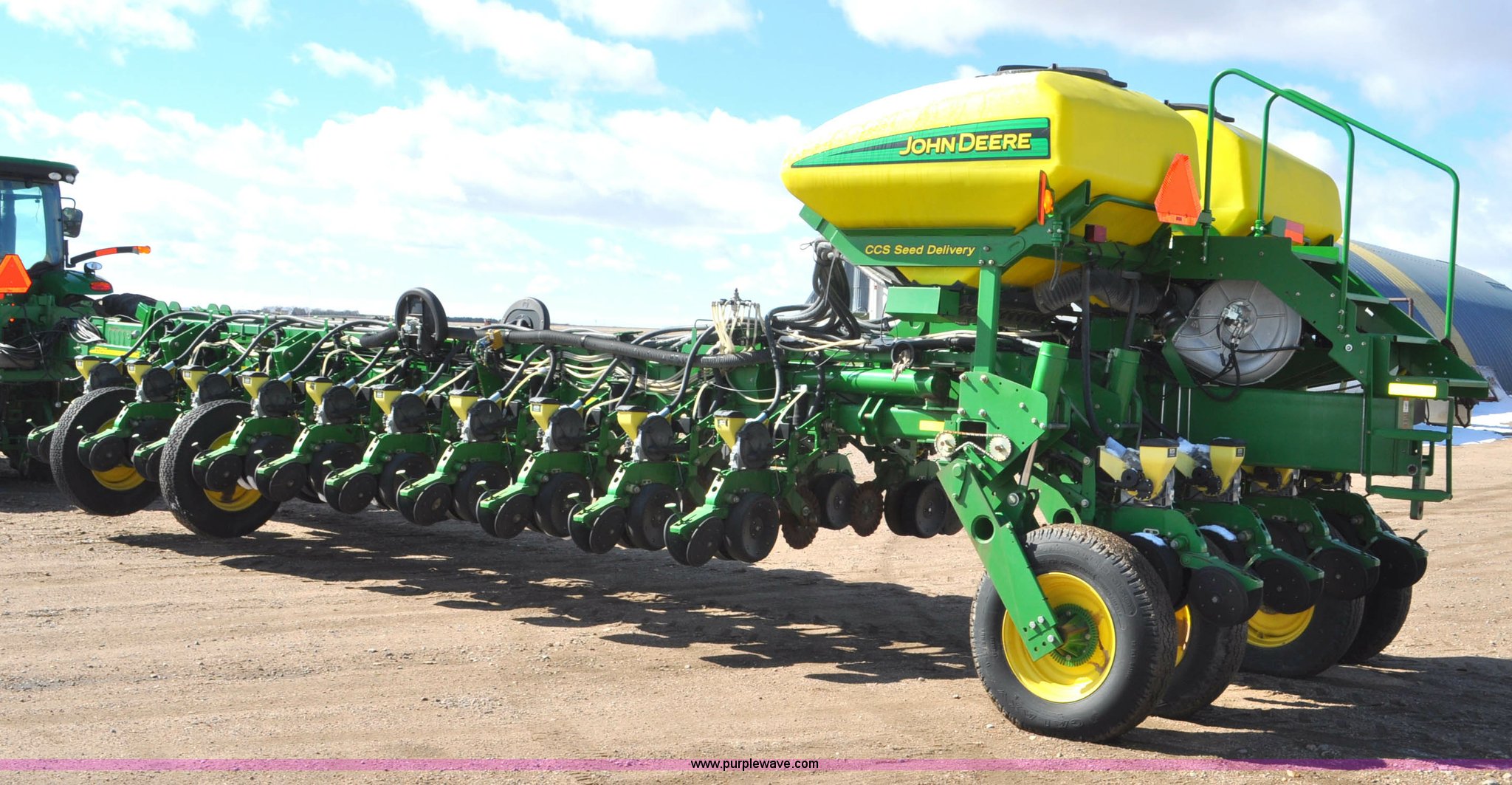Purple Wave is selling a used Planter in Colorado. This item is a 2010 John Deere 1770NT planter with the following: 24 rows, 30" spacing, CCS bulk fill, Air delivery, Vacuum meters, Hydraulic meter drive system, (24) E-set disks, E-set boxes, Pneumatic down pressure, No-till coulters, Dual rubber press wheels, Liquid fertilizer, Wheel driven fertilizer, Demco pump, Model piston pump, Serial A02339, Fertilizer tube in furrow application, 11-22.5 tires, Serial A01770E735568, Unit# V0060121