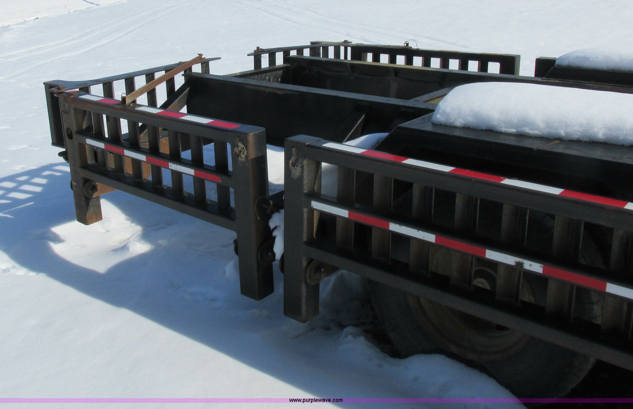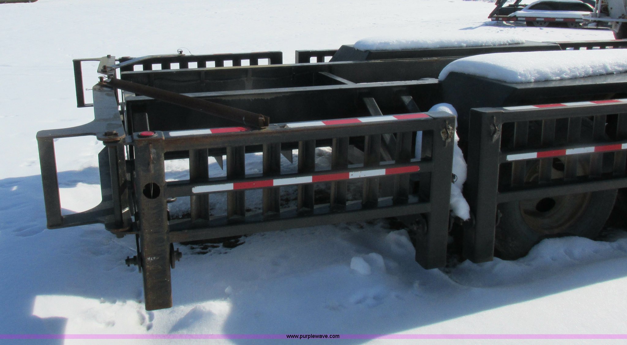 Purple Wave is selling a used Ag Equip. or Header Trailer in Missouri. This item is a 2006 Behnke Enterprises ag equipment trailer with the following: 27'L x 8'3"W, 20"W folding sides, (2) ramps, Pintle hitch, 235/85RT tires